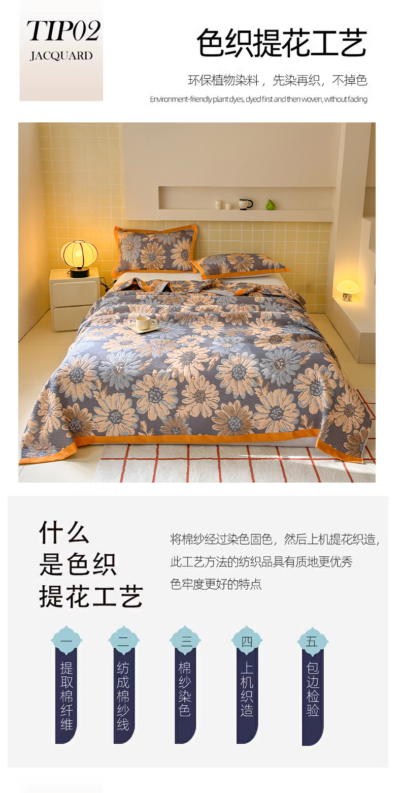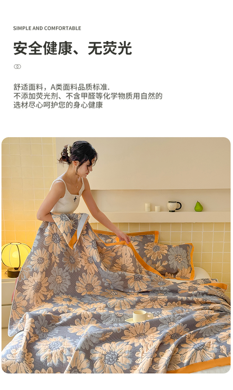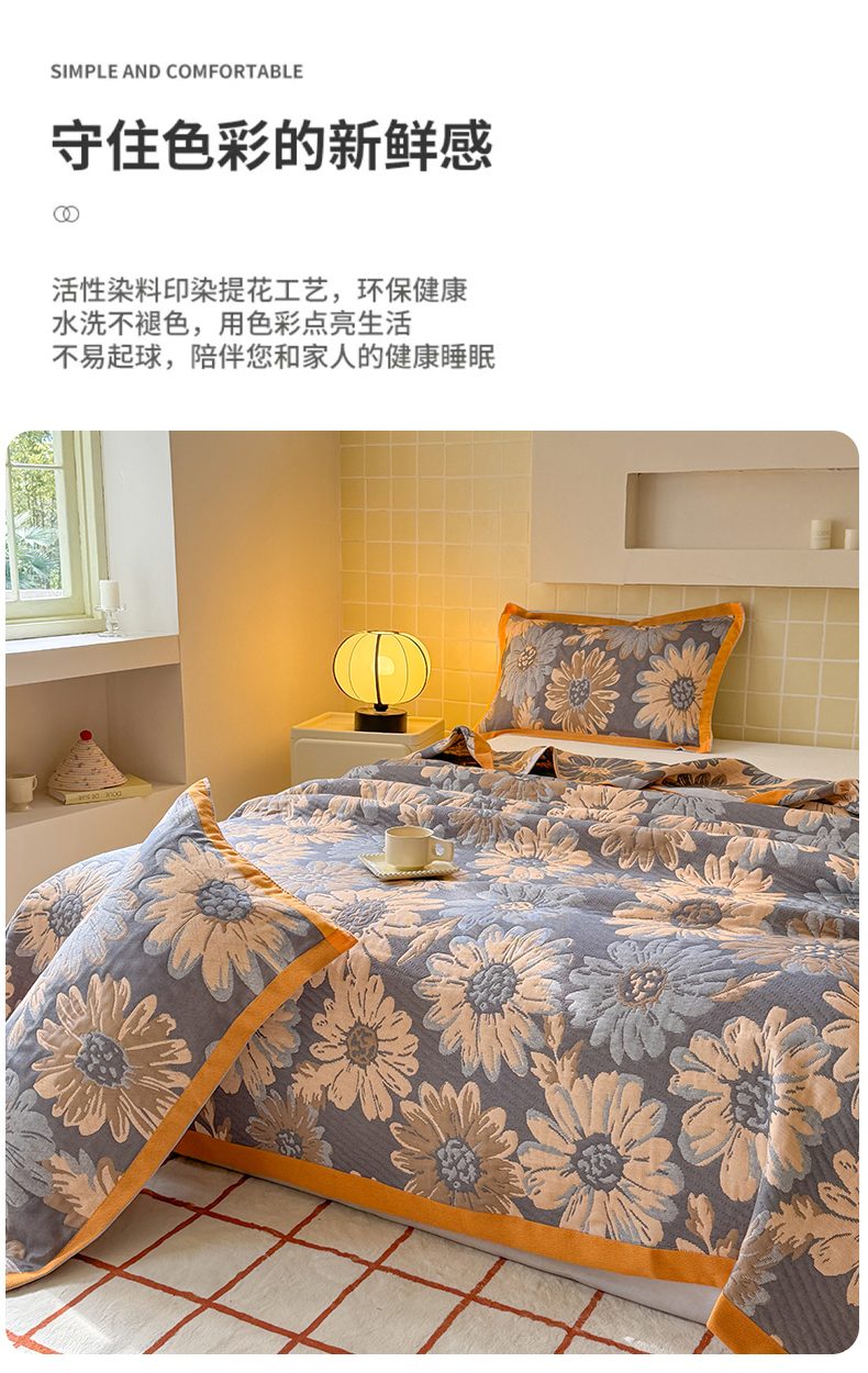 商品名称:朴尔家纺-毛巾被 2026新款彩棉云柔三层纱布毛巾被三件套盖毯 花间令