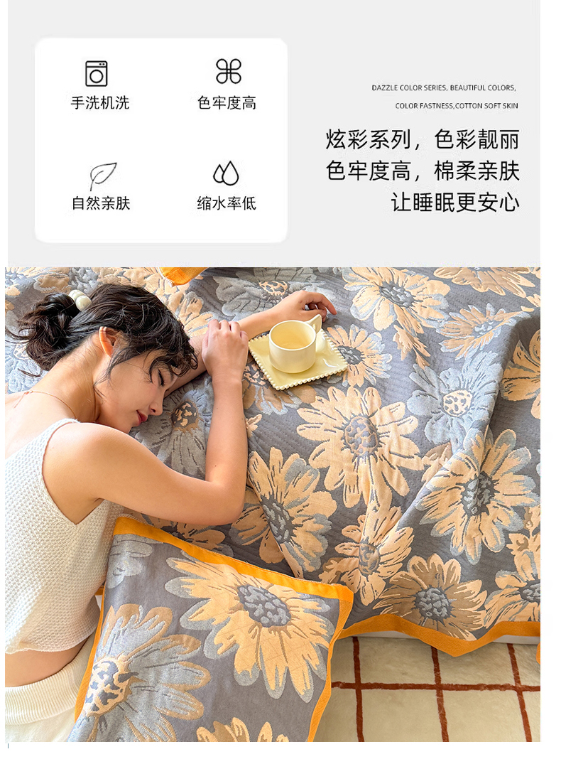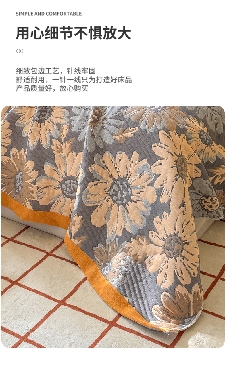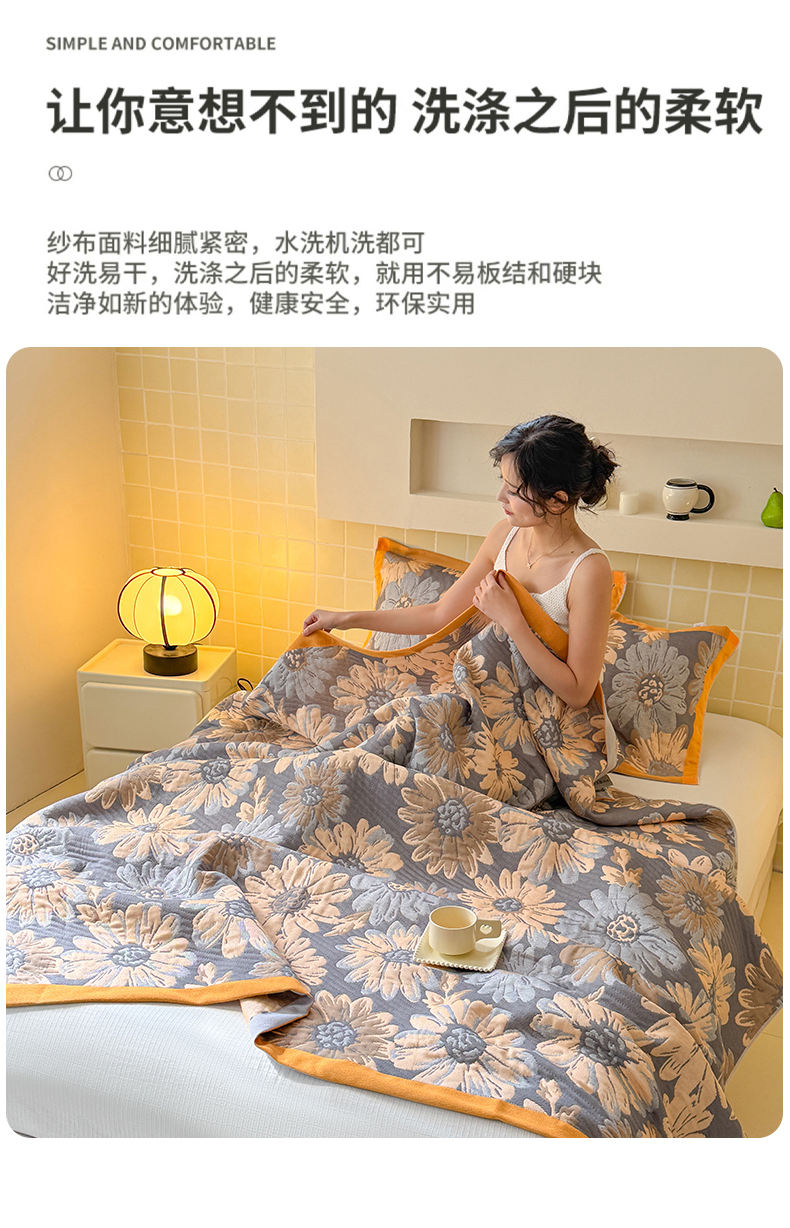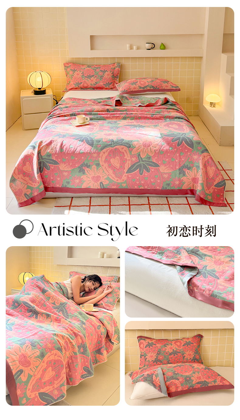 商品名称:朴尔家纺-毛巾被 2026新款彩棉云柔三层纱布毛巾被三件套盖毯 花间令