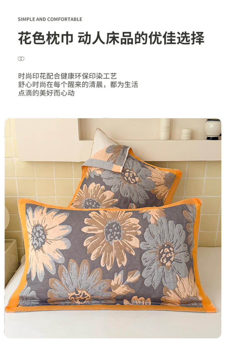(总)朴尔家纺-毛巾被2025新款彩棉国潮风全棉六层纱布枕巾,彩色星光-枕巾,繁花朵朵-枕巾,芳华-枕巾,花间物语-橘枕巾,花间物语-蓝枕巾,花田印象-枕巾,柠香-灰枕巾,柠香-咖枕巾,似锦-枕巾