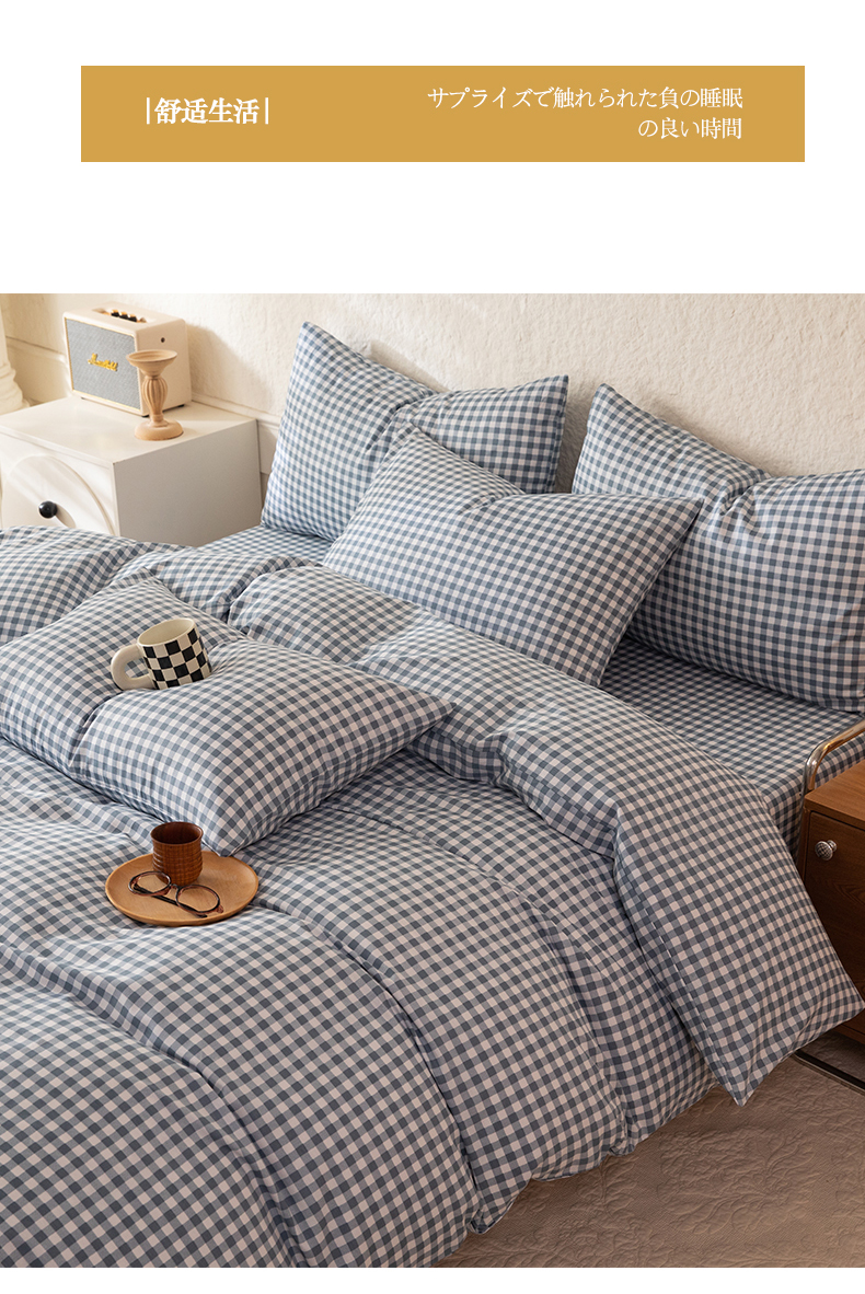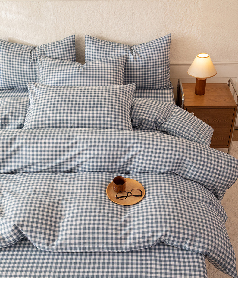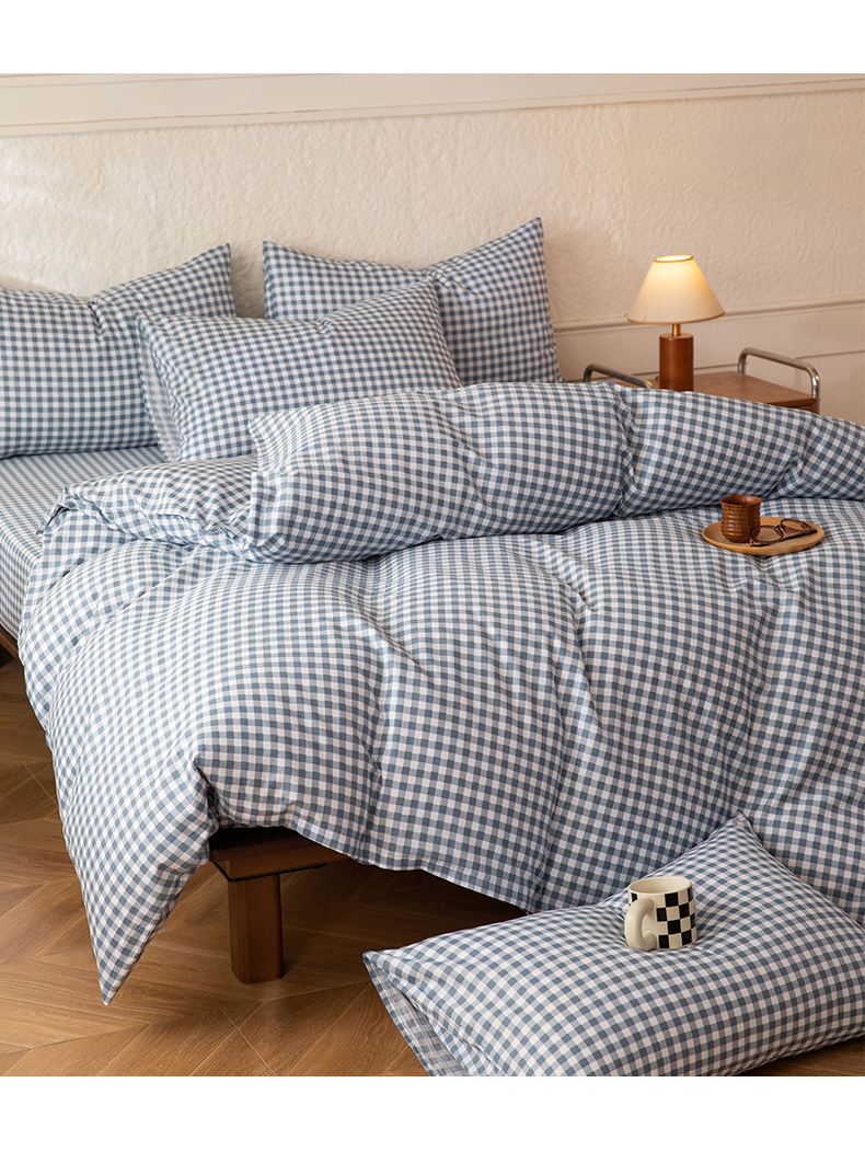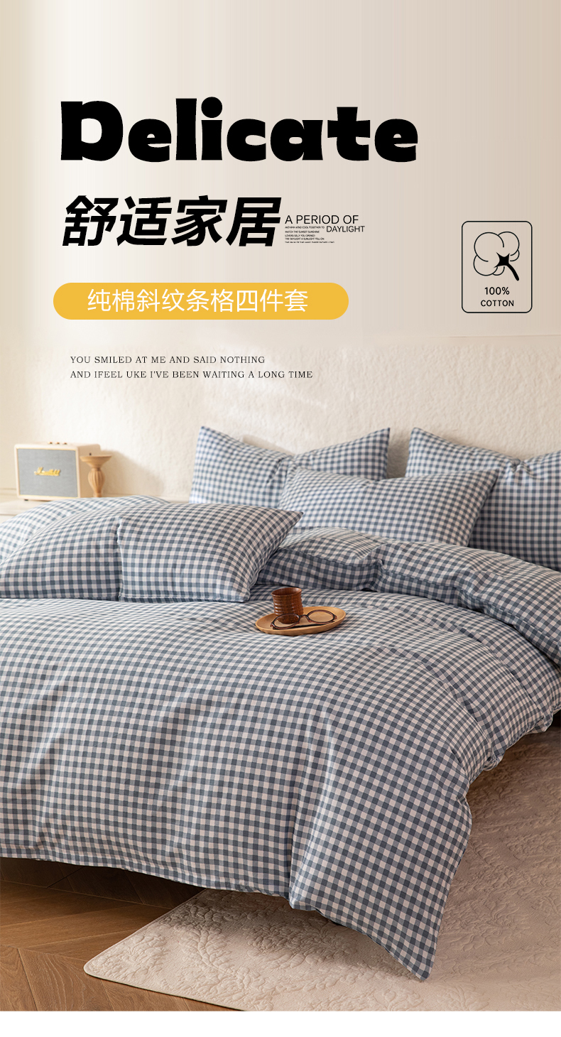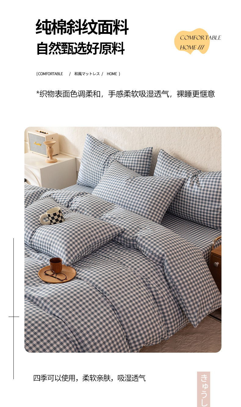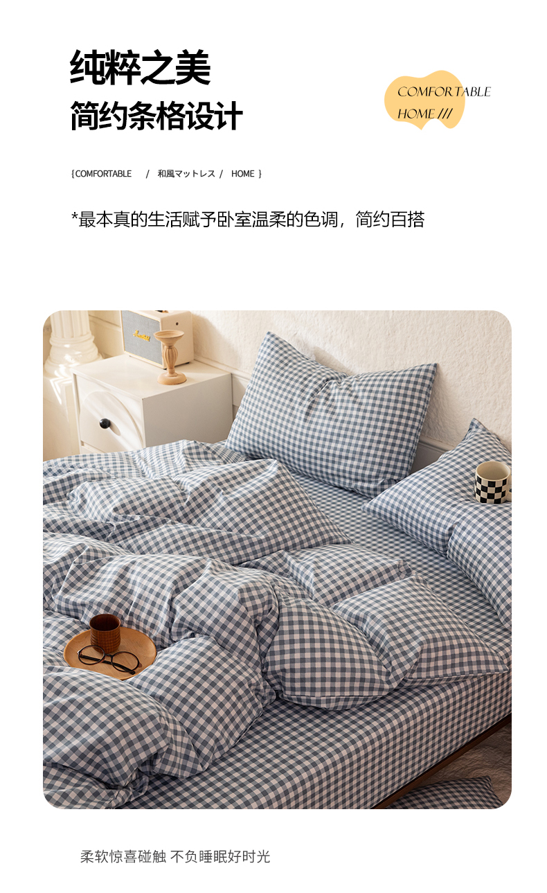 当前位置: 91家纺网 > 商品网购 > 床品套件 > 四件套 > 全棉普通四件套 > 八十八家纺 2026新款无印风全棉纯棉斜纹条格四件套 青田