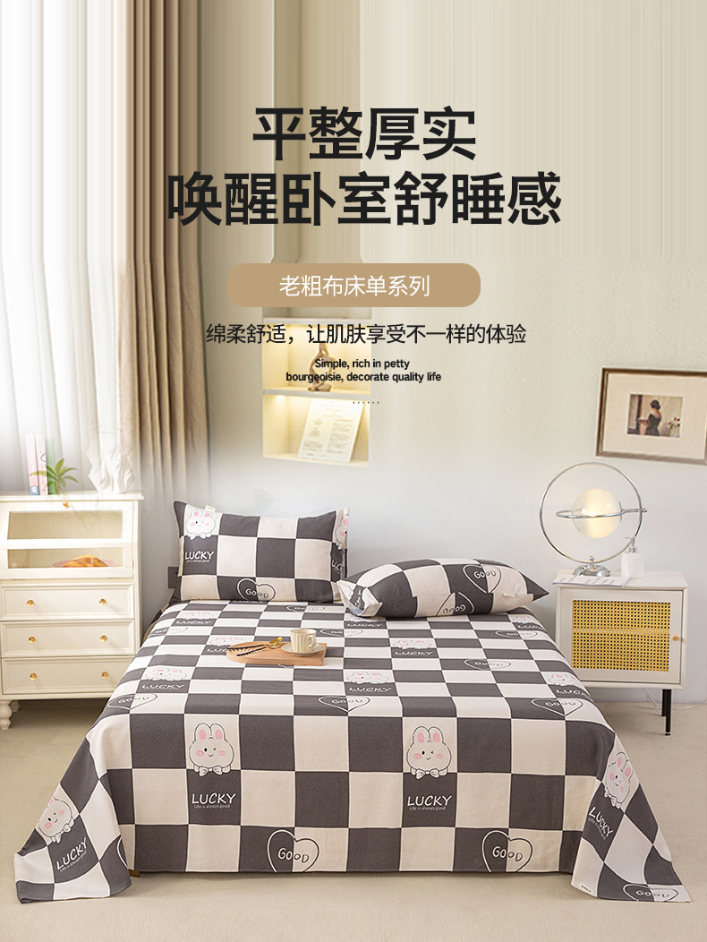• 91家纺网 家纺一手货源 找家纺 (总)首爱家纺 2026新款原棉标印花老粗布床单,lucky兔,艾米,傍晚,波西米亚,彩蝶,初见,淡雅,风雅,格子樱桃,花朵熊,花间,花颜,欢乐,灰格,简尚,简兮蓝,可爱熊猫,蓝格,蓝色恋格,蓝心,冷灰,梦幻小鹿,嫩绿,偶遇,浅灰,热恋,条纹小熊,温馨,兮心,小时光,樱花粉,紫罗兰