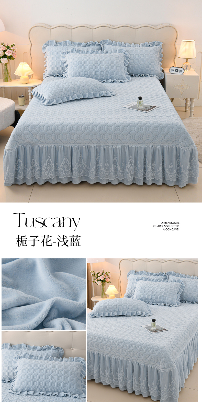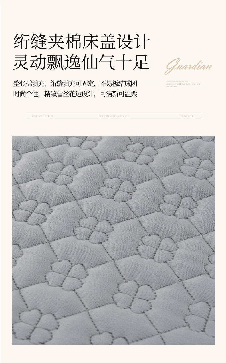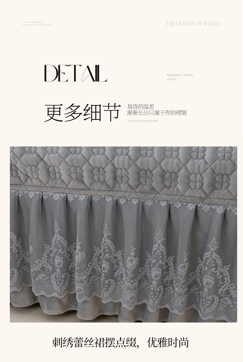 商品名称:优家居工厂店 2026新款240克高克重牛奶绒韩版牛奶绒夹棉床盖三件套床裙三件套直播热款-栀子花 栀子花-灰色