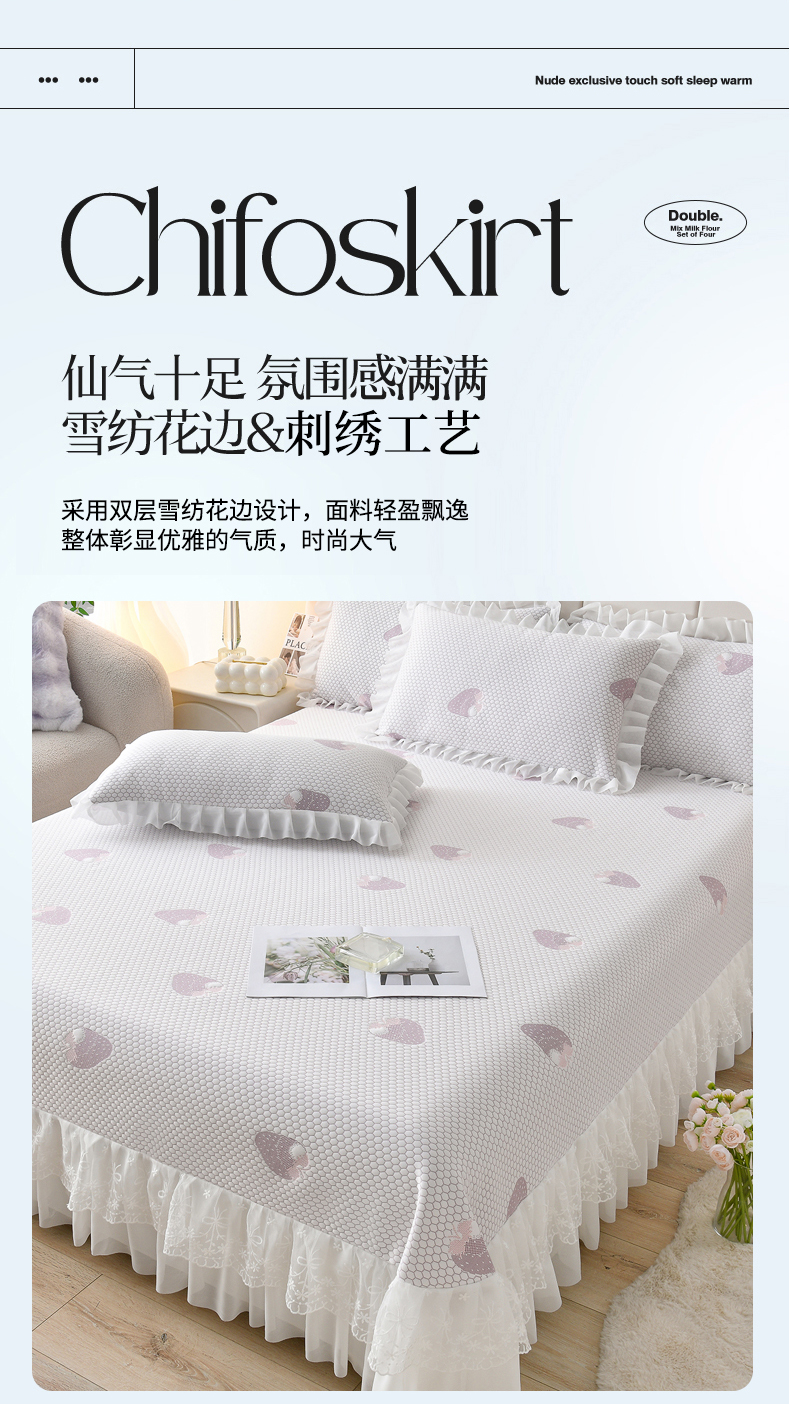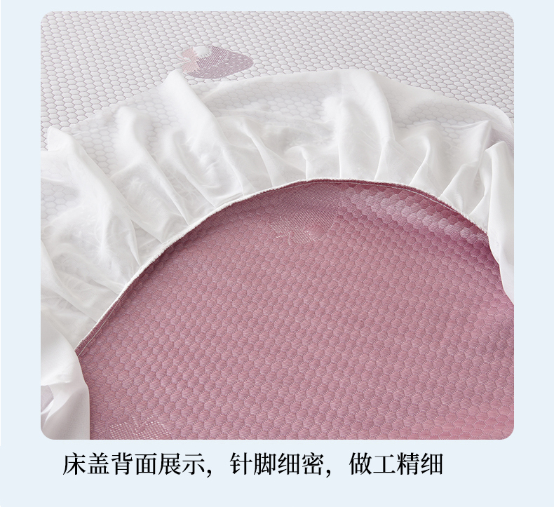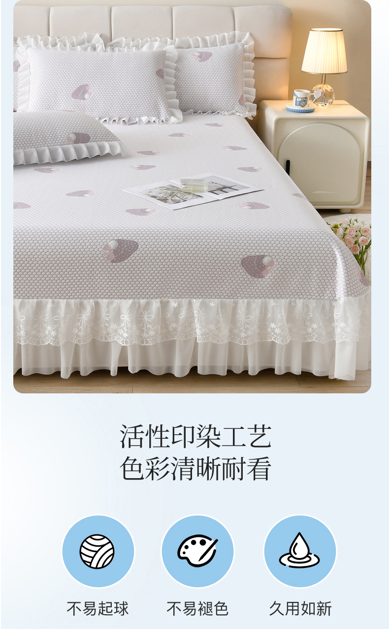 商品名称:(总)优家居工厂店 A类2026新款凉感豆豆提花凉席床裙款床盖三件套高档蕾丝花边可机洗水洗