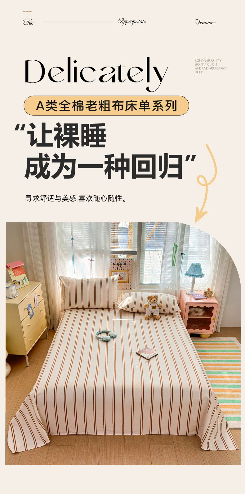 女子家纺 2026新款全棉老粗布床单 风月-米