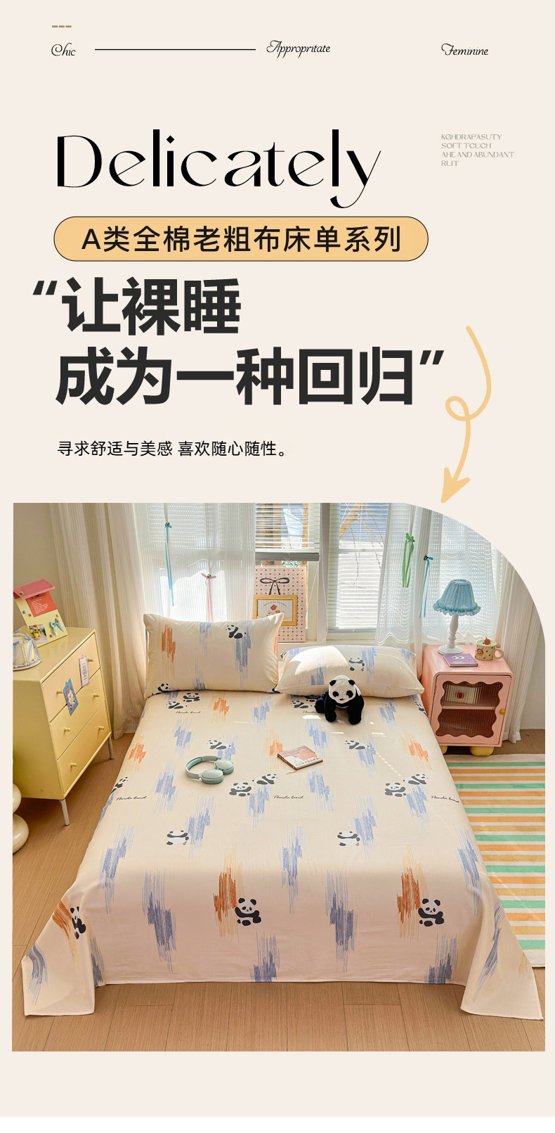 商品名称:女子家纺 2026新款全棉老粗布床单 软萌