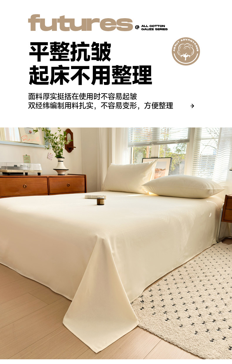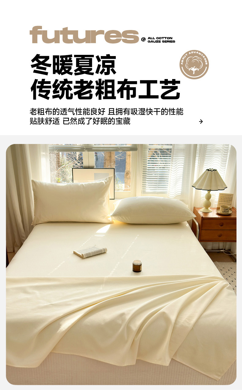 女子家纺 2026新款全棉老粗布床单 月白