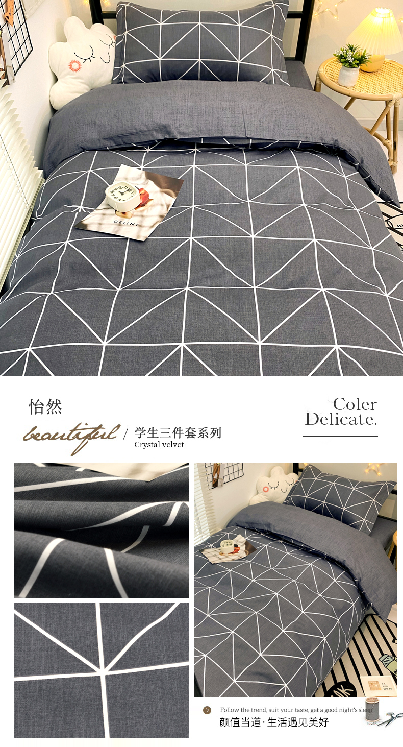 (总)朵希曼 2026新款全棉13372学生三件套系列,爱的萌牛,艾伦-粉,伯爵-灰,都市柔情,方格时代,芳菲,芳华,风尚-灰,风尚-蓝,海豚-粉,海豚-蓝,几何空间,简美,乐章,墨尔本,品尚,轻居,心语,心悦,幸运星-蓝,怡然,英伦,月羽,LOVE