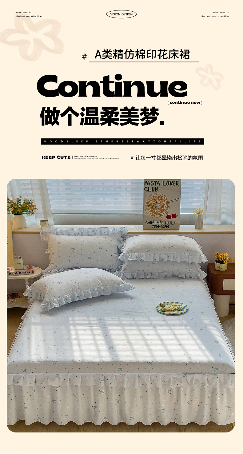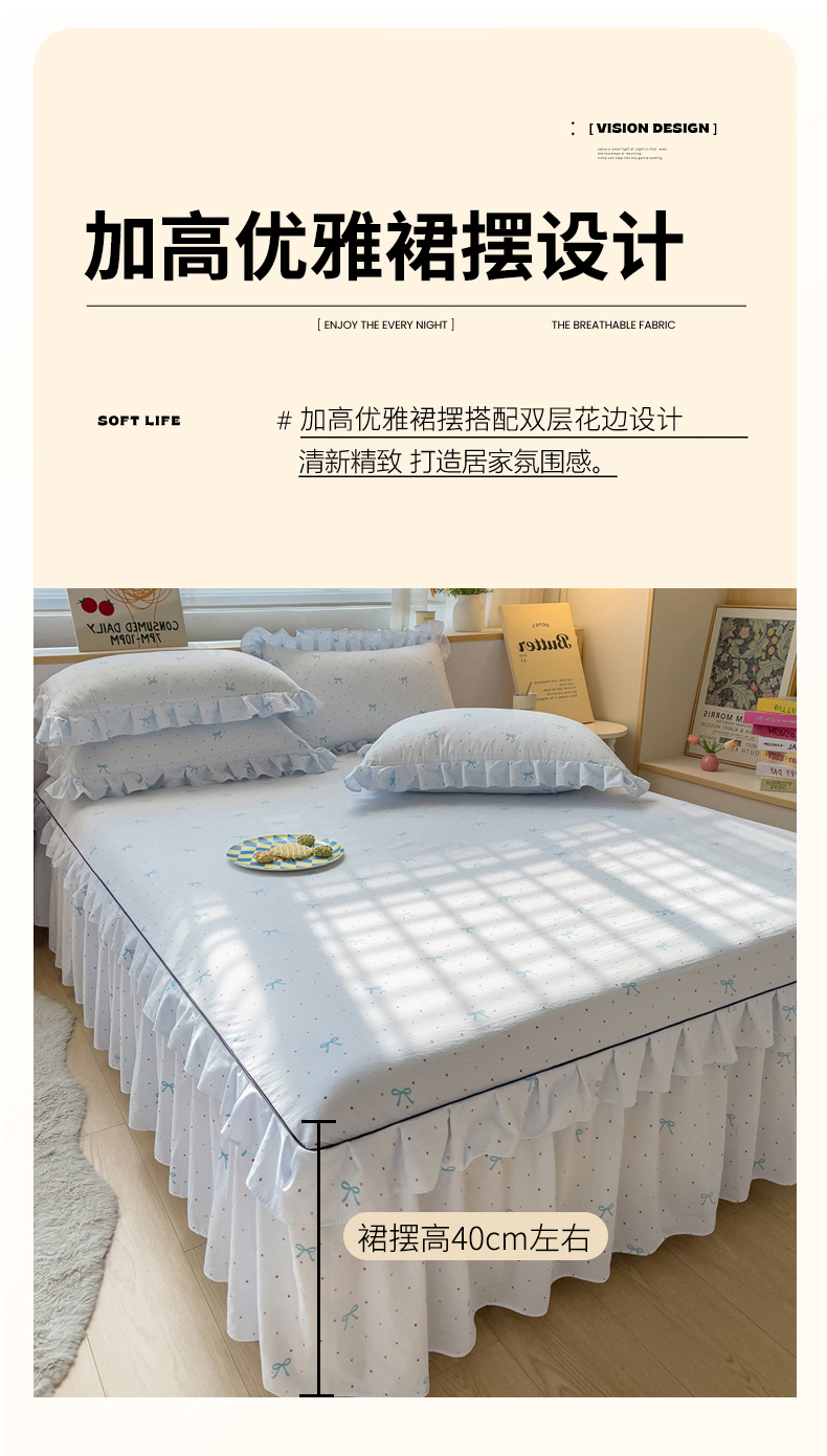 当前位置: 91家纺网 > 商品网购 > 床上用品 > 床裙 > 优家居 2026新款精仿棉床裙三件套水洗棉韩版公主风花边床裙直播外贸定制 潘多拉-兰