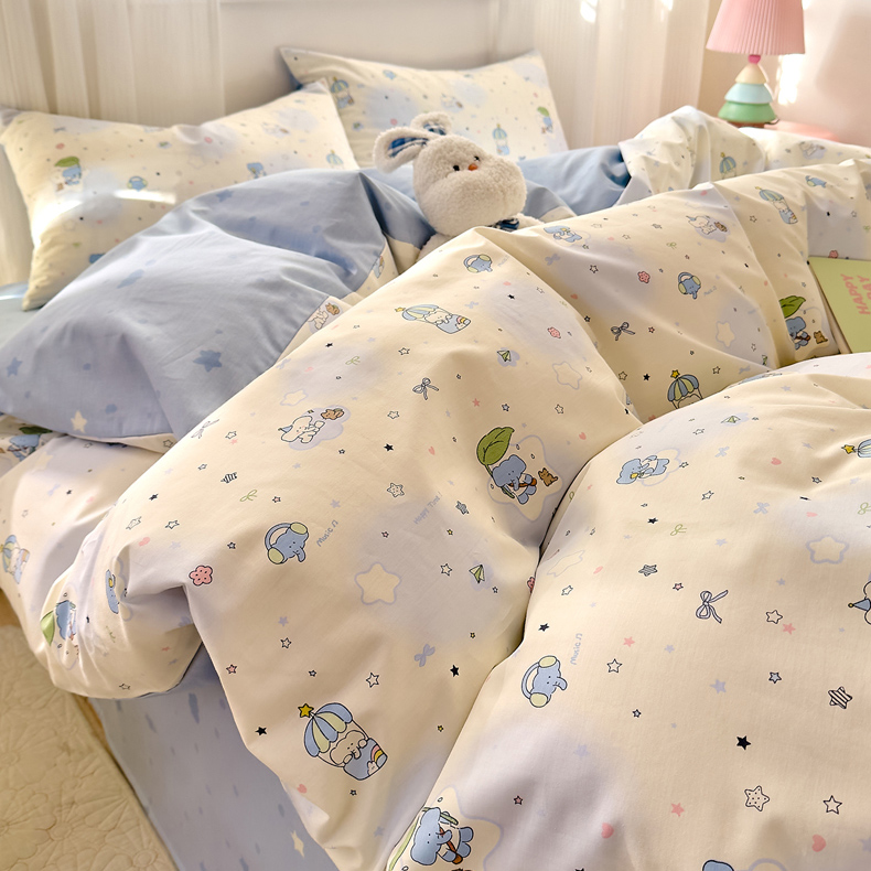 当前位置: 91家纺网 > 商品网购 > 床品套件 > 四件套 > 全棉普通四件套 > DoDo 兜兜 2026春夏新款全棉纯棉可爱卡通四件套 蓝色小象