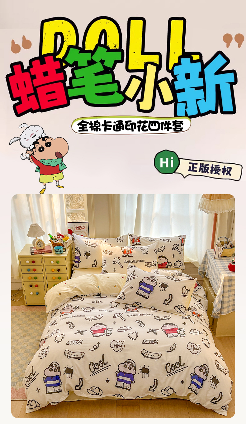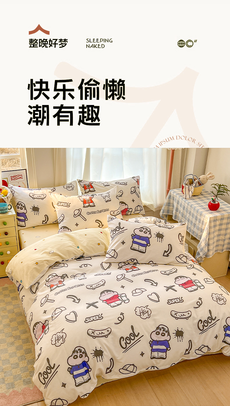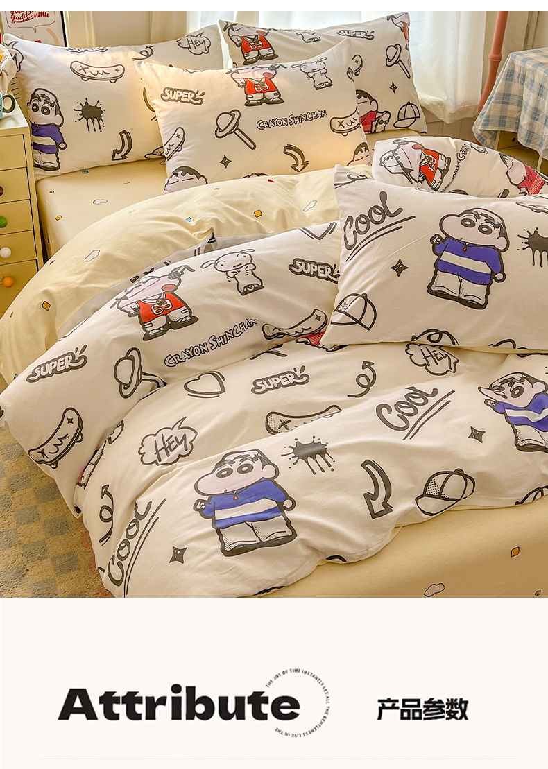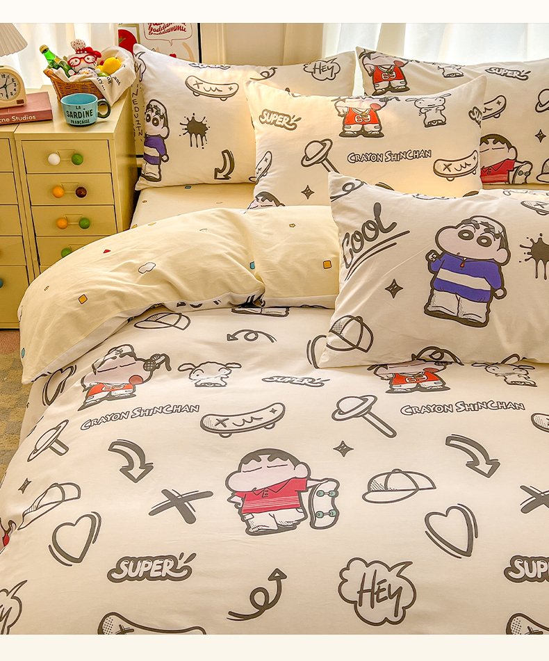 当前位置: 91家纺网 > 商品网购 > 床品套件 > 四件套 > 全棉普通四件套 > 浩诚 2026新款蜡笔小新正版授权全棉卡通四件套 滑板小新