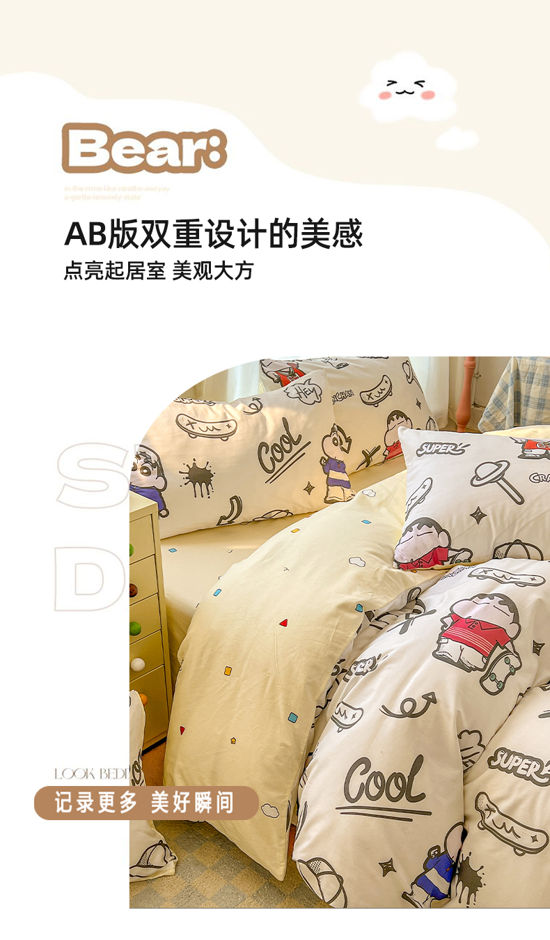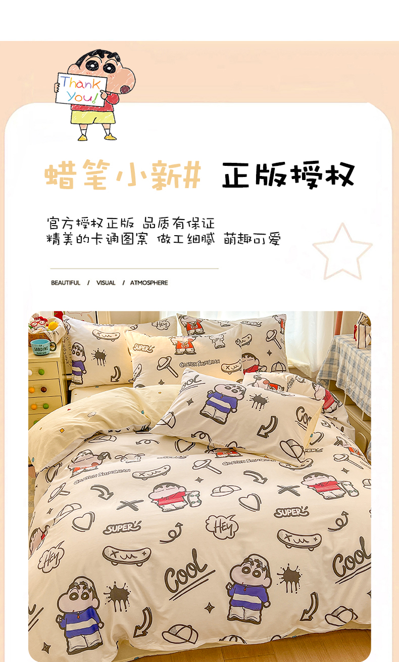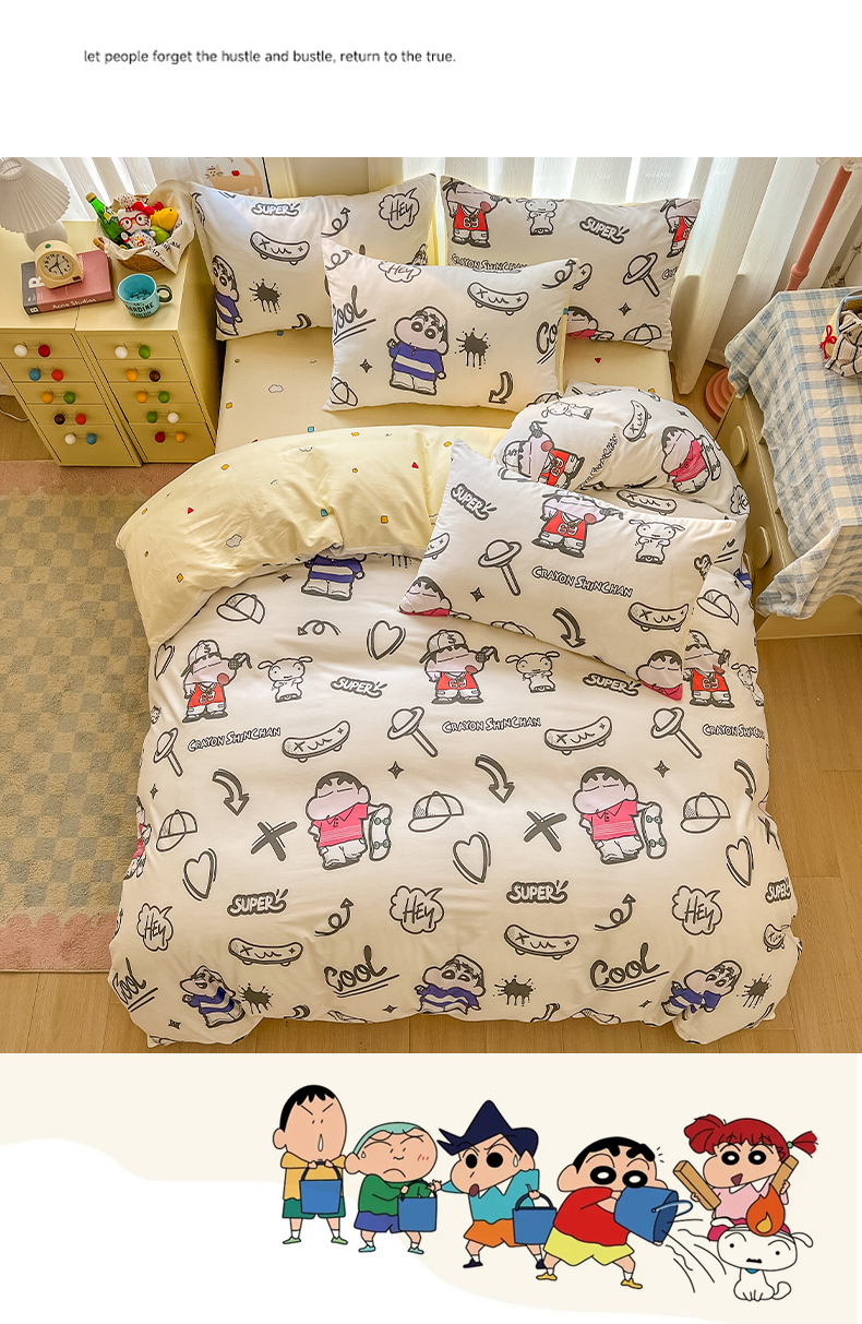 当前位置: 91家纺网 > 商品网购 > 床品套件 > 四件套 > 全棉普通四件套 > 浩诚 2026新款蜡笔小新正版授权全棉卡通四件套 滑板小新
