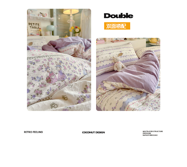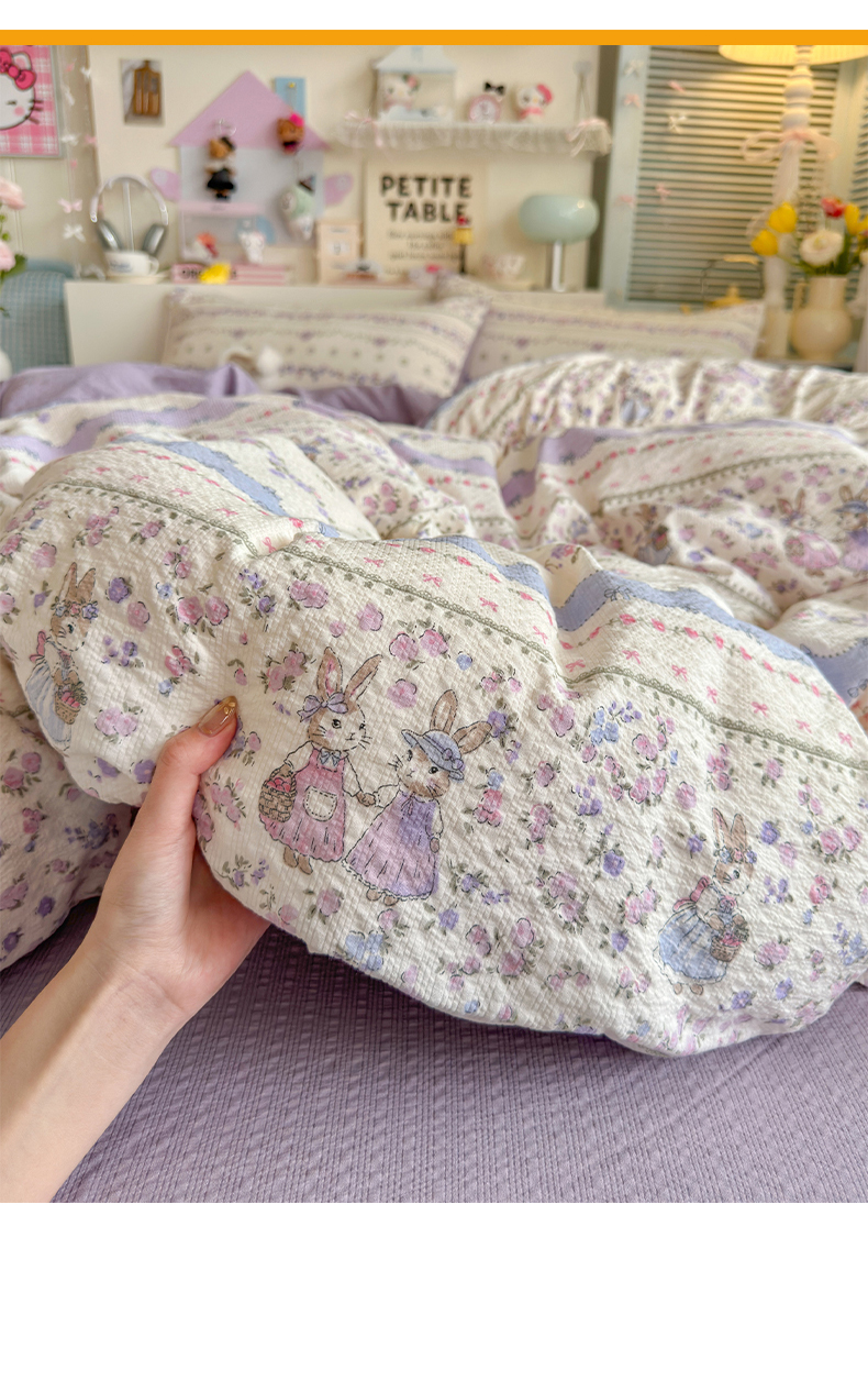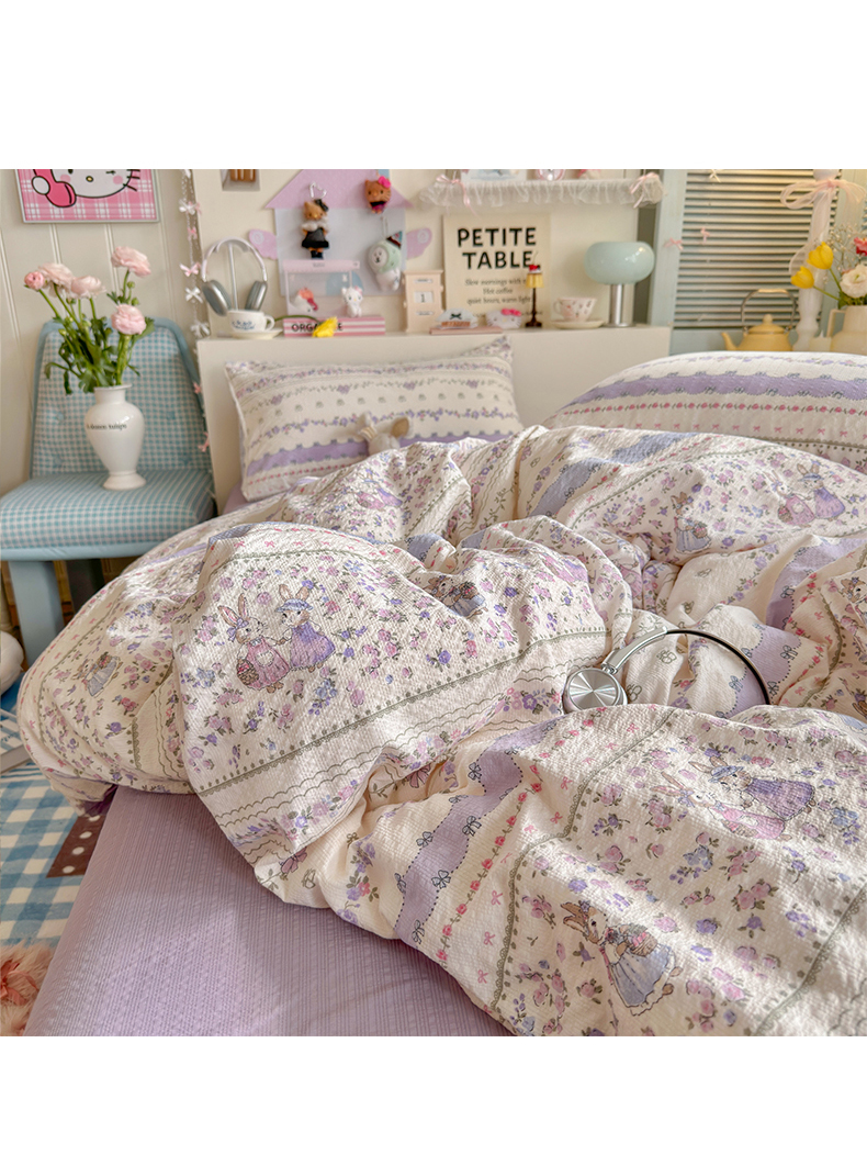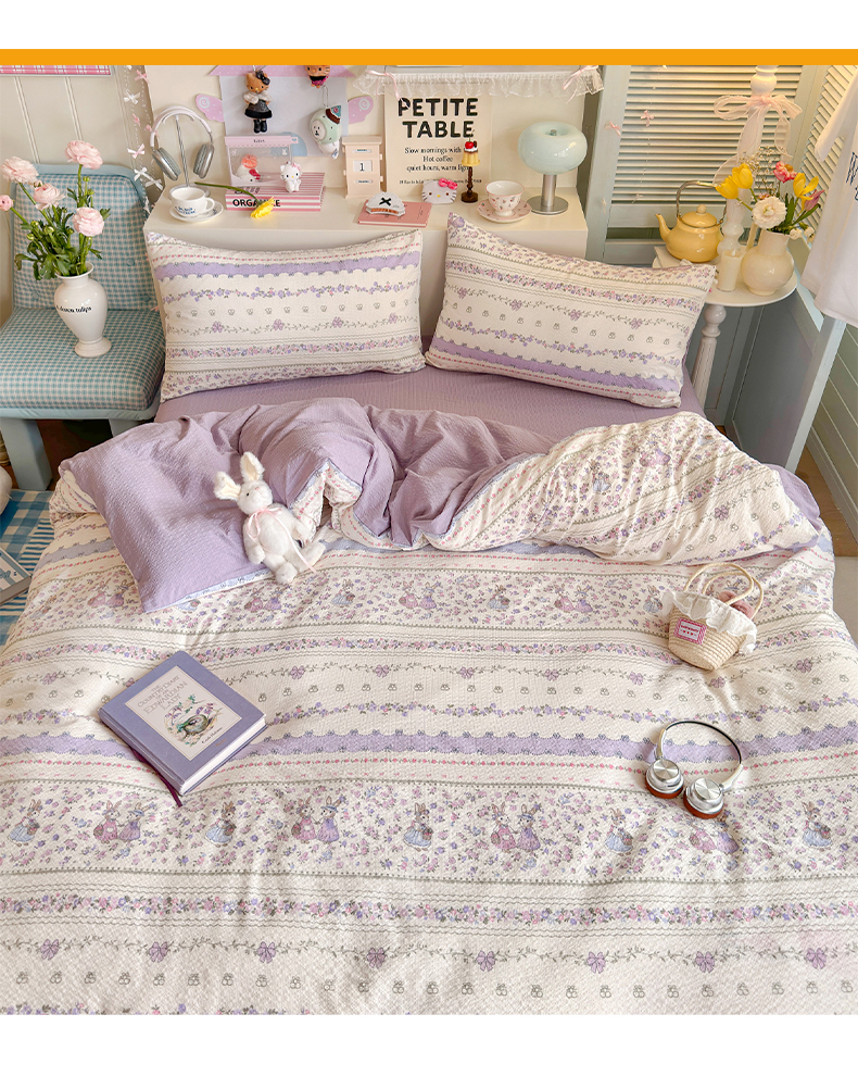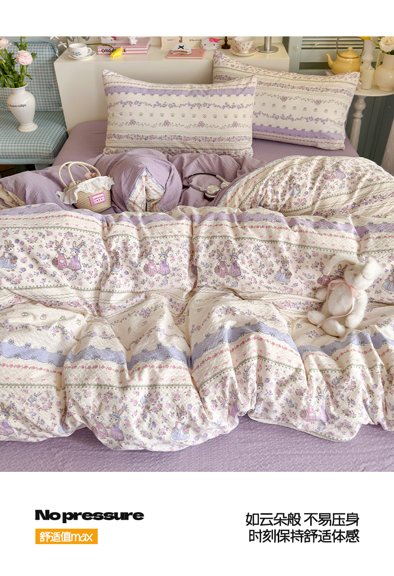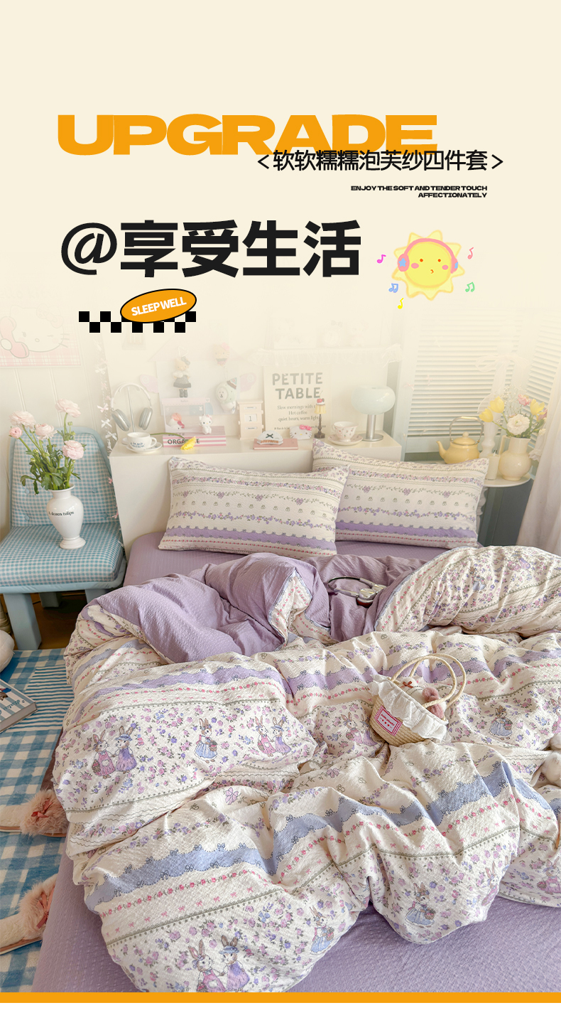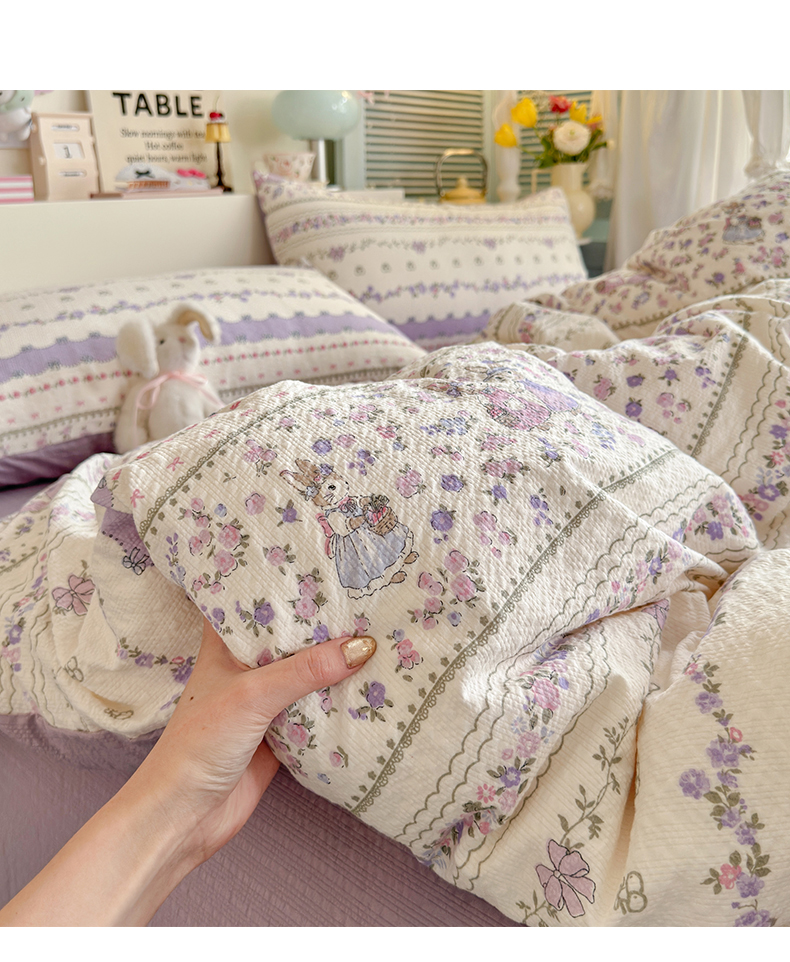 当前位置: 91家纺网 > 商品网购 > 床品套件 > 四件套 > 其它四件套 > 优选 2026新款小清新110g高品质直播热卖款A类泡芙棉双层纱四件套 花清梦