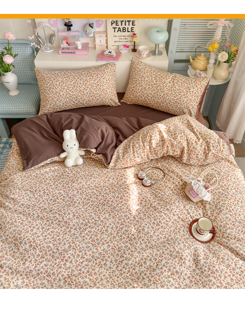 当前位置: 91家纺网 > 商品网购 > 床品套件 > 四件套 > 其它四件套 > 优选 2026新款110g小清新高克重高品质直播热卖款A类泡芙棉双层纱四件套 伊柠