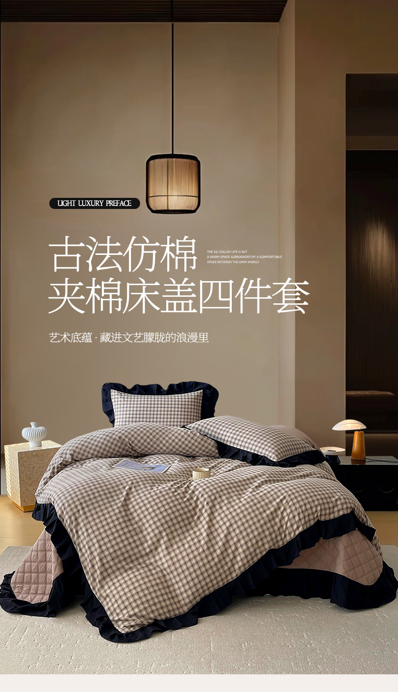商品名称:麦田家纺 2026新款花边夹棉床盖四件套-西西里岛 西西里岛-咖色