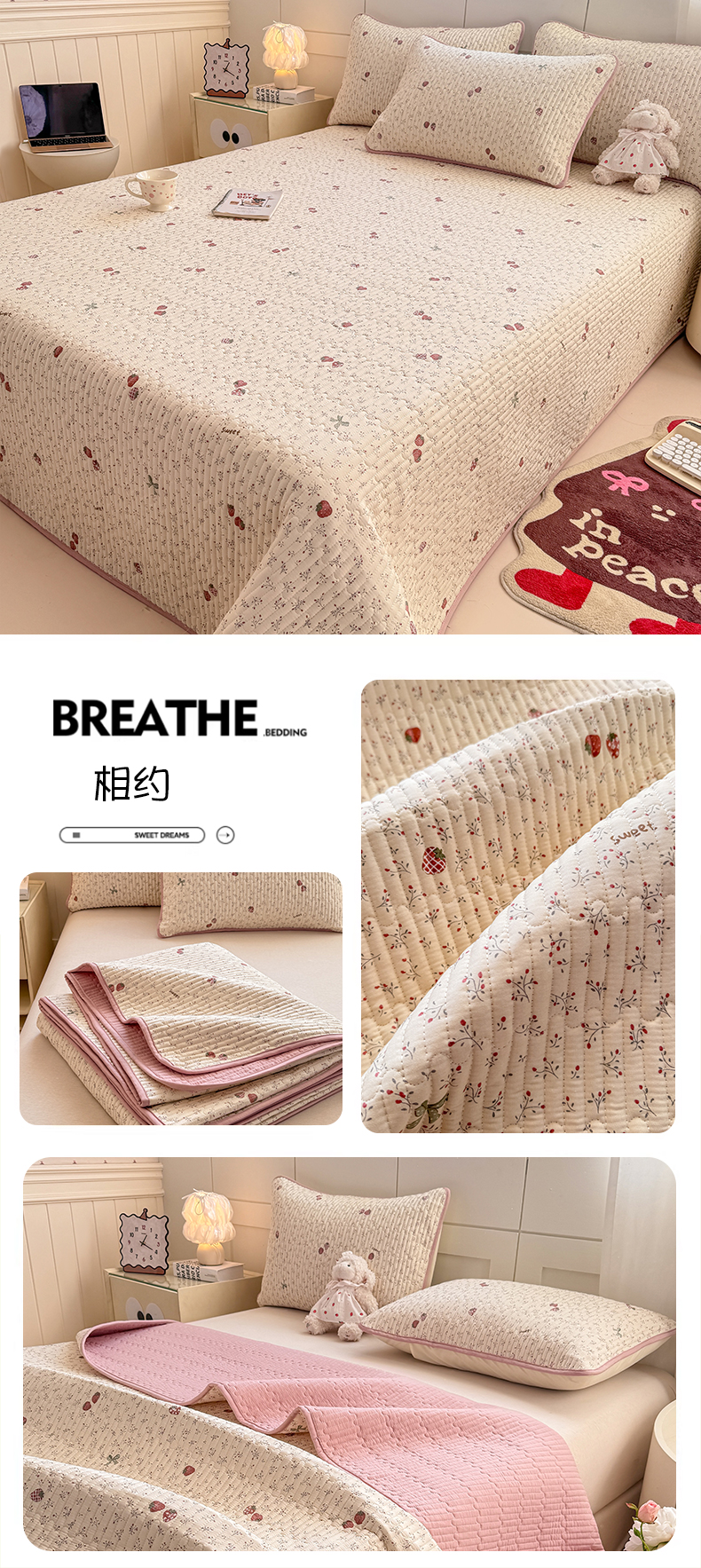 (总)康纳利 2026新款全棉床盖学生夹棉薄款床盖宿舍上下铺床垫三件套四季通用,波点兔,彩色波点,春天里,费尔岛,格调,蝴蝶结粉,蝴蝶结蓝,欢乐伙伴,腊肠狗,莱茵春色,萌小福,相约,小新一家,熊仔,月见,KT粉,组合
