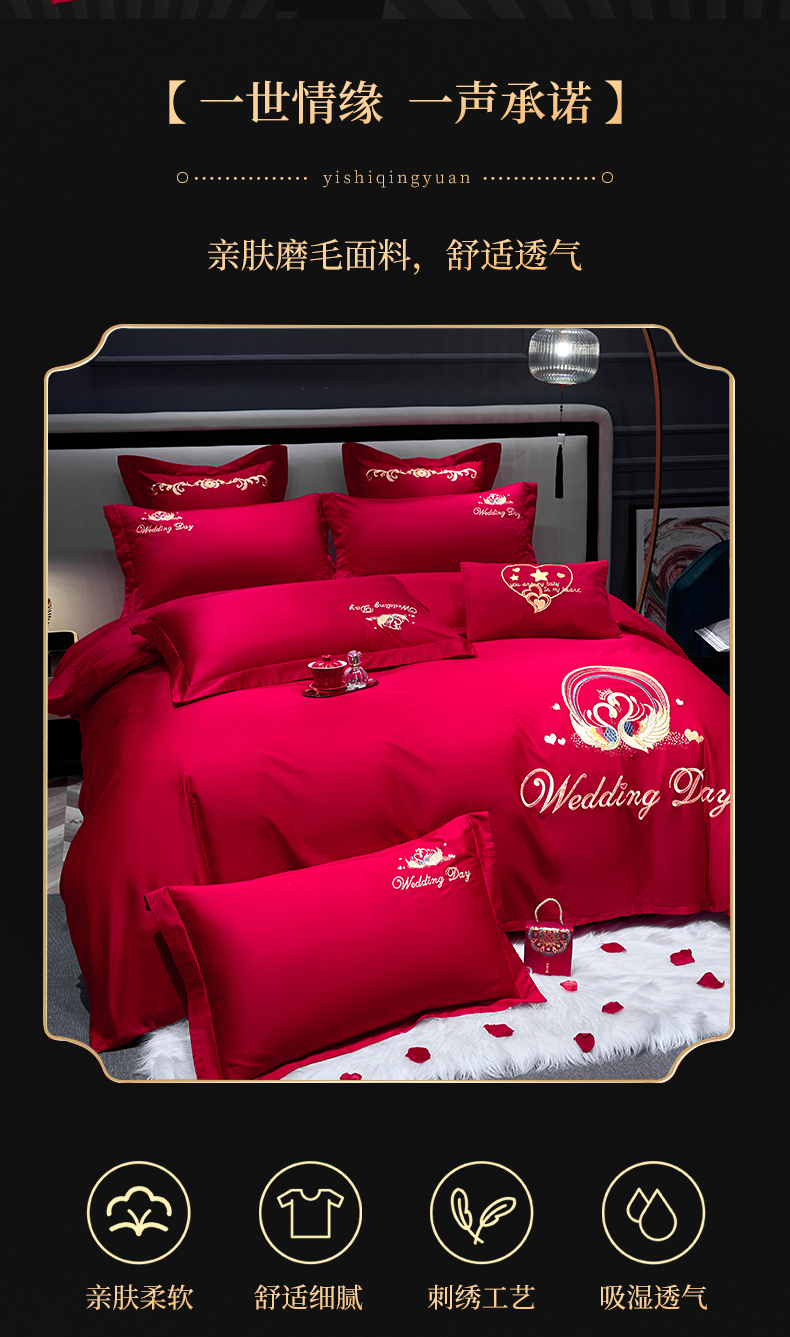 (总)慕她家纺 2025新款磨毛婚庆四件套结婚刺绣花床品六喜庆,爱的约定,百年同心,恩恩爱爱,花好月圆,两心相悦,龙凤传情,龙凤欢腾,龙凤情缘,玫瑰情缘,米兰风情,盛世龙凤,盛世庄园 大红,盛世庄园 经典灰,盛世庄园 孔雀兰,盛世庄园 浪漫玉,盛世庄园 魅力紫,盛世庄园 雅豆沙,双喜情缘,天缘巧合,天作之合,喜笑颜开,幸福满园,幸福如意,一见钟情,鸳鸯同心,张灯结彩