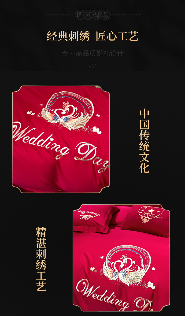 (总)慕她家纺 2026慕她大花工艺款全棉纯棉婚庆四件套大红色刺绣结婚床上用品,鸳鸯贺喜,喜韵江山,喜结连理,花开志喜,喜嫁,双喜临门,天赐良缘,龙凤添喜,龙凤团圆,缔结良缘 红,缔结良缘 金,凤冠霞帔,福喜龙凤,欢喜龙凤,佳偶天成,龙凤呈祥,龙凤佳缘,龙凤送子,龙凤祥和,龙翔凤舞,龙啸凤吟,甜蜜龙凤,早生贵子,挚爱龙凤,百子登科,恩爱情深,繁花似锦,恋曲牡丹,美丽红妆,如愿,诗韵牡丹,走进幸福 红,走进幸福 金,百子江山,好运吉祥,吉祥龙凤,名门龙凤,眷恋龙凤,天生一对,执手龙凤,至尊龙凤,子孙满堂,百子贺喜