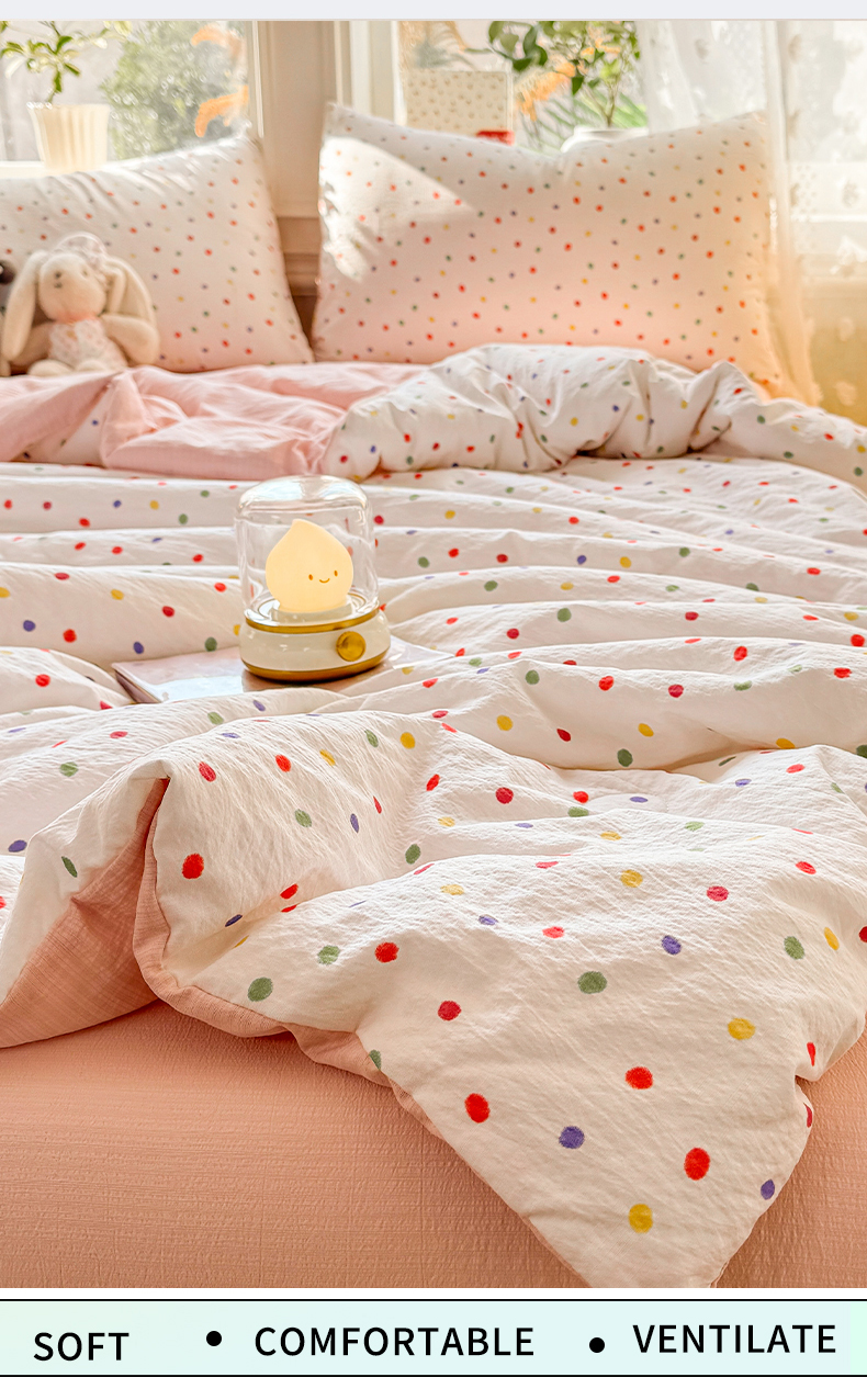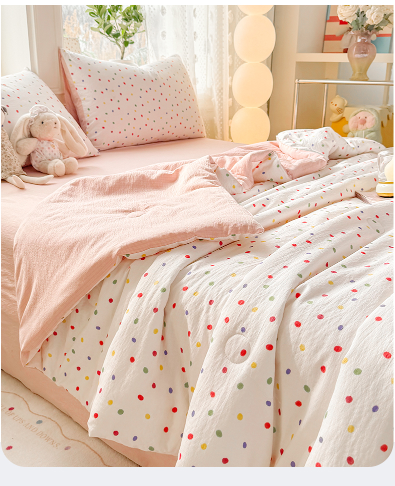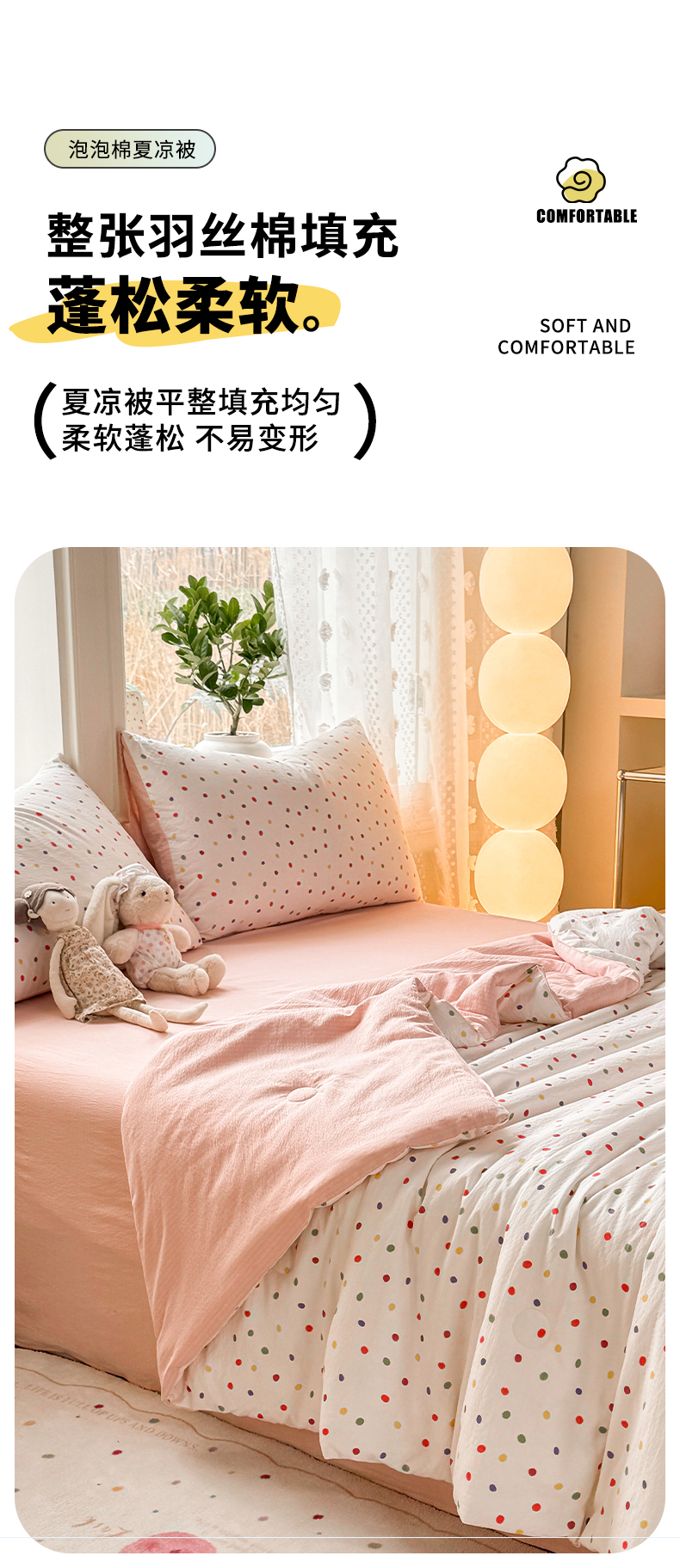 丽美人家纺 2026春夏新款简单款皱皱纱夏被夏凉被空调被 彩色波点