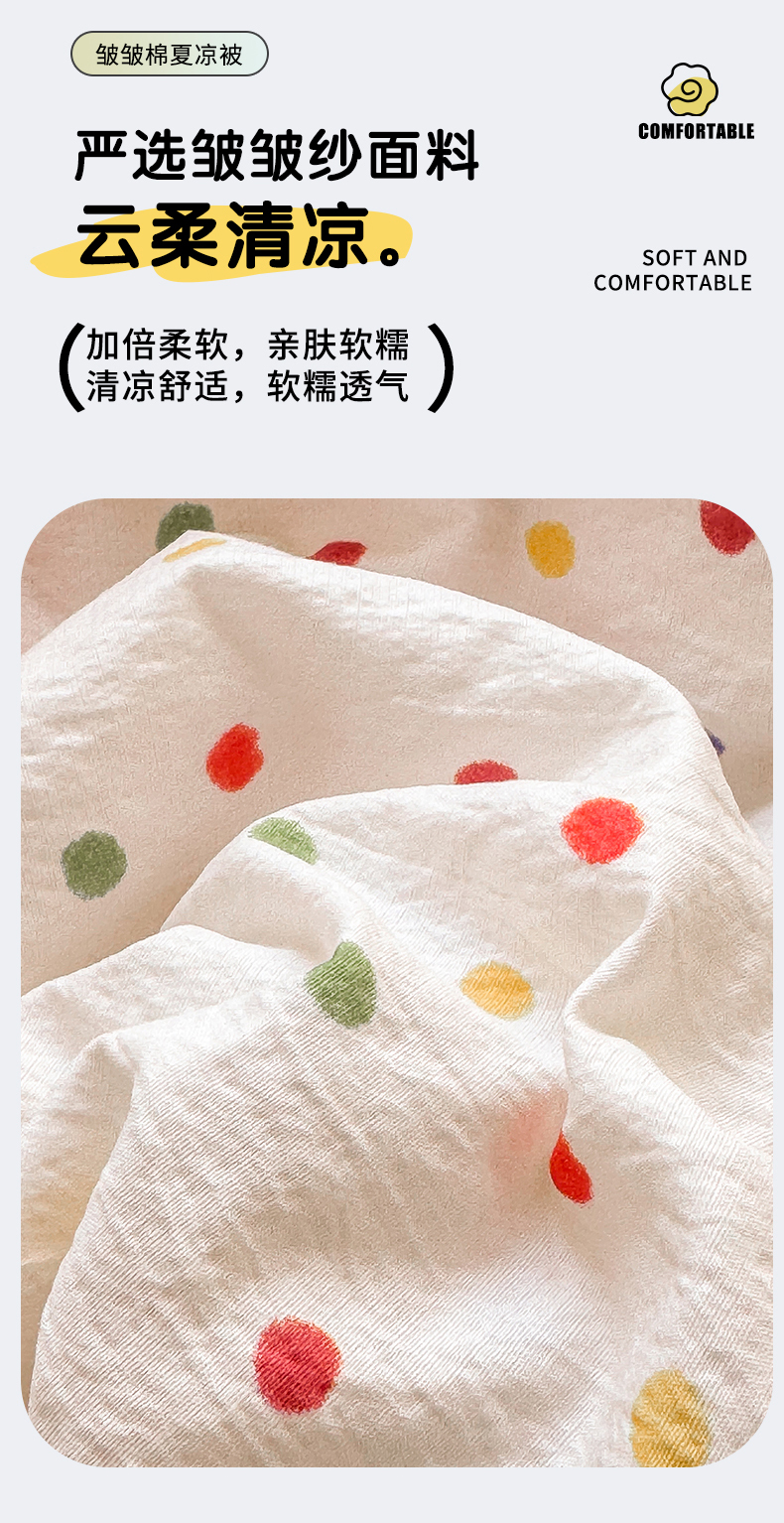 • 91家纺网 家纺一手货源 找家纺 丽美人家纺 2026春夏新款简单款皱皱纱夏被夏凉被空调被 彩色波点 91家纺网 家纺一手货源 找家纺 丽美人家纺 2026春夏新款简单款皱皱纱夏被夏凉被空调被 彩色波点