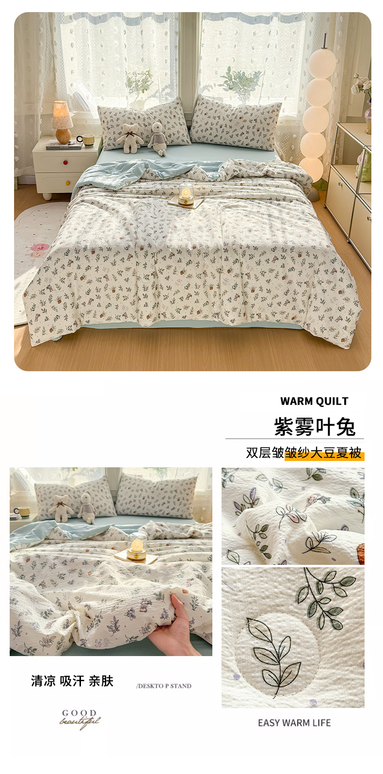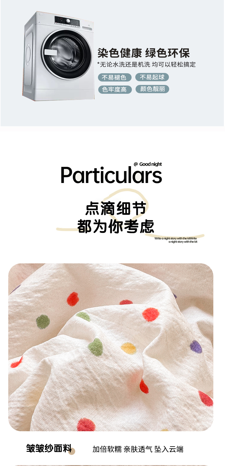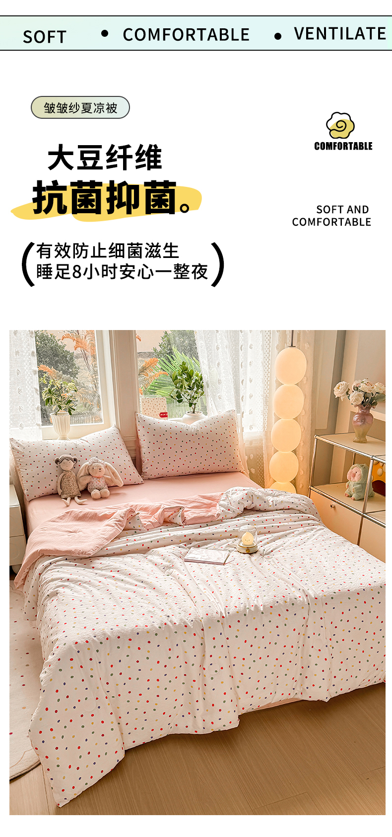 当前位置: 91家纺网 > 商品网购 > 被子 > 夏被 > 丽美人家纺 2026春夏新款简单款皱皱纱夏被夏凉被空调被 彩色波点