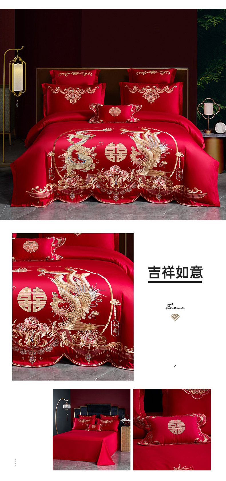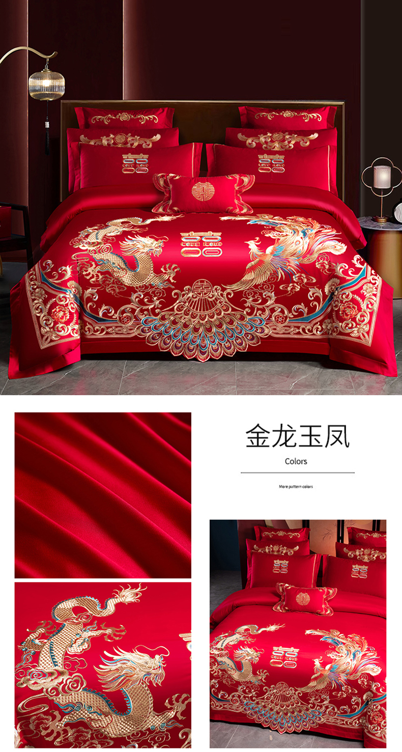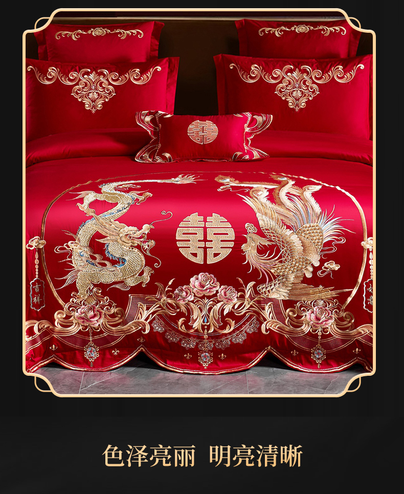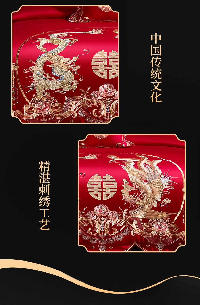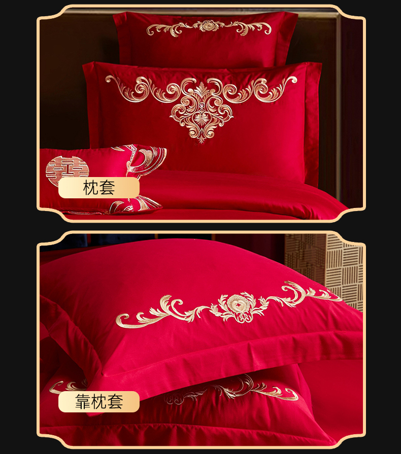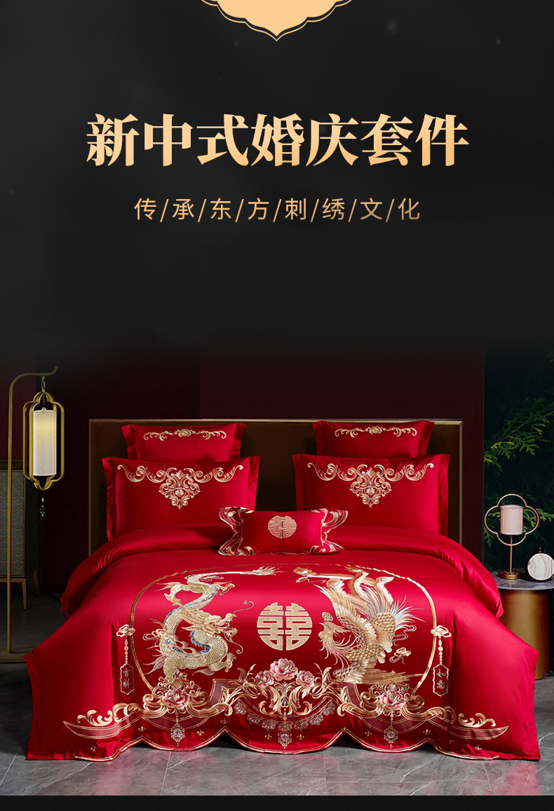 当前位置: 91家纺网 > 商品网购 > 床品套件 > 四件套 > 婚庆四件套 > 慕她家纺 2026年磨毛亲肤棉婚庆四件套大红色刺绣结床上用品 吉祥如意