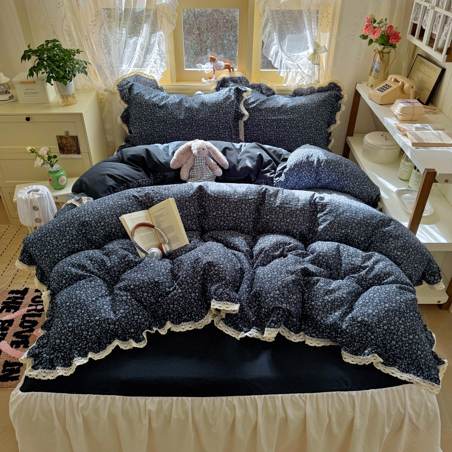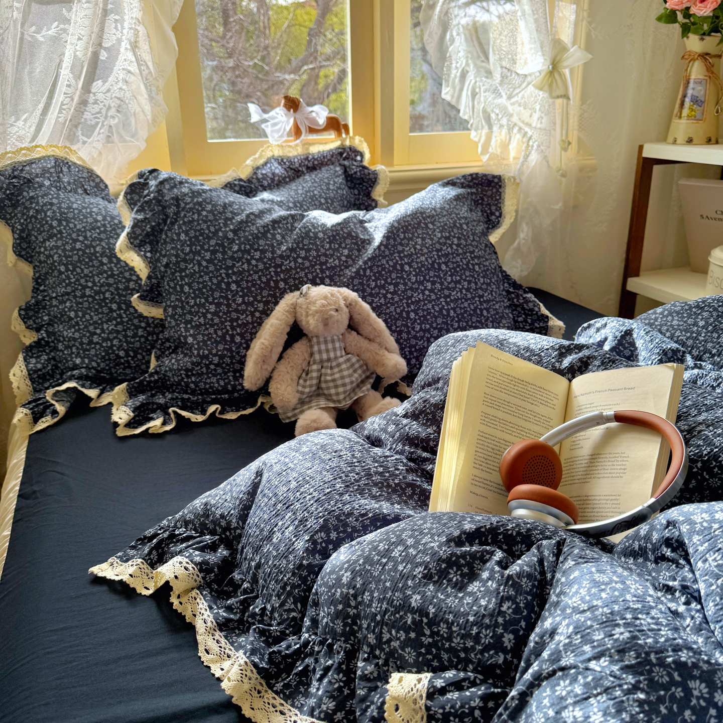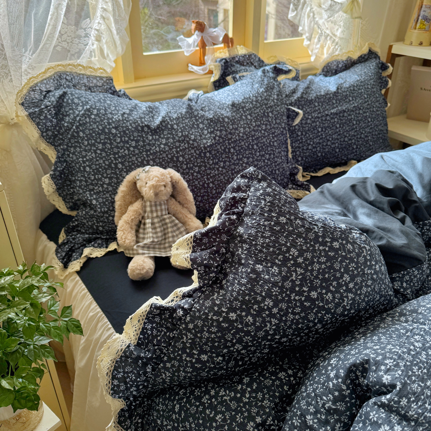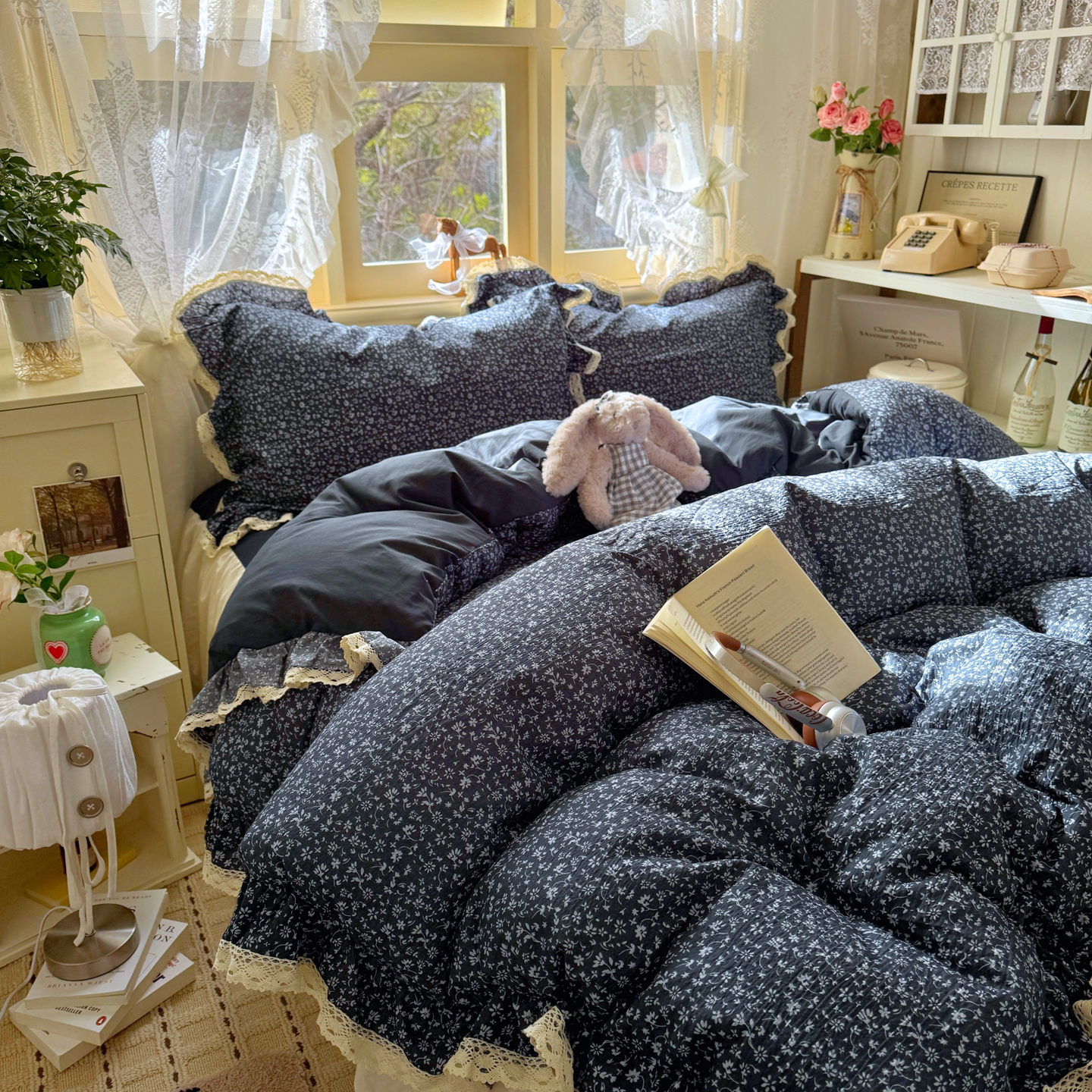 (总)阿曼达 2025新款韩系法式慵懒氛围感印花泡芙花边四件套(专版花型),樱花泡芙-黑,樱花泡芙-红,樱花泡芙-蓝,樱花泡芙-梨漫,樱花泡芙-宅妹粉