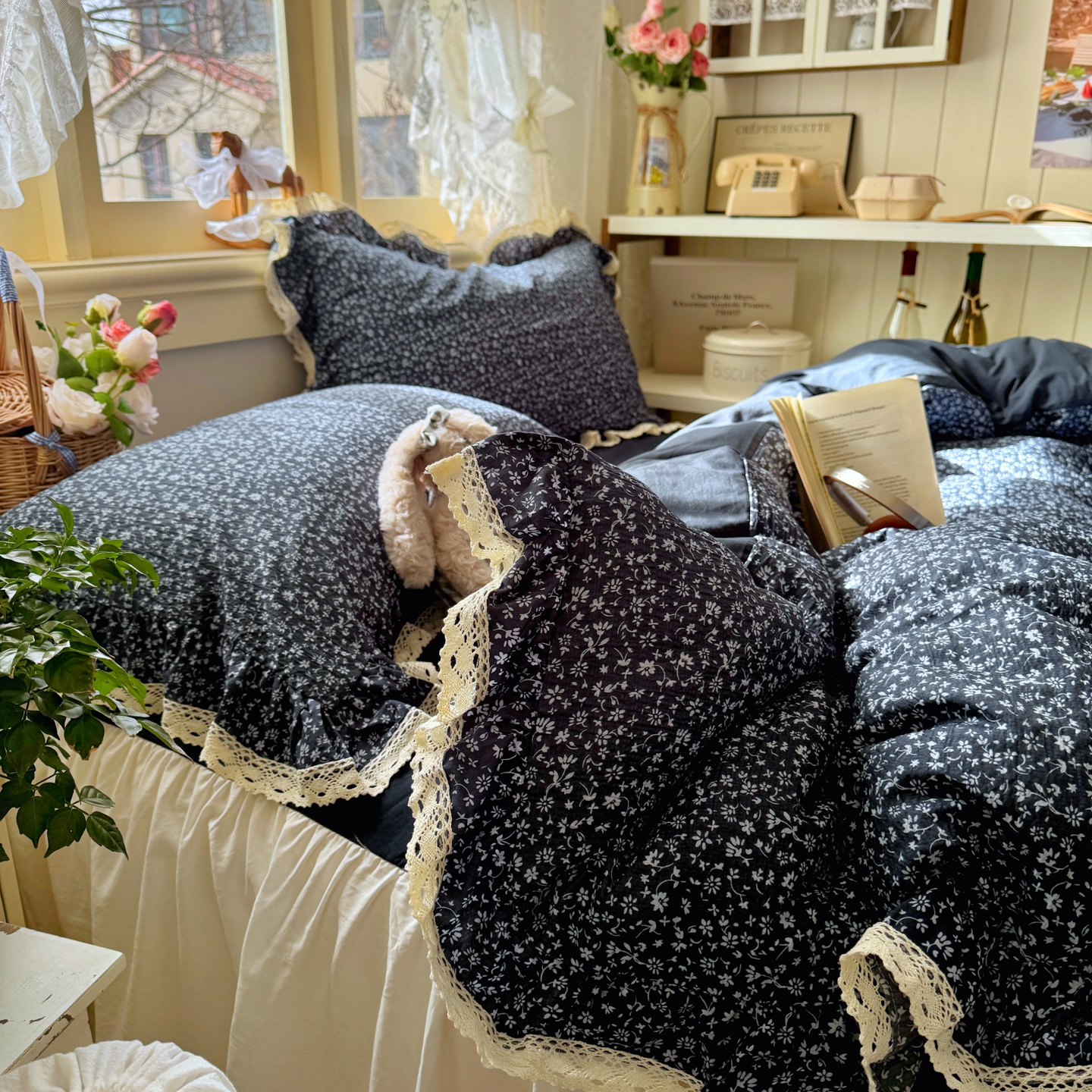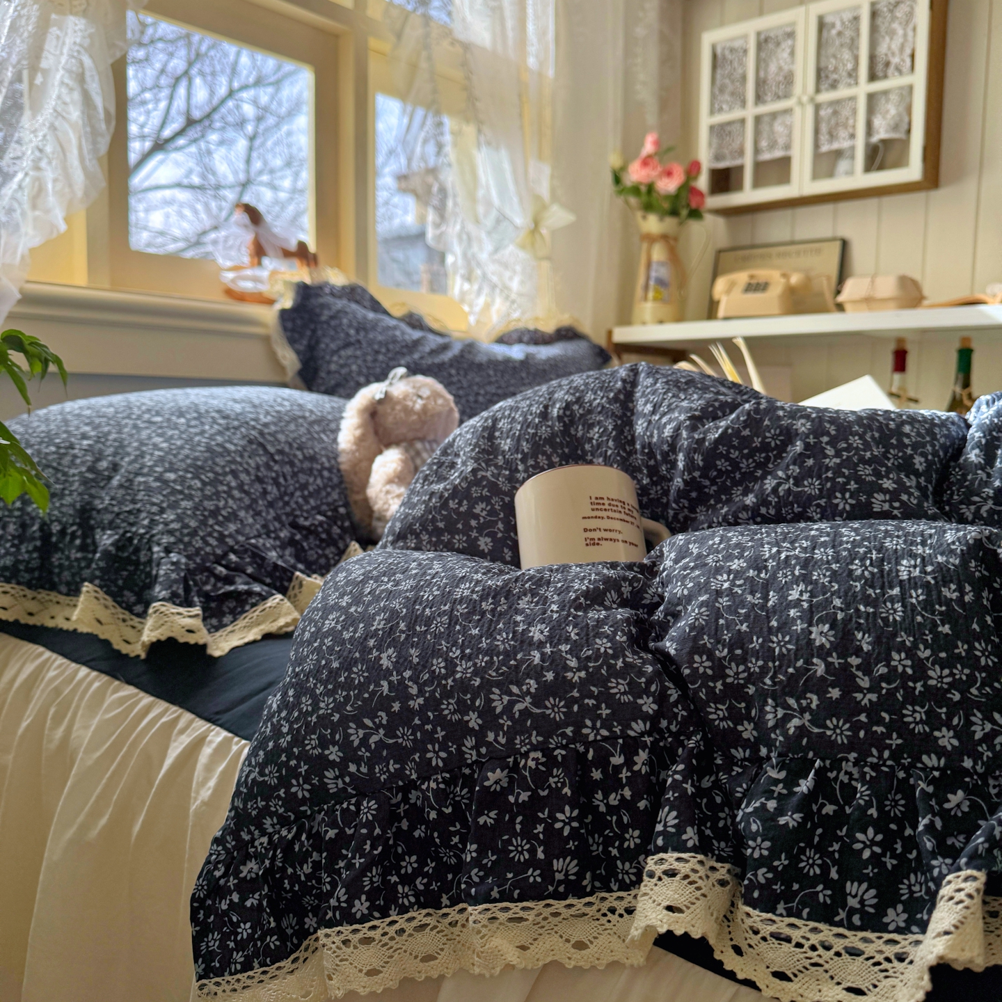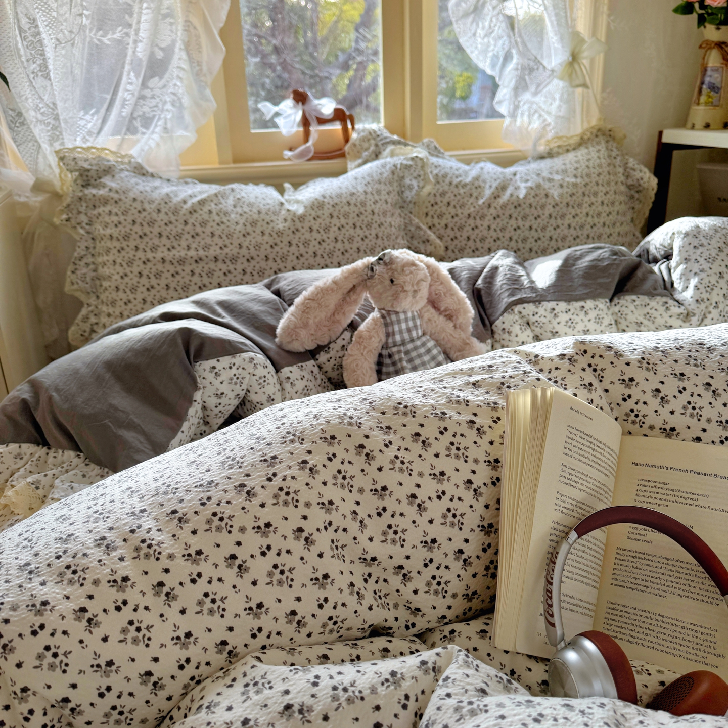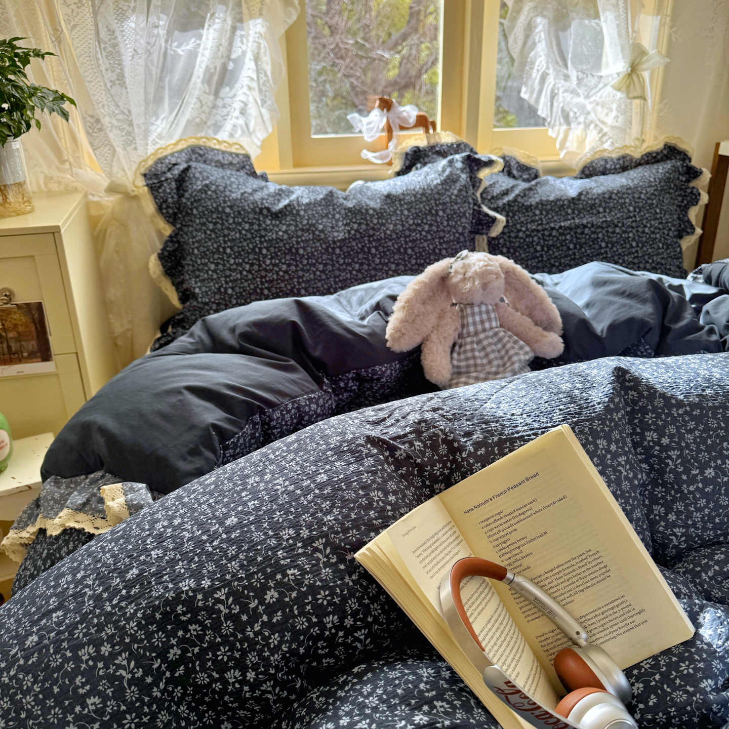 (总)阿曼达 2025新款韩系法式慵懒氛围感印花泡芙花边四件套(专版花型),樱花泡芙-黑,樱花泡芙-红,樱花泡芙-蓝,樱花泡芙-梨漫,樱花泡芙-宅妹粉