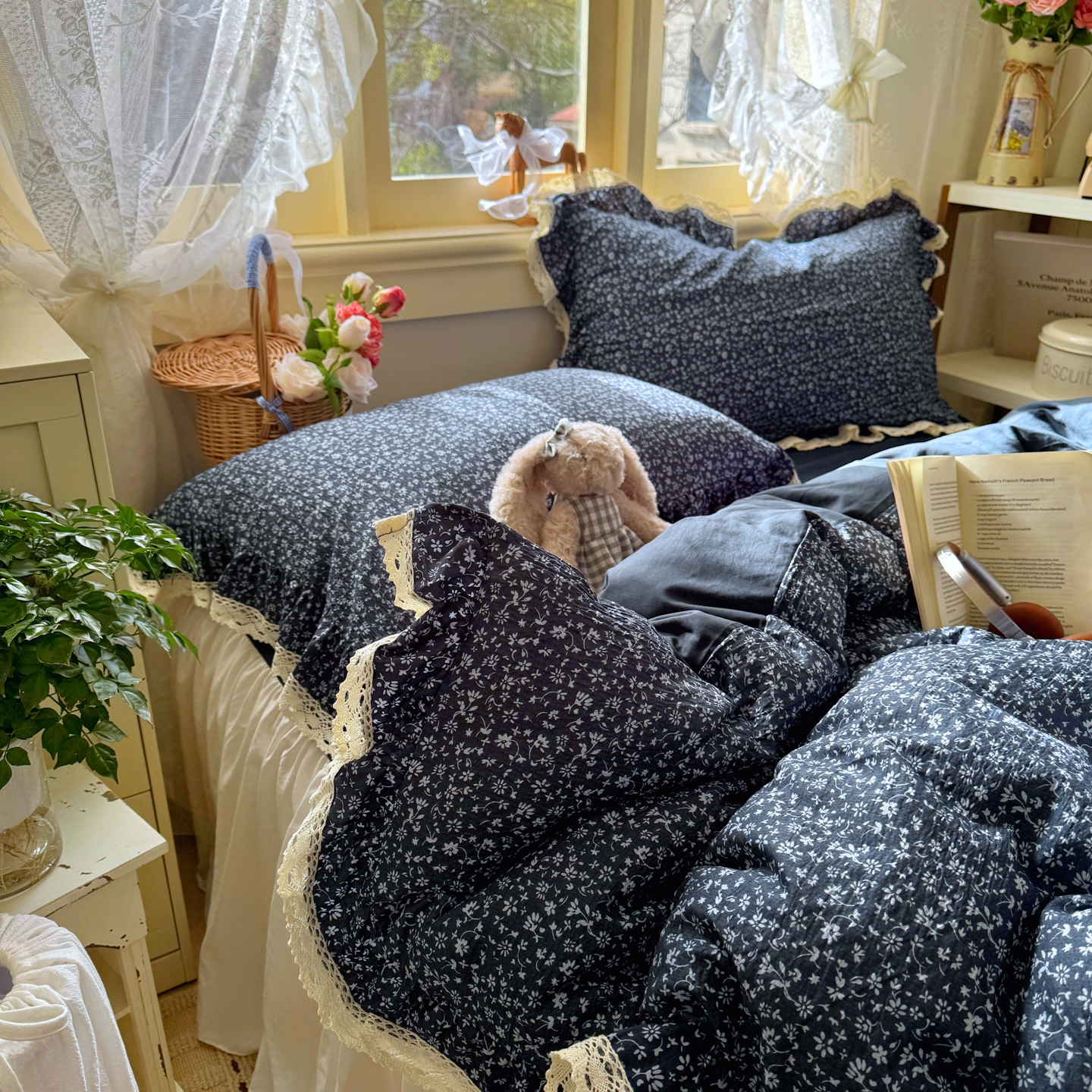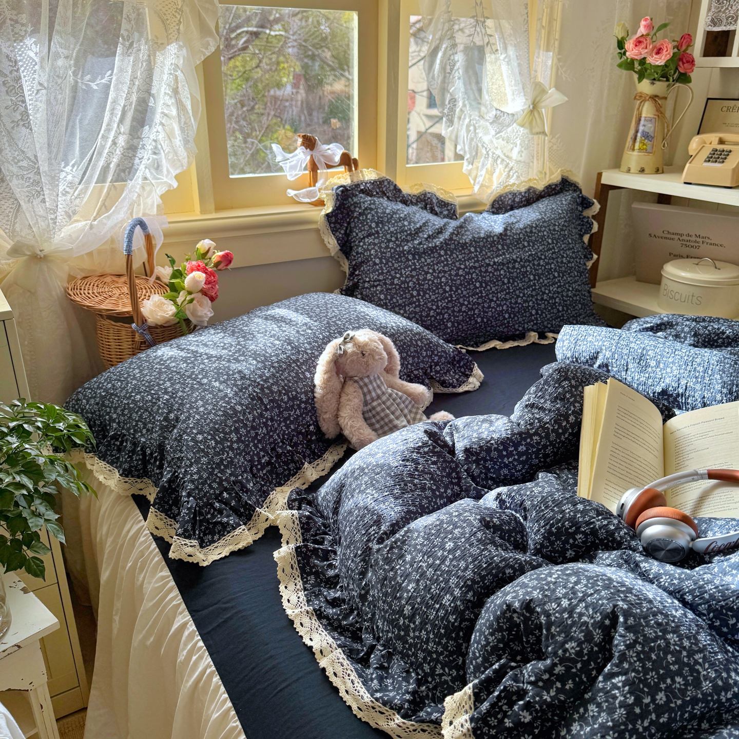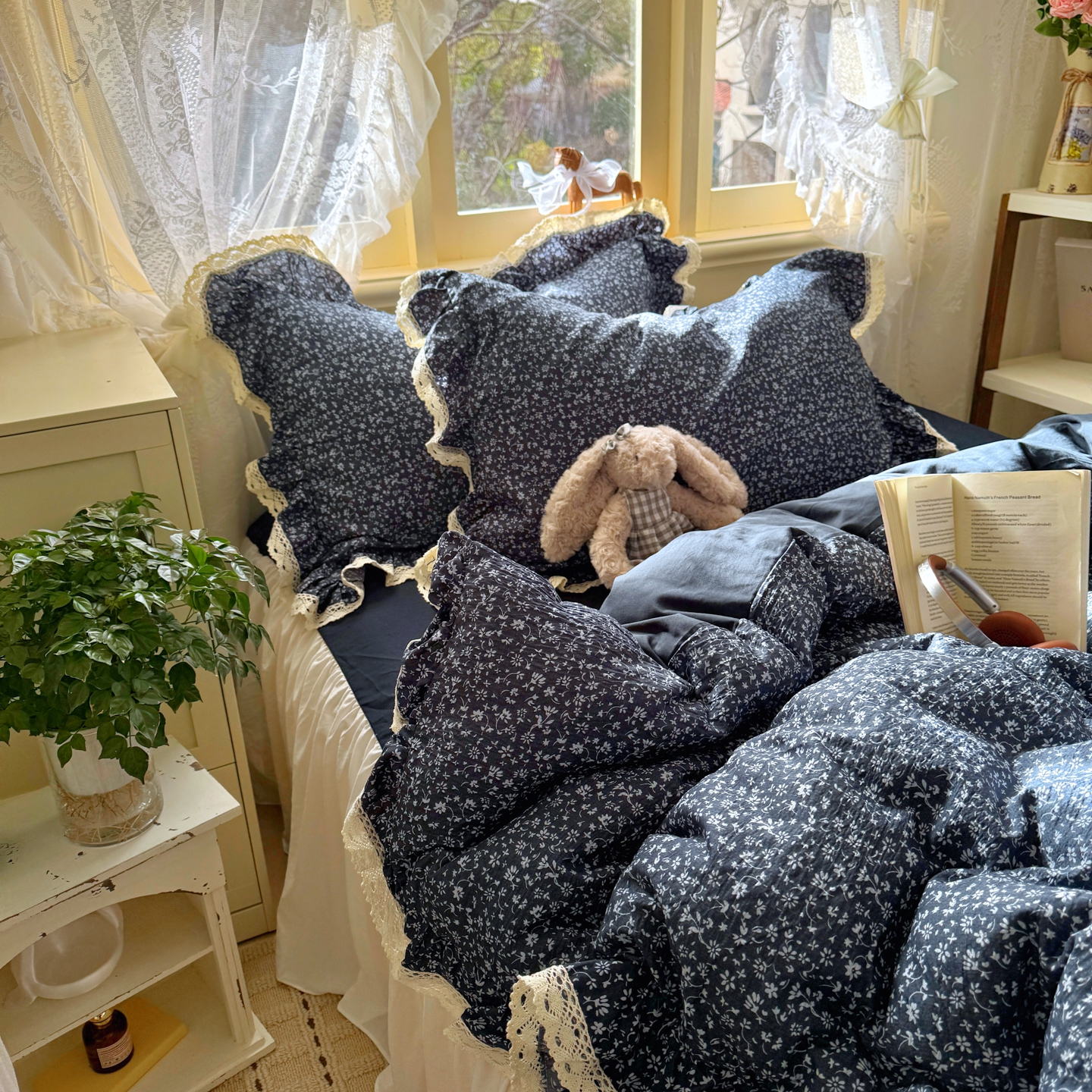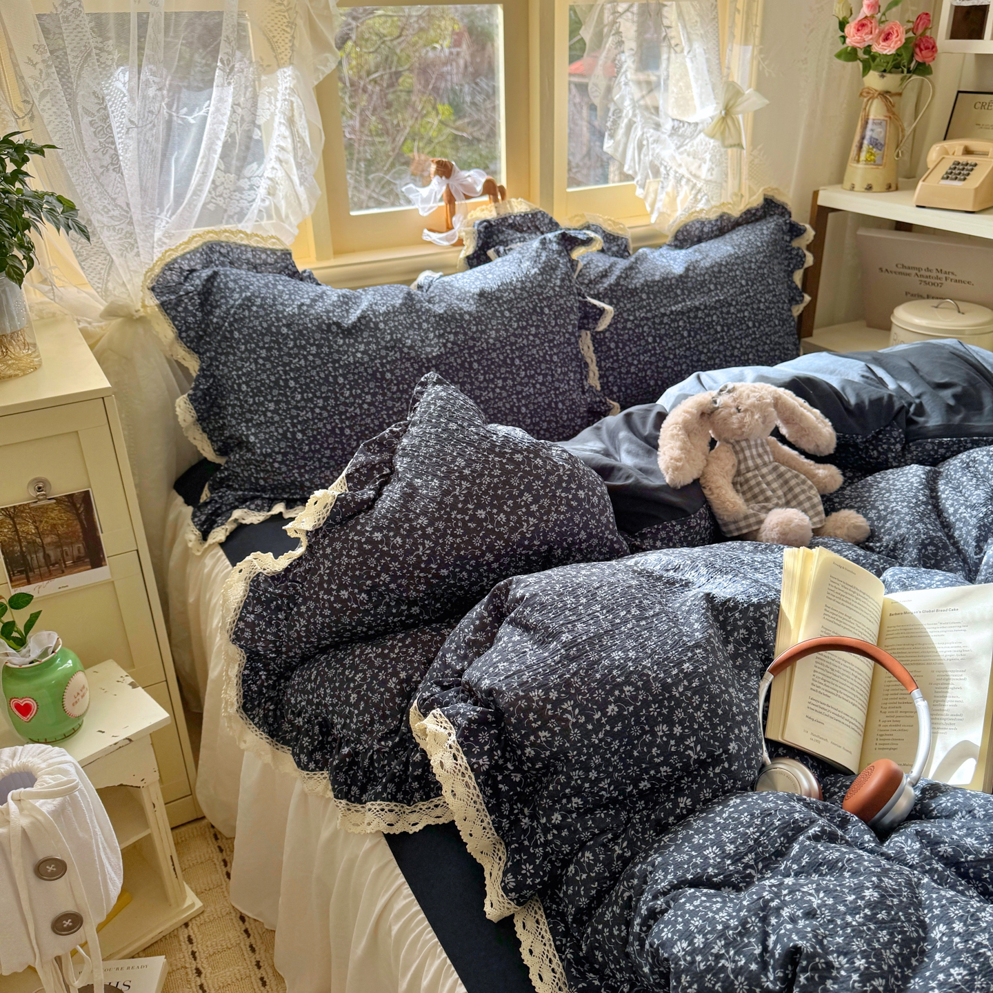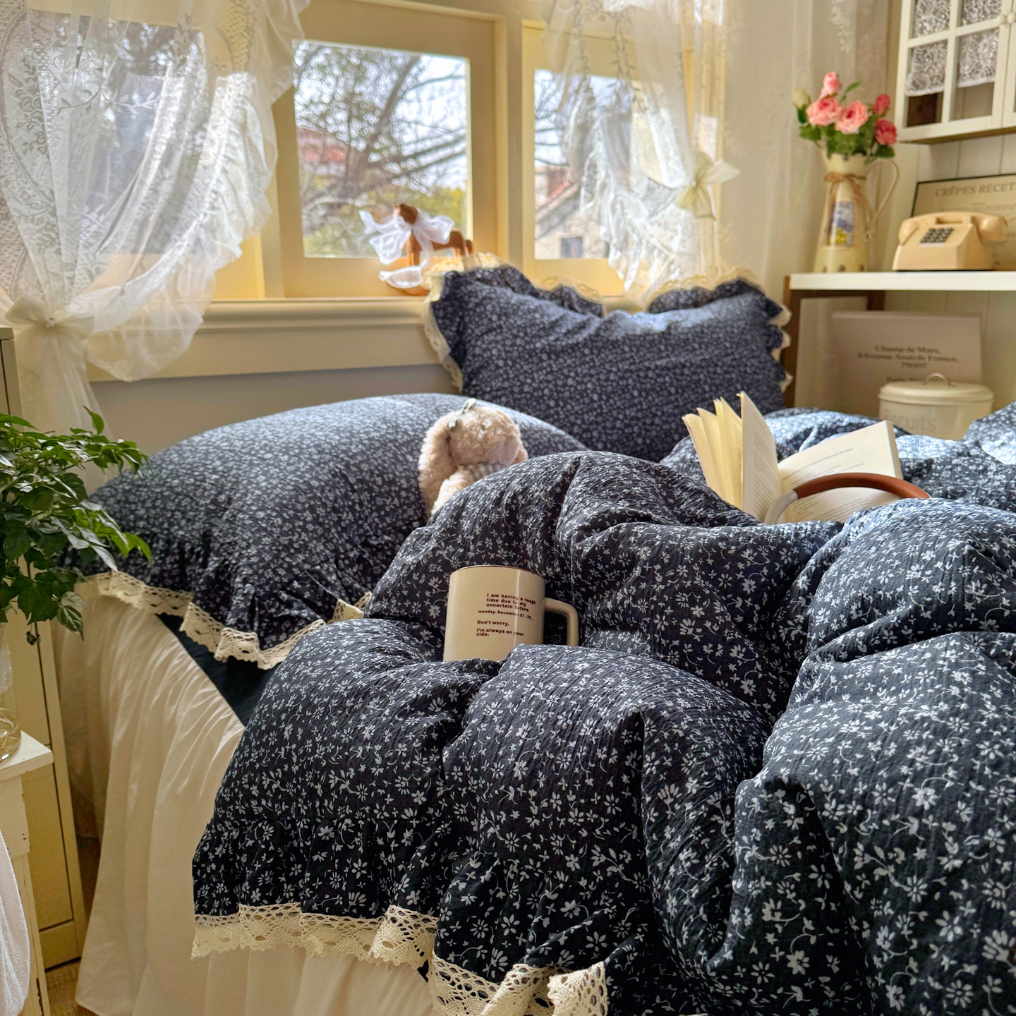 (总)阿曼达 2025新款韩系法式慵懒氛围感印花泡芙花边四件套(专版花型),樱花泡芙-黑,樱花泡芙-红,樱花泡芙-蓝,樱花泡芙-梨漫,樱花泡芙-宅妹粉