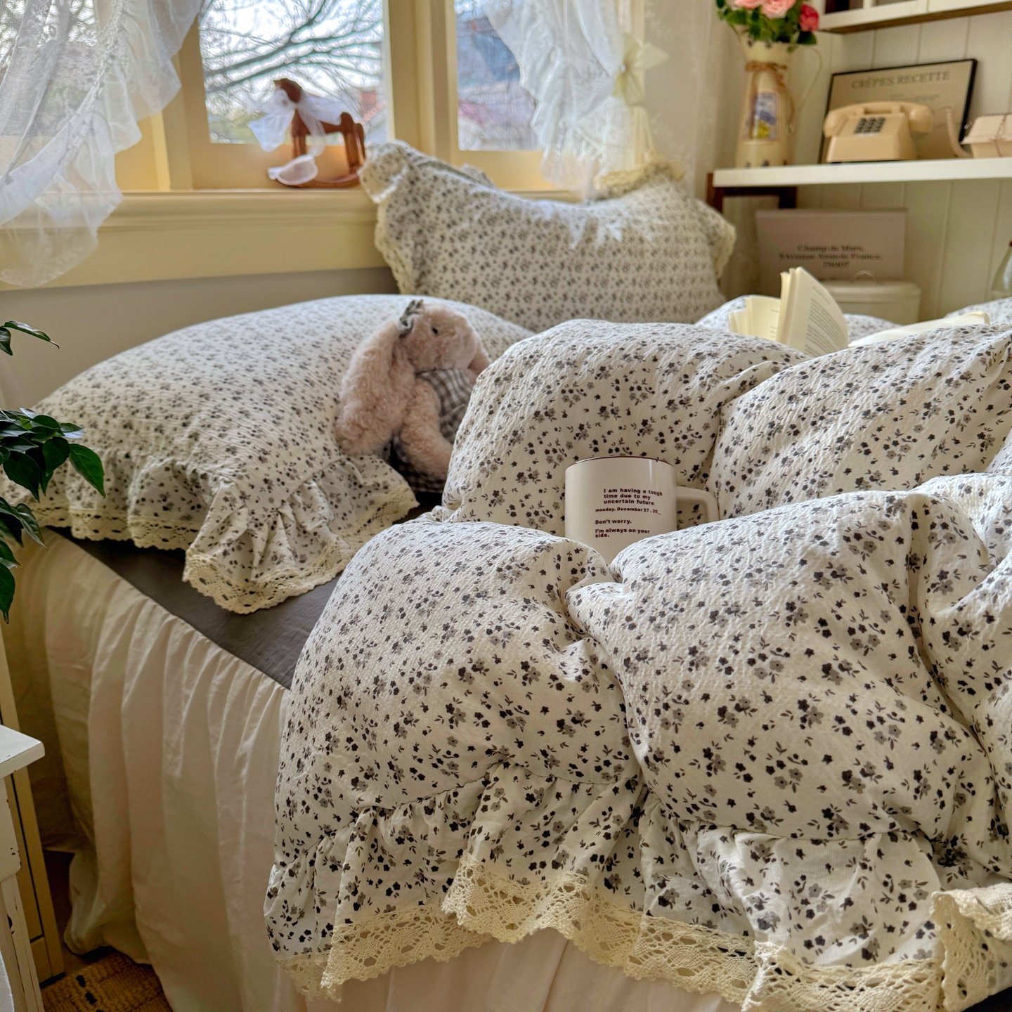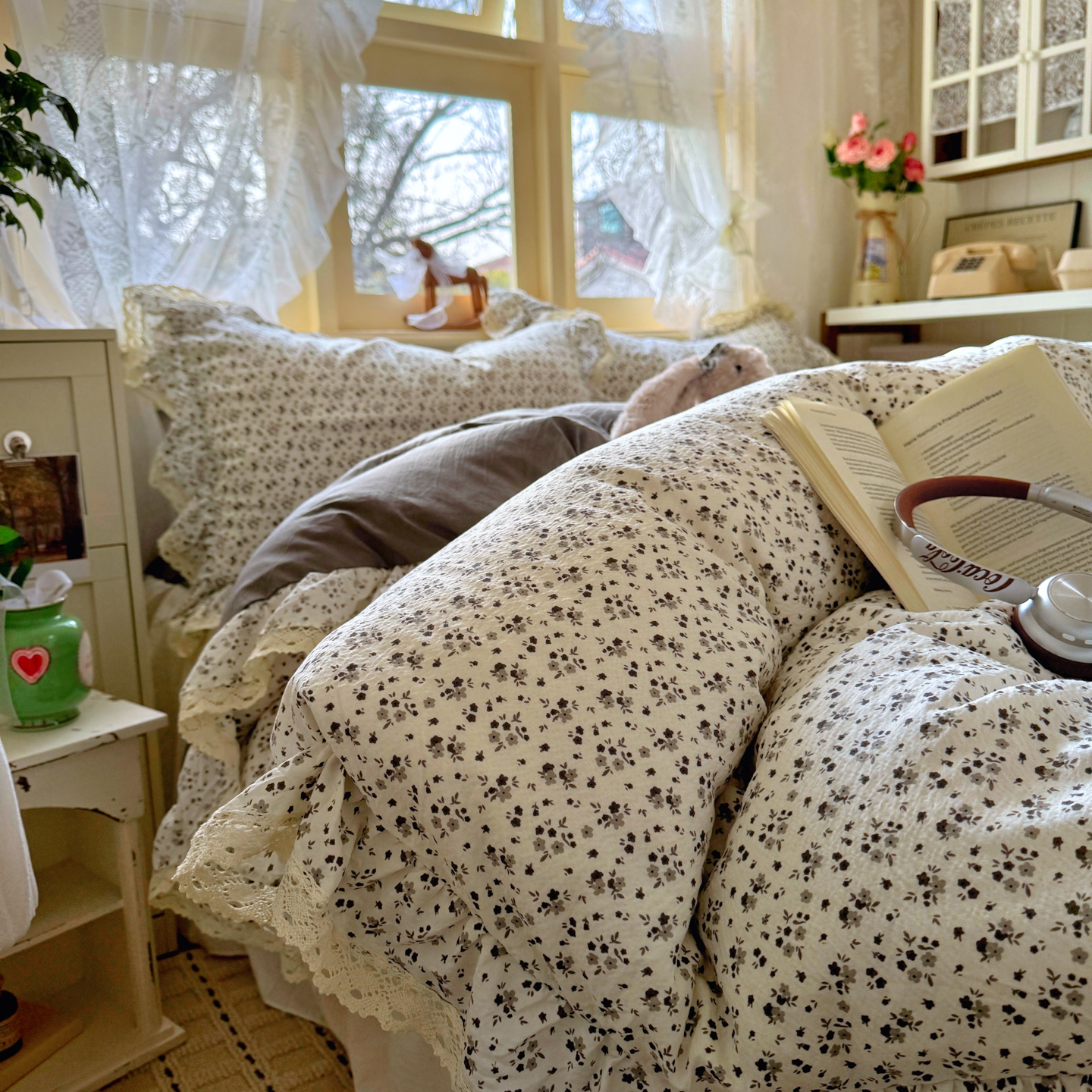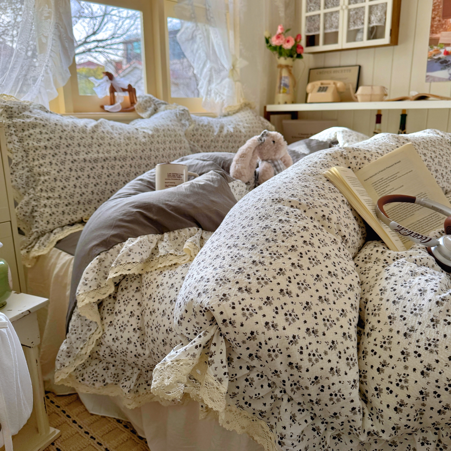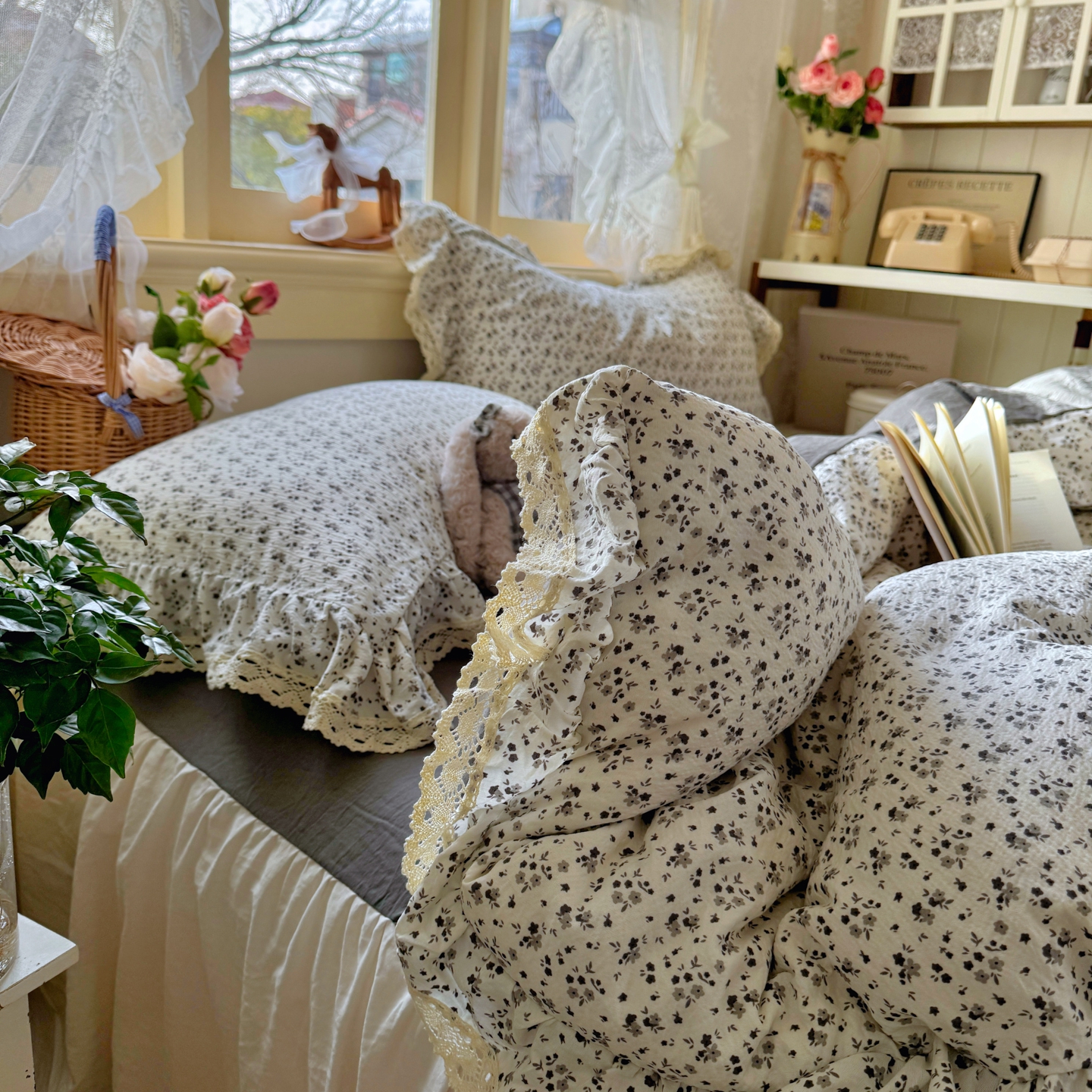 (总)阿曼达 2025新款韩系法式慵懒氛围感印花泡芙花边四件套(专版花型),樱花泡芙-黑,樱花泡芙-红,樱花泡芙-蓝,樱花泡芙-梨漫,樱花泡芙-宅妹粉