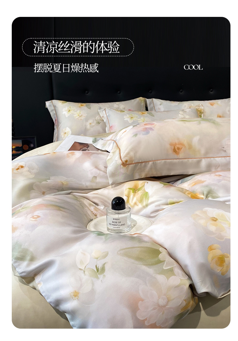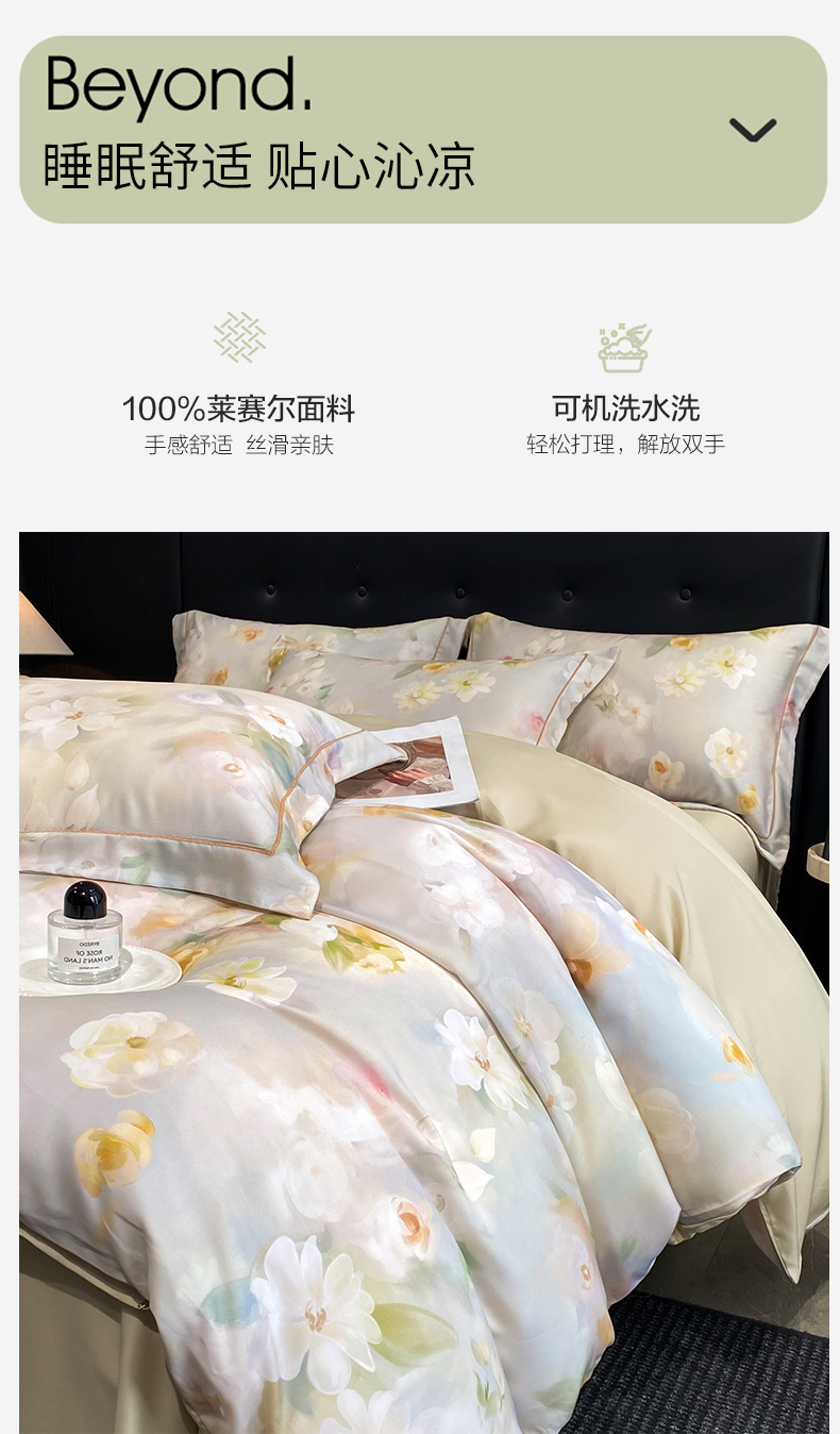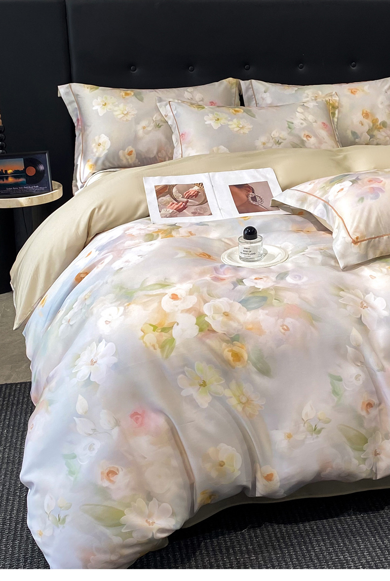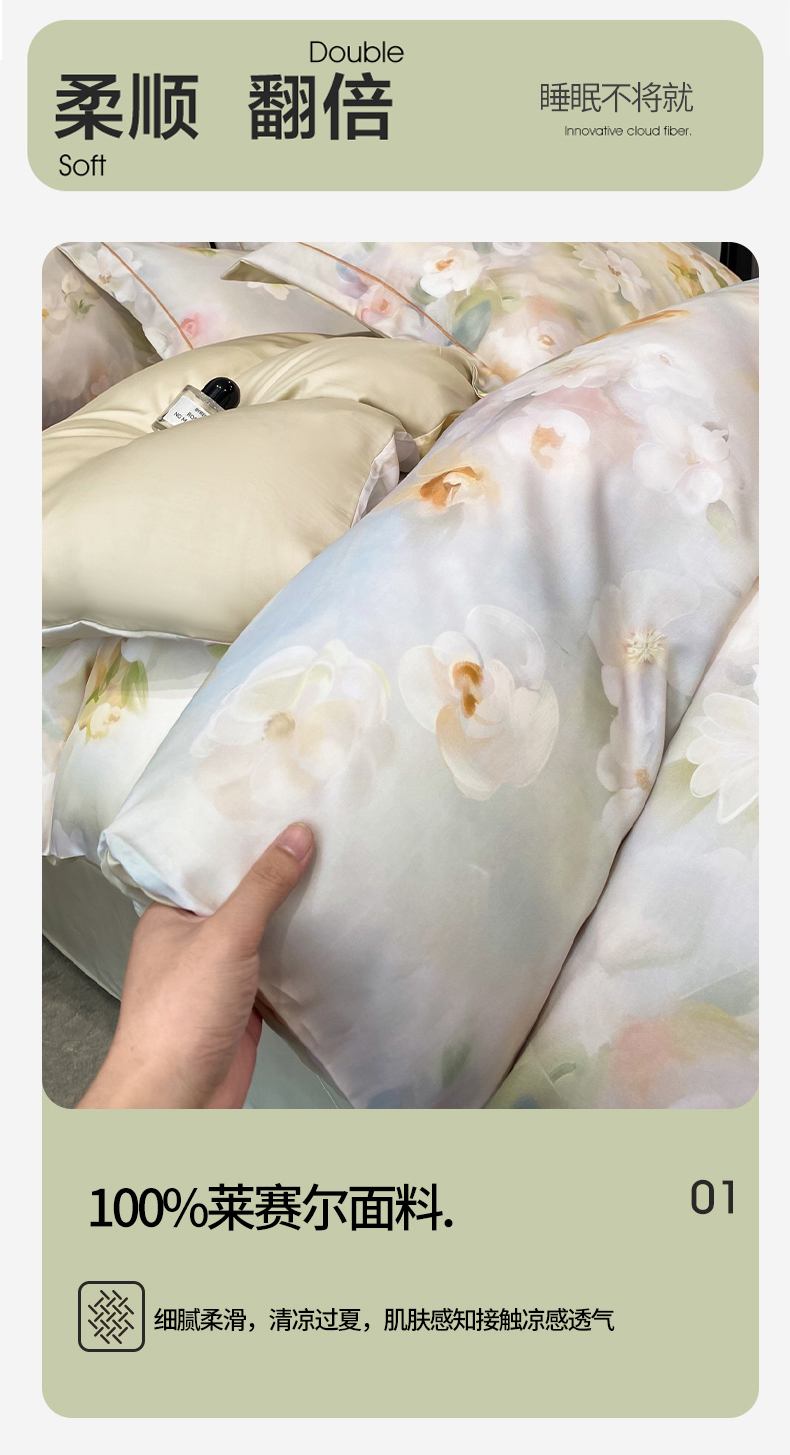 (总)启航家居 2026新款春夏天丝莱赛尔数码印花四件套,花颜外兰,半纸叶灰,池禾韵兰,春溢然兰,春溢然绿,花颜外粉,花园派对沙色,梦境之翼兰,梦境之翼绿,烟花间粉,烟花间绿,樱岛春漫粉,云间素语绿,云间素语紫,早春的树蓝,早春的树紫,栀花语粉,紫陌紫