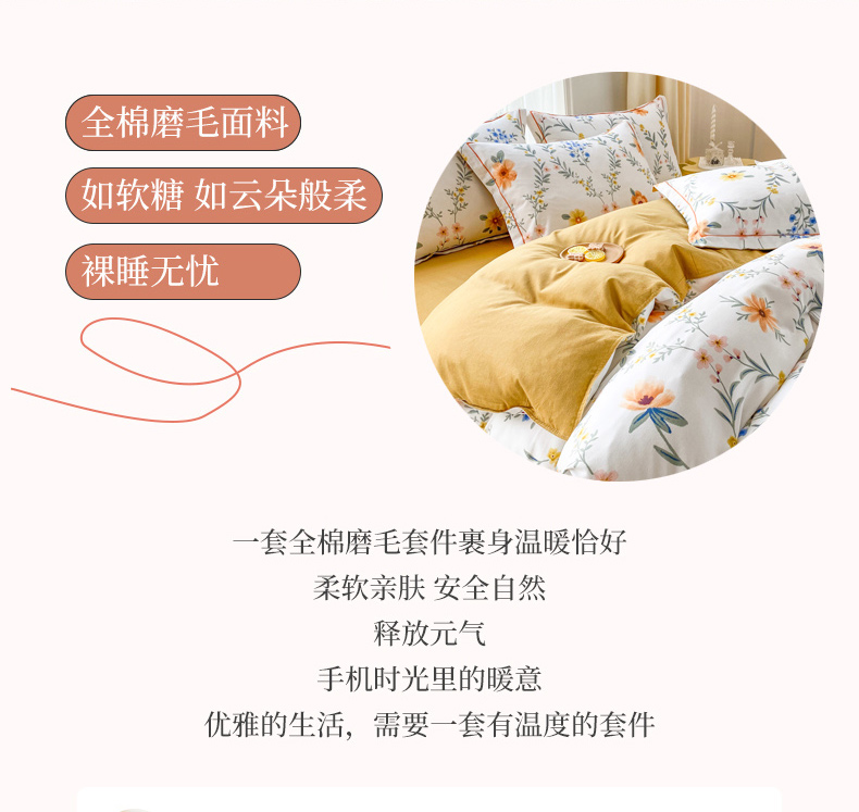 当前位置: 91家纺网 > 商品网购 > 床品套件 > 四件套 > 全棉普通四件套 > 缘舒家纺 2025新款全棉纯棉磨毛加厚四件套 潮青春-桔