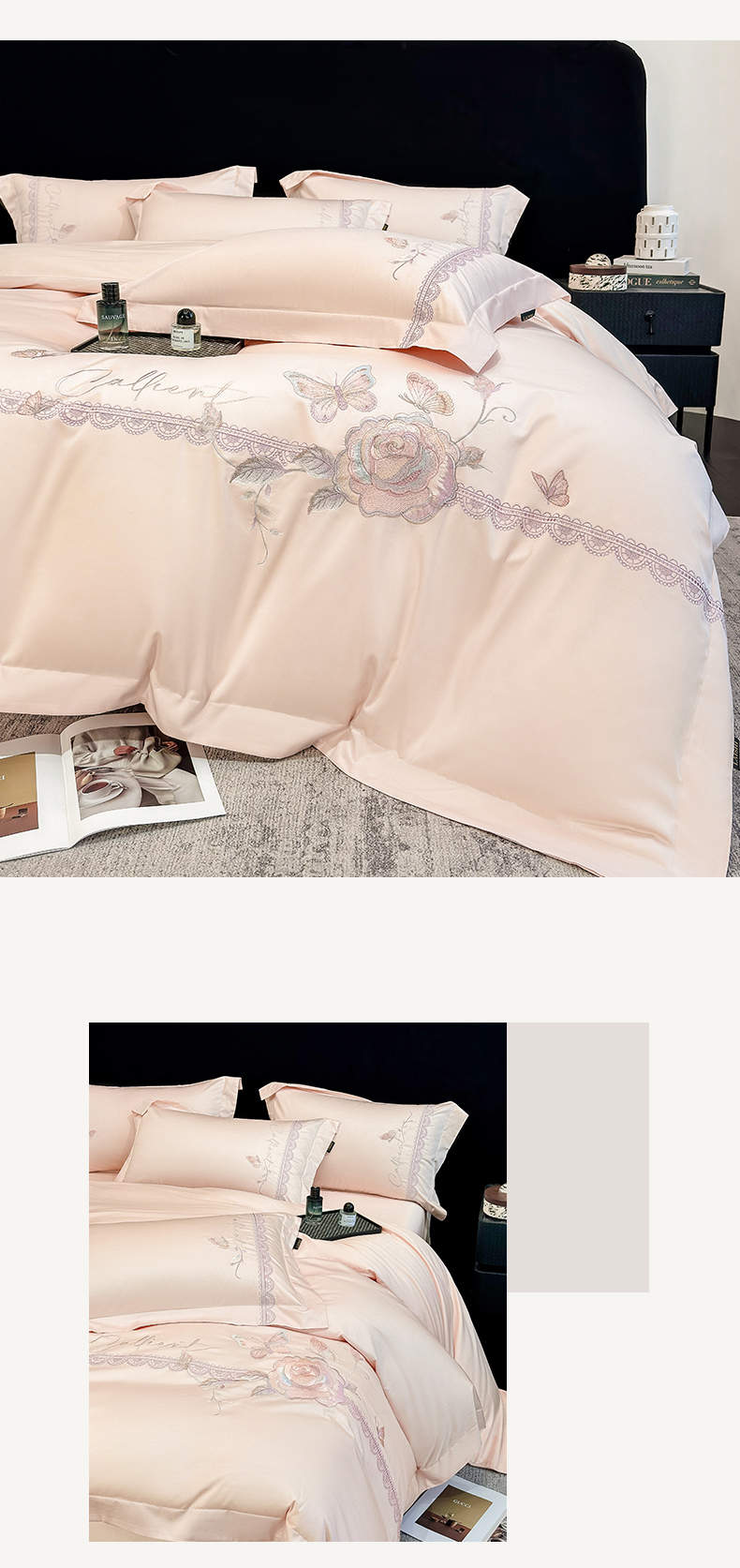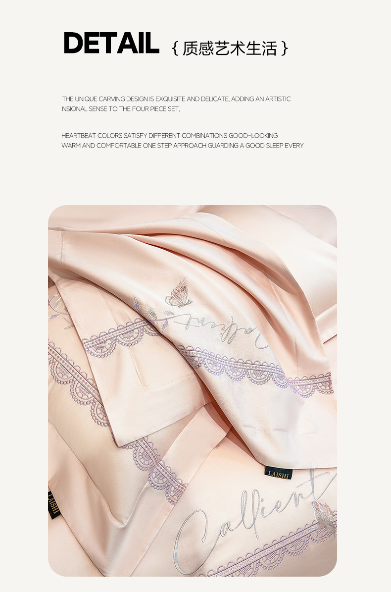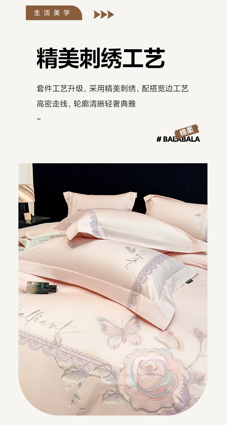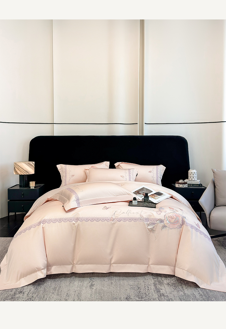 当前位置: 91家纺网 > 商品网购 > 床品套件 > 四件套 > 长绒棉四件套 > 欣宜家纺 2026新款100支贡缎长绒棉纯棉无纸刺绣软绣花四件套高端礼盒-蝶曼影 蝶曼影-轻奢粉