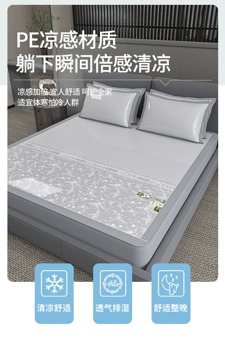 (总)小牛席业 2026新款半定位大提花凉感冰丝席(床笠款)凉席竹席藤席冰藤席乳胶席豆豆席,灰色,粉色,蓝色,香槟