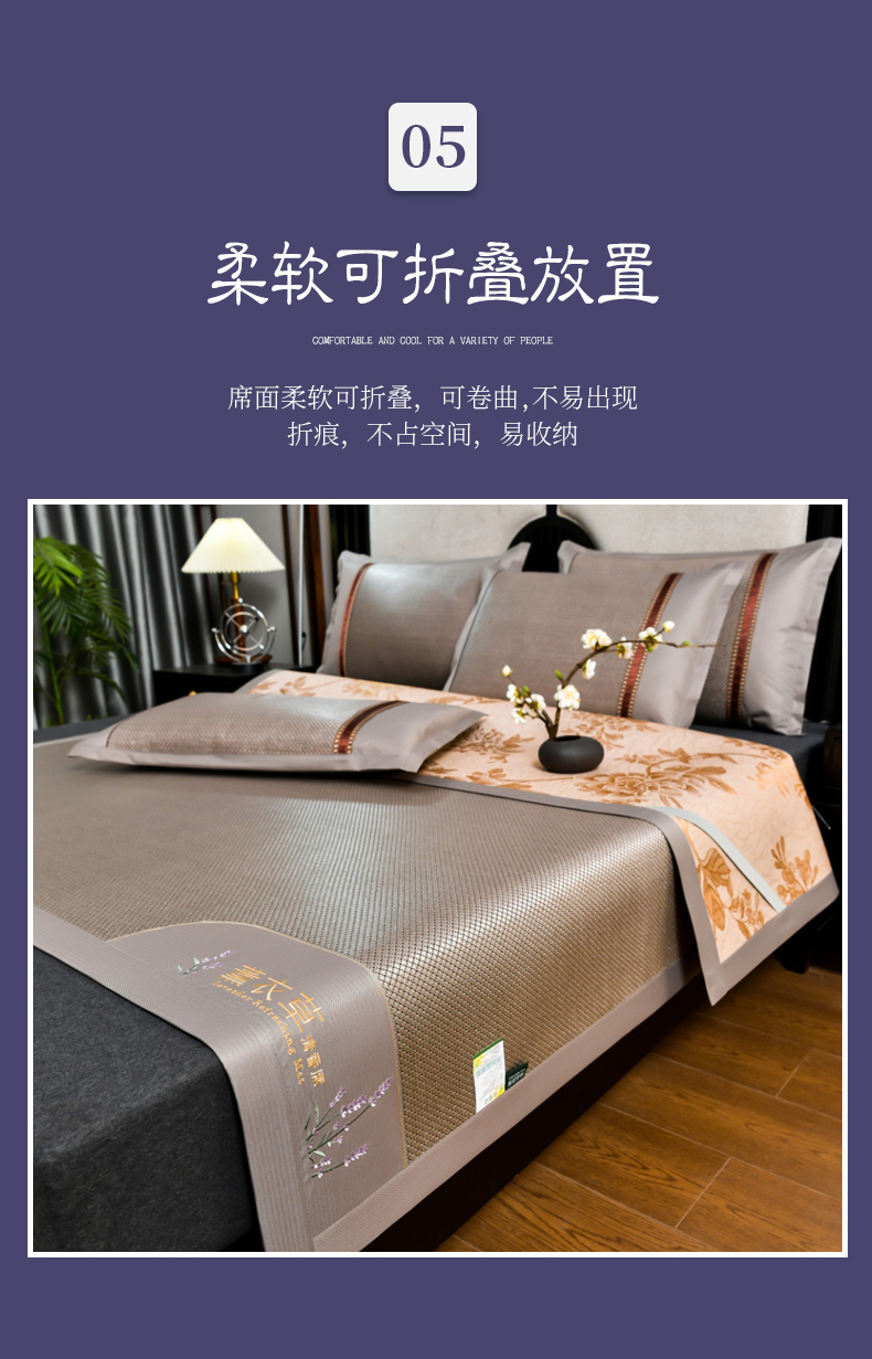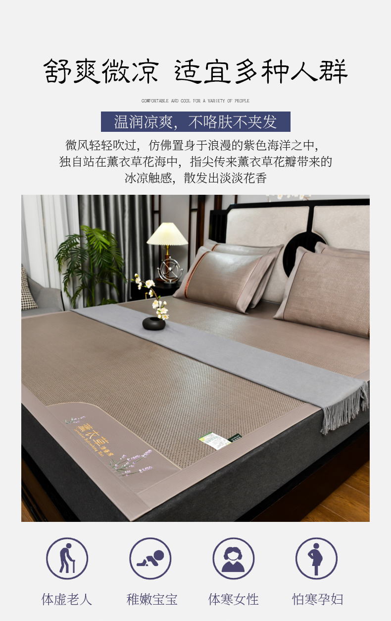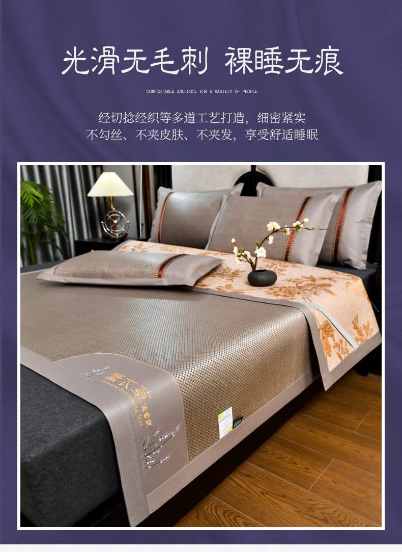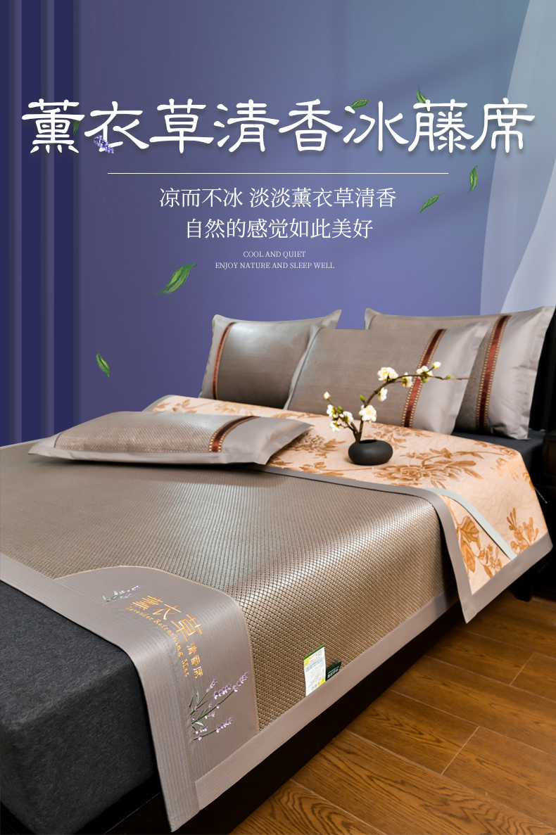 • 91家纺网 家纺一手货源 找家纺 小牛席业 2026新款薰衣草冰藤席系列(冰藤席面)凉席藤席冰藤双面席冰丝席竹席凉席空调席草席三件套 薰衣草清香冰藤席-香槟