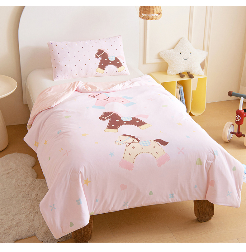 御棉坊 御棉坊2026萌趣A类凉感幼儿园夏凉被宝宝午睡薄被子儿童空调被夏被 木马乐园-粉