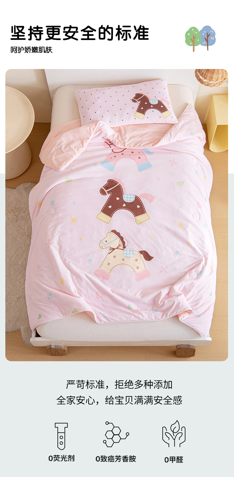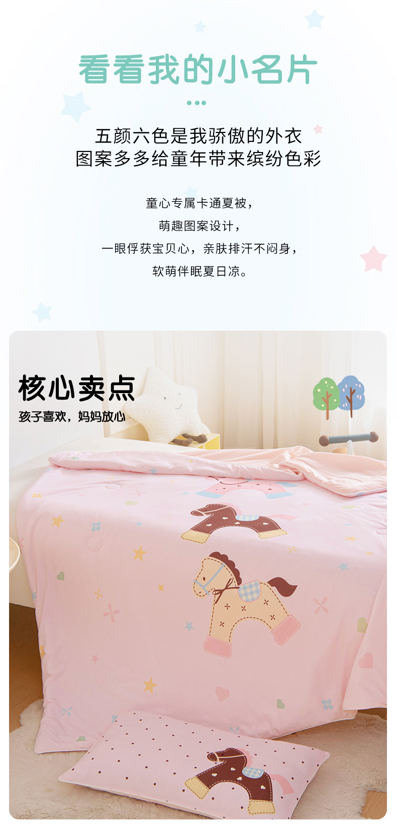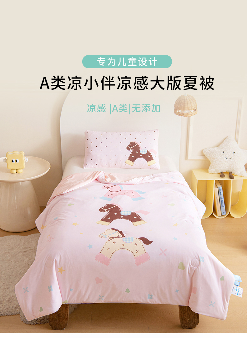 商品名称:御棉坊 御棉坊2026萌趣A类凉感幼儿园夏凉被宝宝午睡薄被子儿童空调被夏被 木马乐园-粉