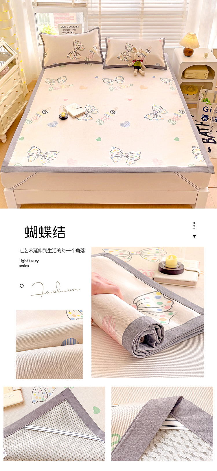 商品名称:金盛纺 2025新款A类数码印花冰丝席-床席款蝴蝶结-床席款