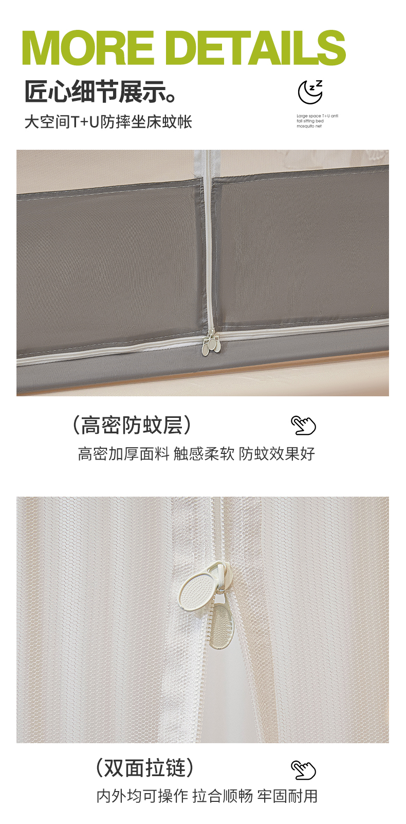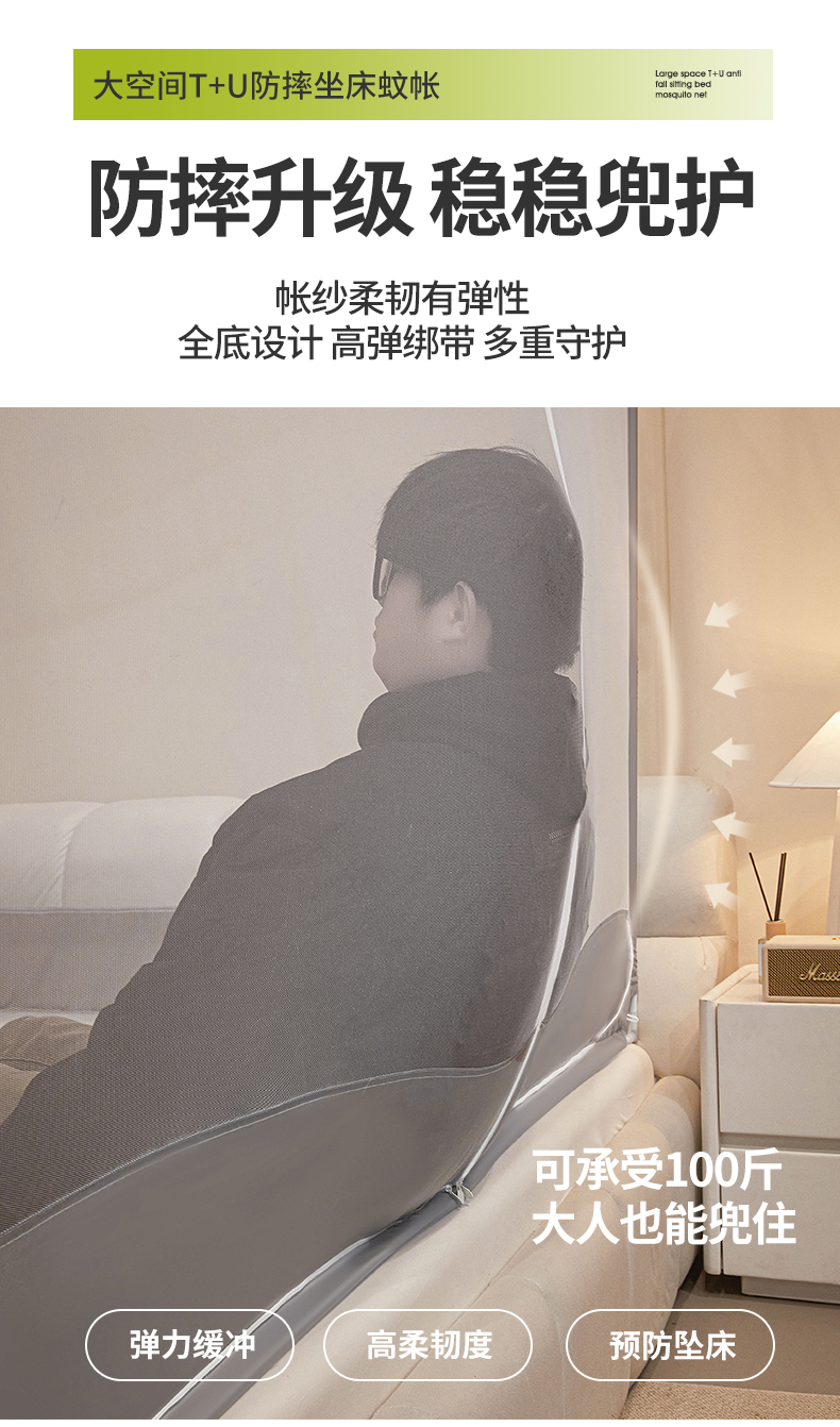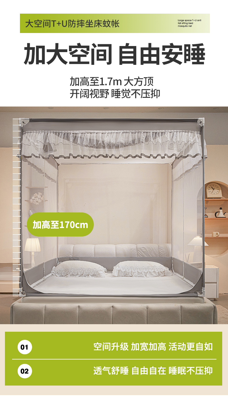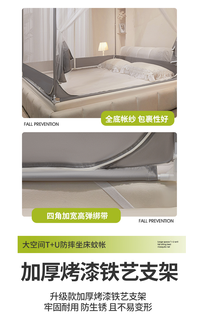 (总)梵希良品家纺 2026新款全底家用卧室坐床加密加厚支架全包围加粗大空间T+U防摔坐床蚊帐-漫语,漫语 果绿,漫语 简灰,漫语 卡其,漫语 柔粉