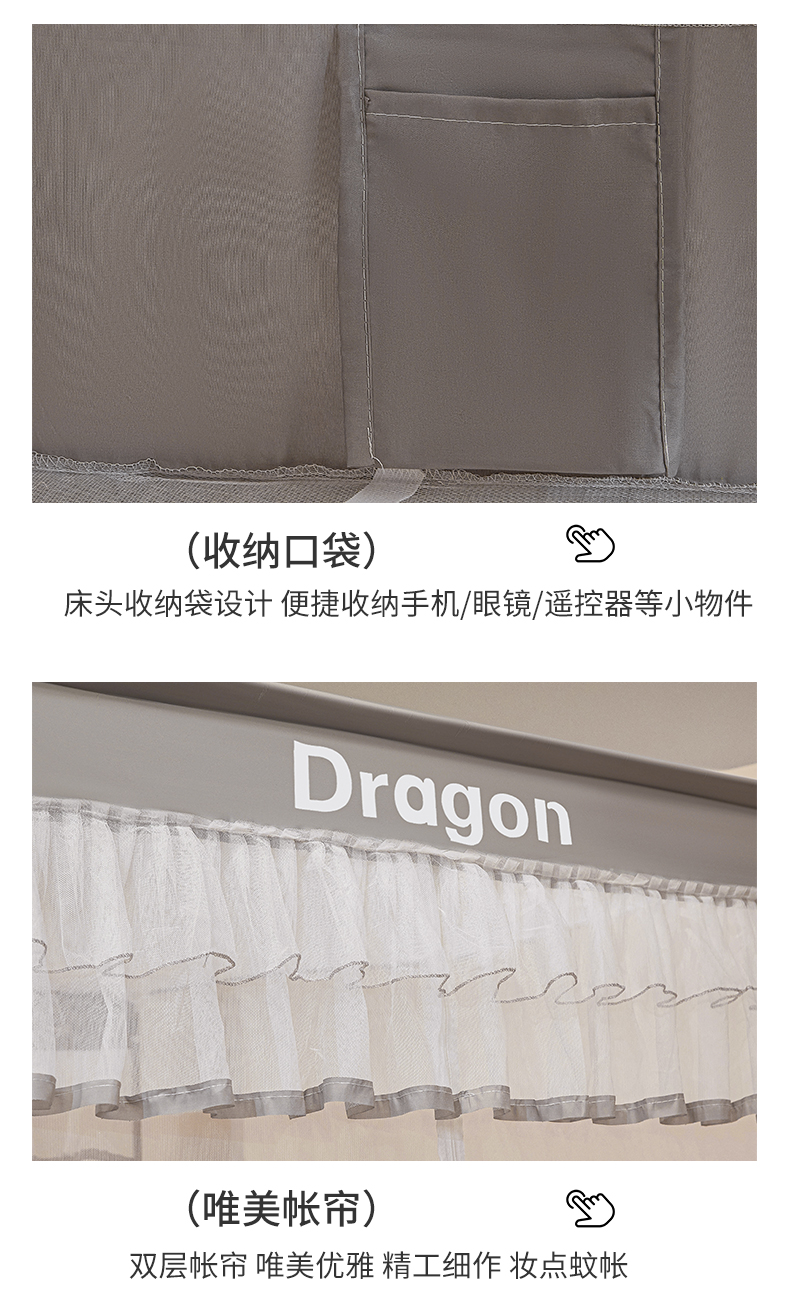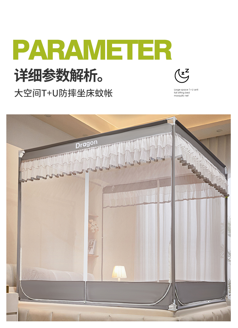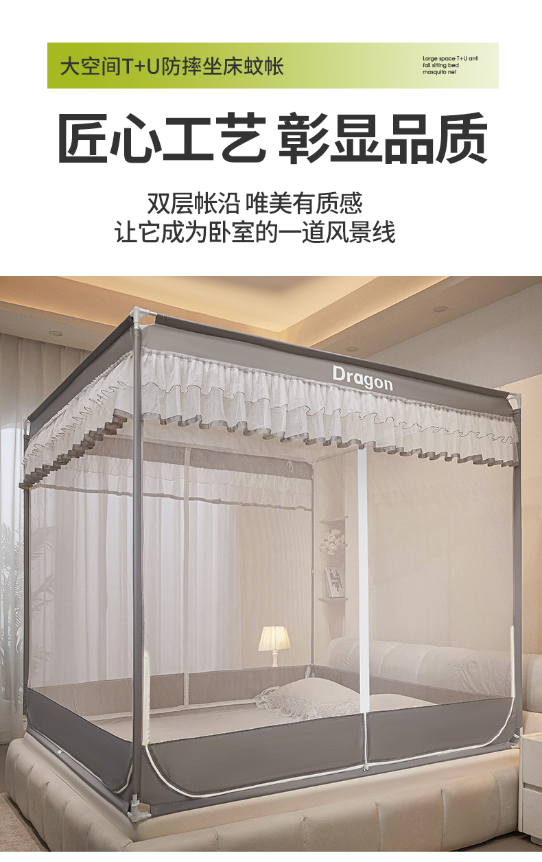 商品名称:梵希良品家纺 2026新款全底家用卧室坐床加密加厚支架全包围加粗大空间T+U防摔坐床蚊帐-漫语 漫语 简灰