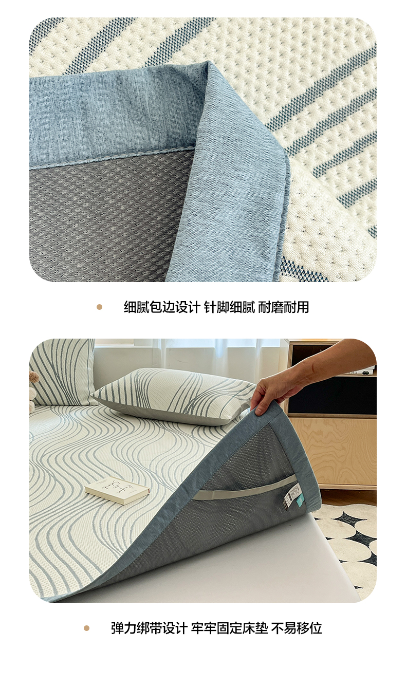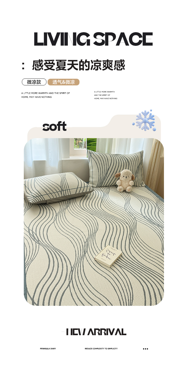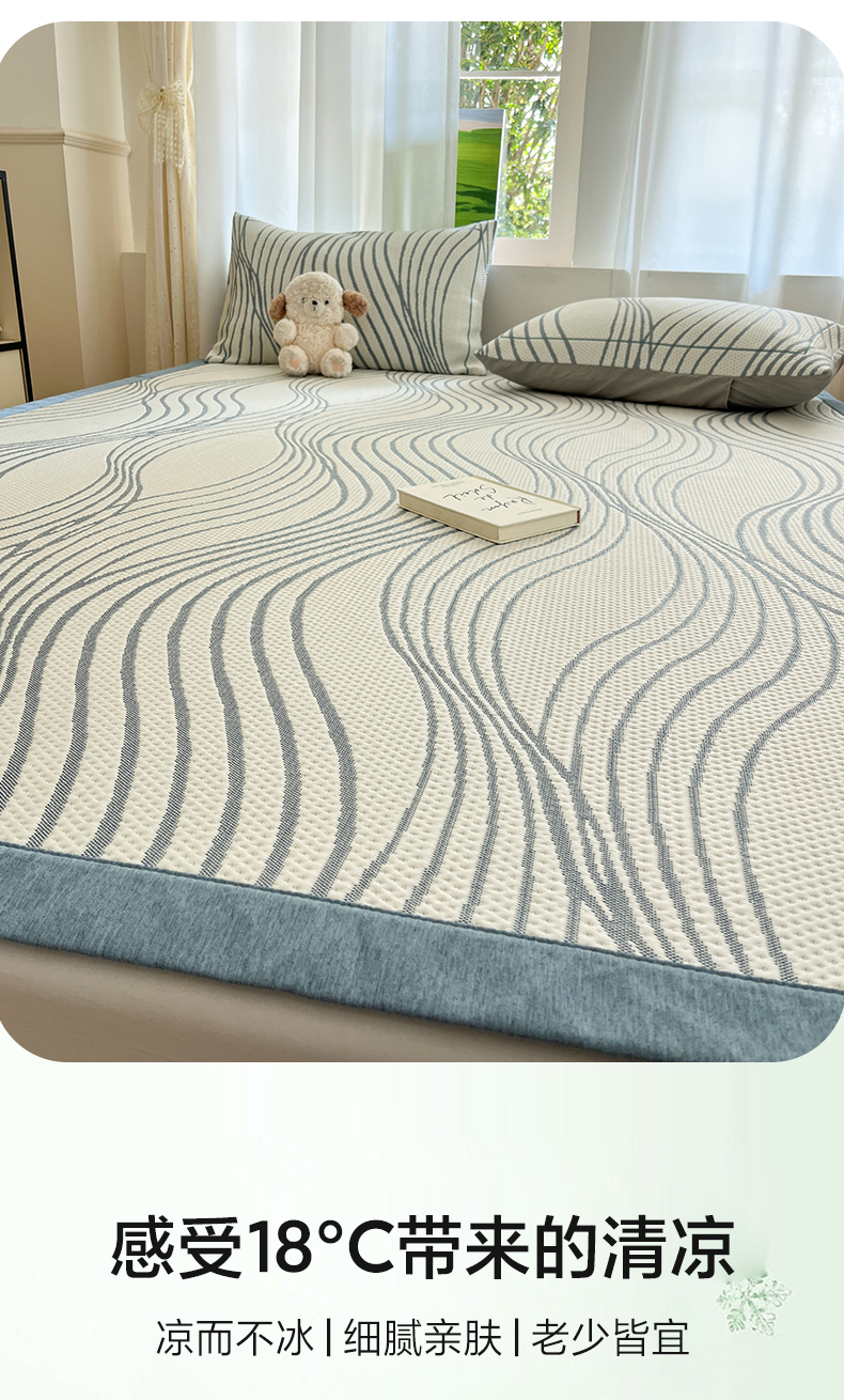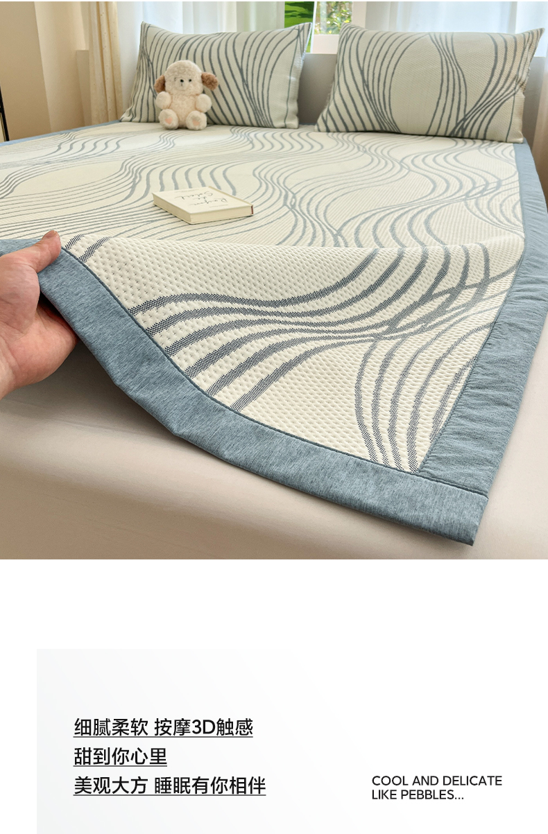 商品名称:雅居纺家纺 2026新款加厚三明治底凉感豆豆简约款凉感席床单款凉席席子 曲线-蓝