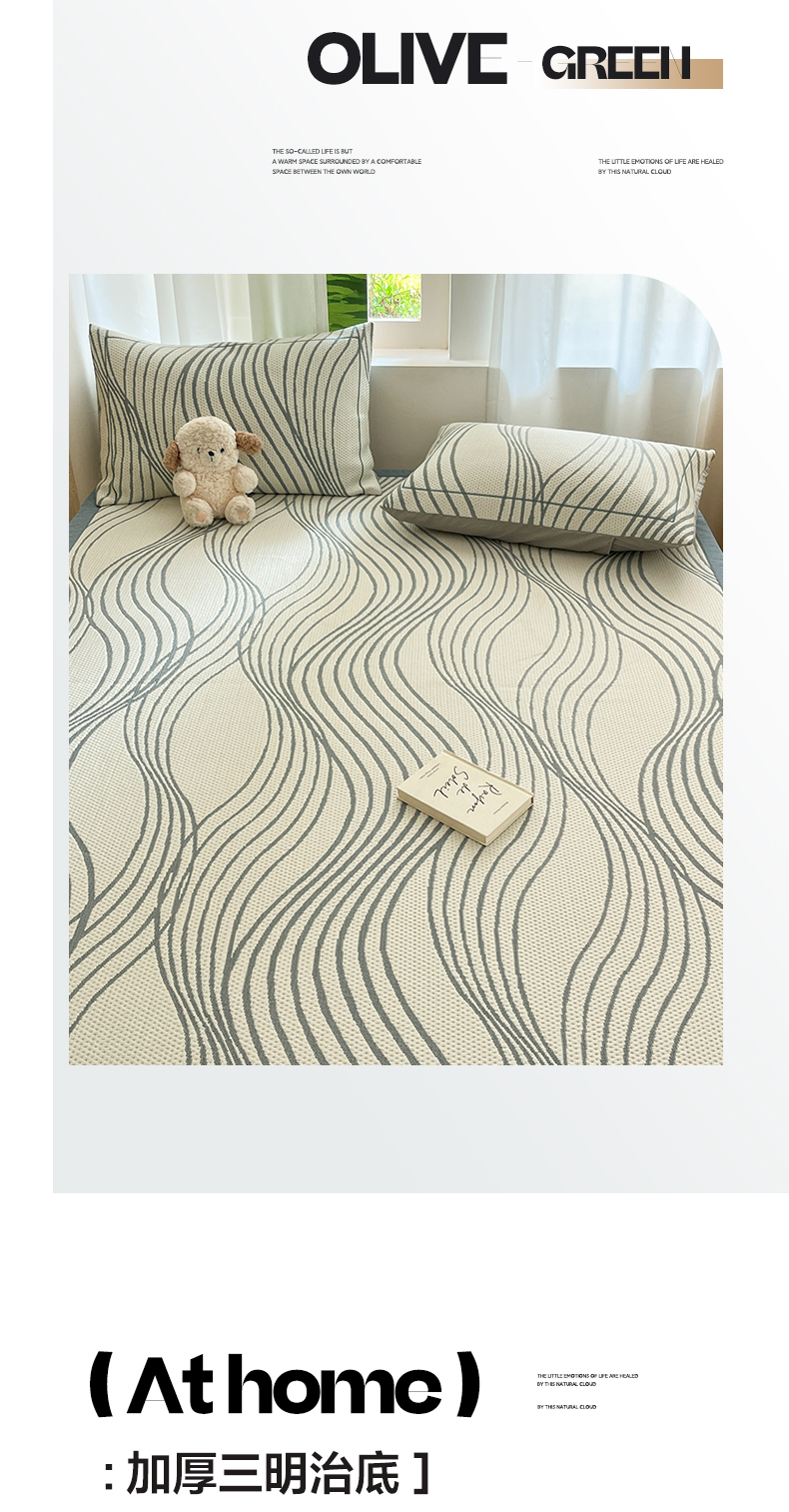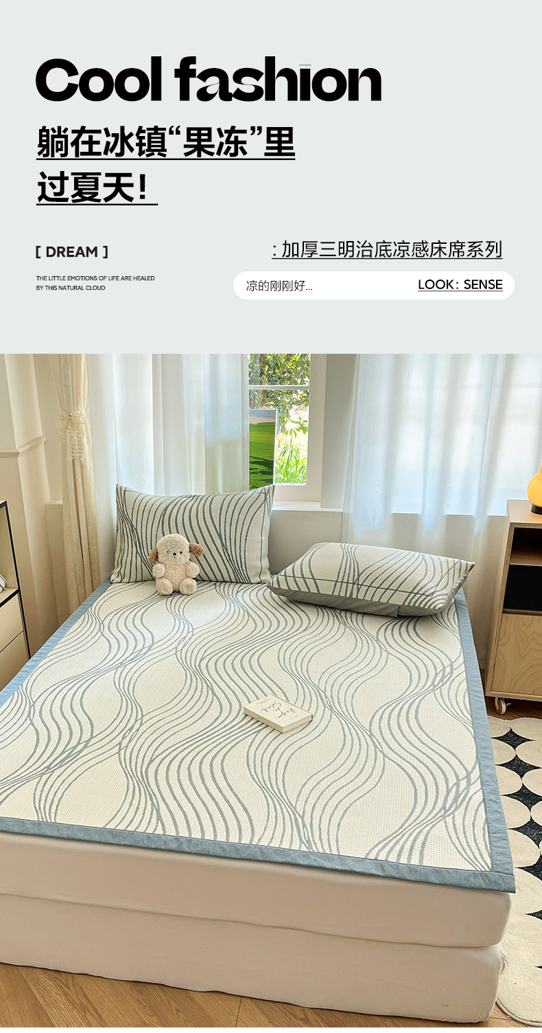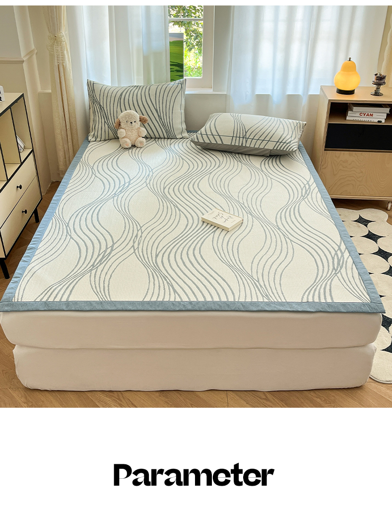 商品名称:雅居纺家纺 2026新款加厚三明治底凉感豆豆简约款凉感席床单款凉席席子 曲线-蓝