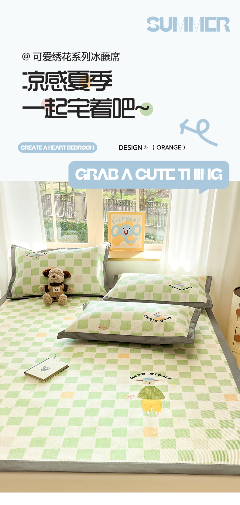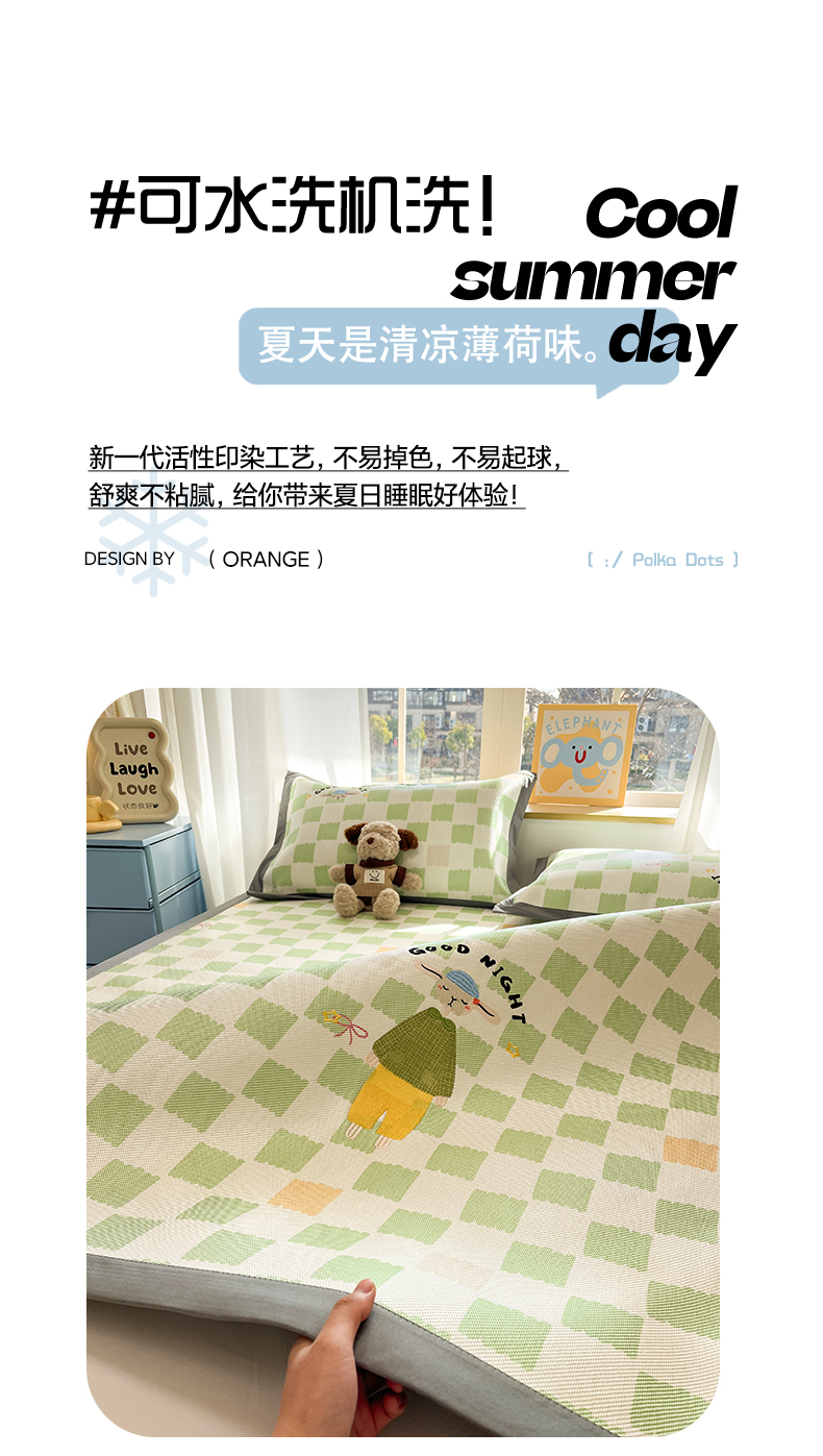 (总)雅居纺家纺 2026新款A类加厚三明治底绣花冰藤席学生宿舍床床单款凉席席子,冰淇淋萌狗,动感小狗,七彩虹,万事不南,小象家族,星星腊肠狗,幸运巴拉