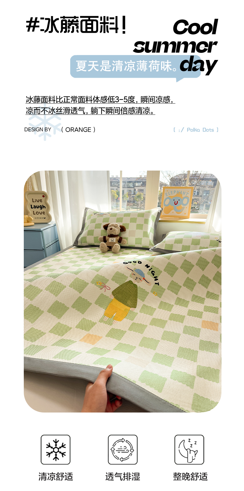 180x200cm平铺款凉席+枕套一对