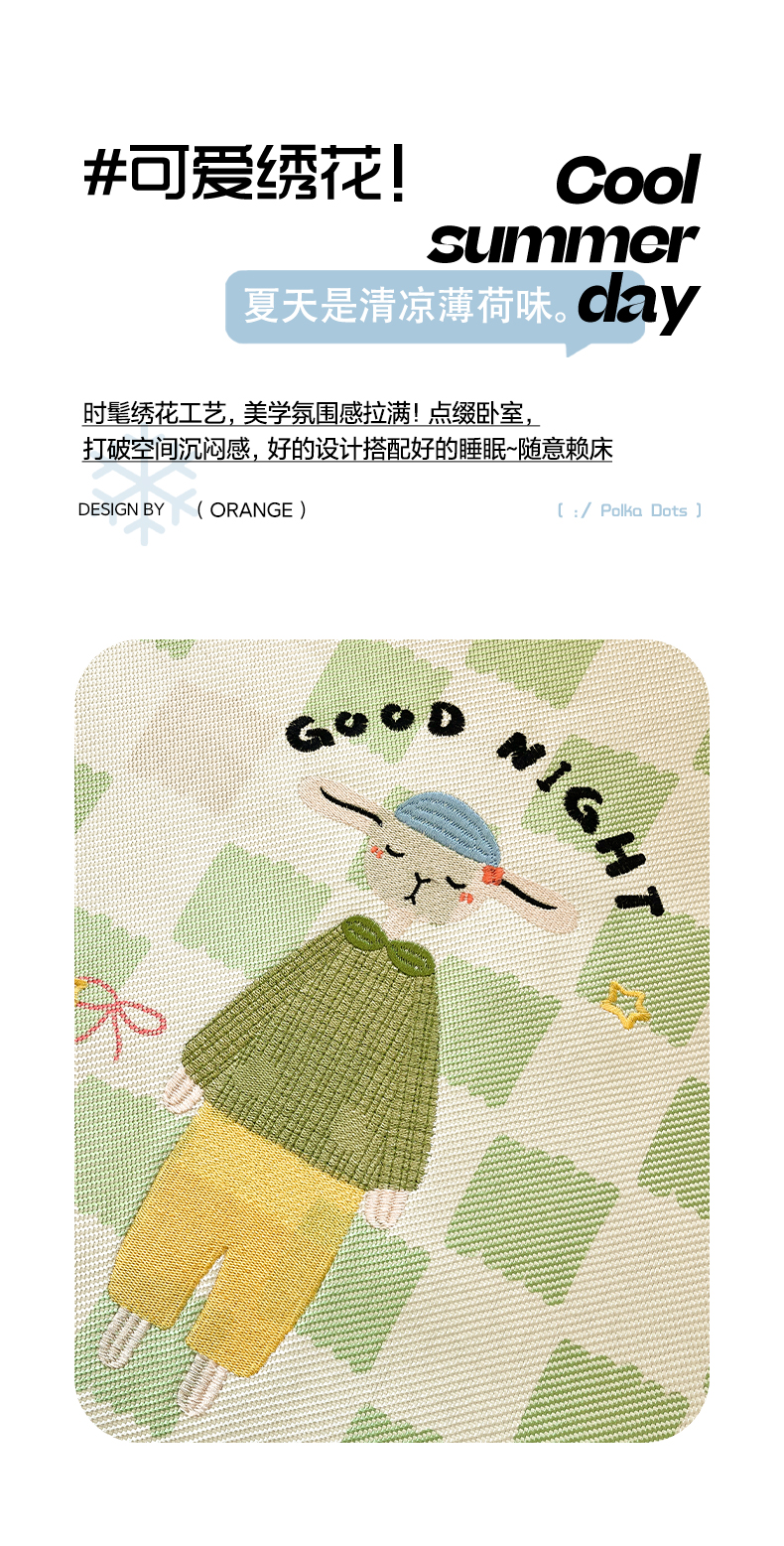 商品名称:雅居纺家纺 2026新款A类加厚三明治底绣花冰藤席床单款凉席席子 晚安猫