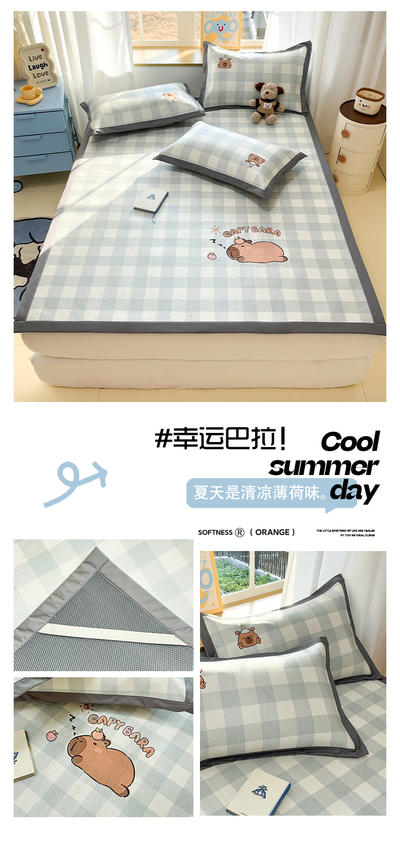 200x220cm平铺款凉席+枕套一对