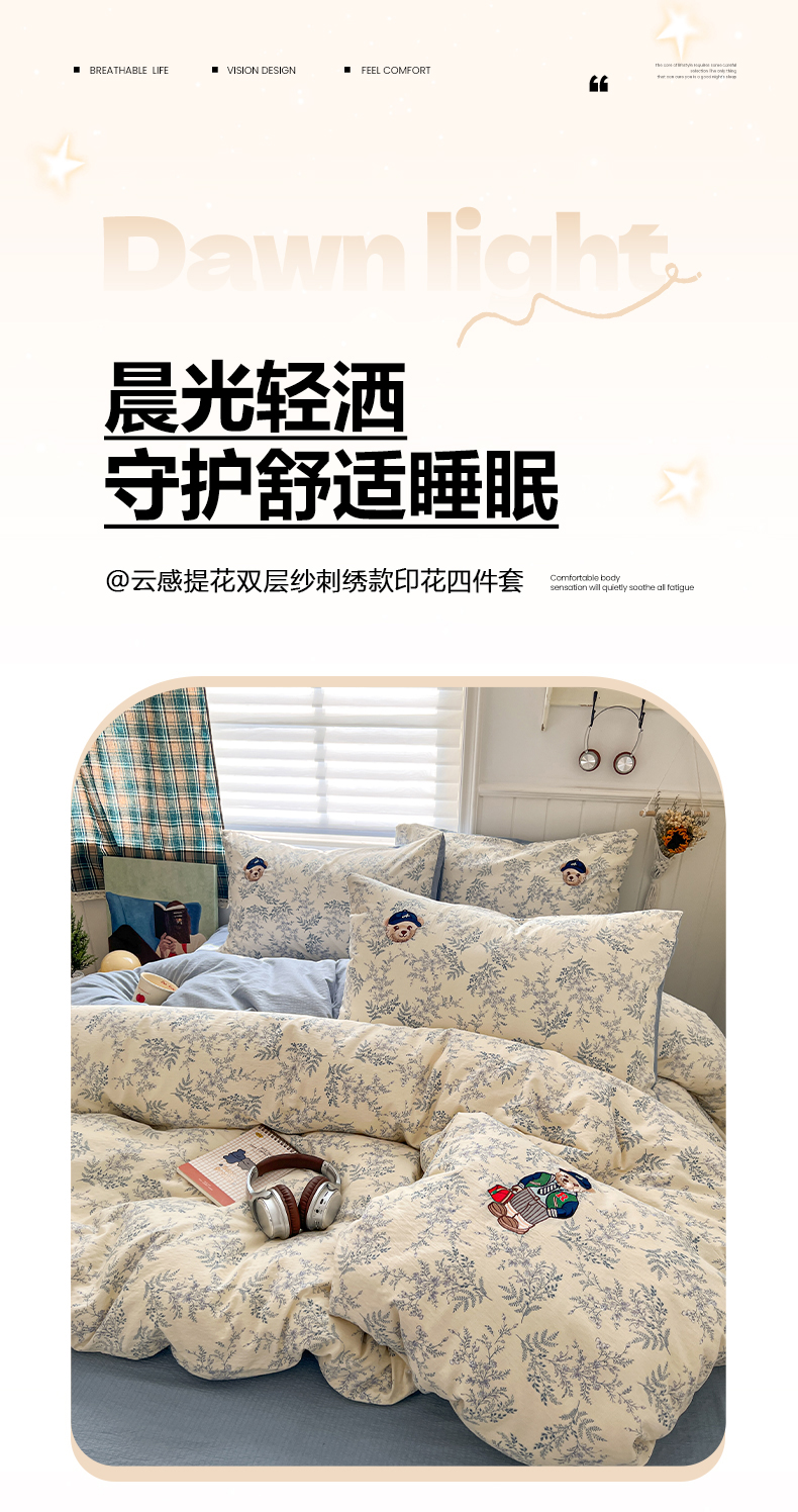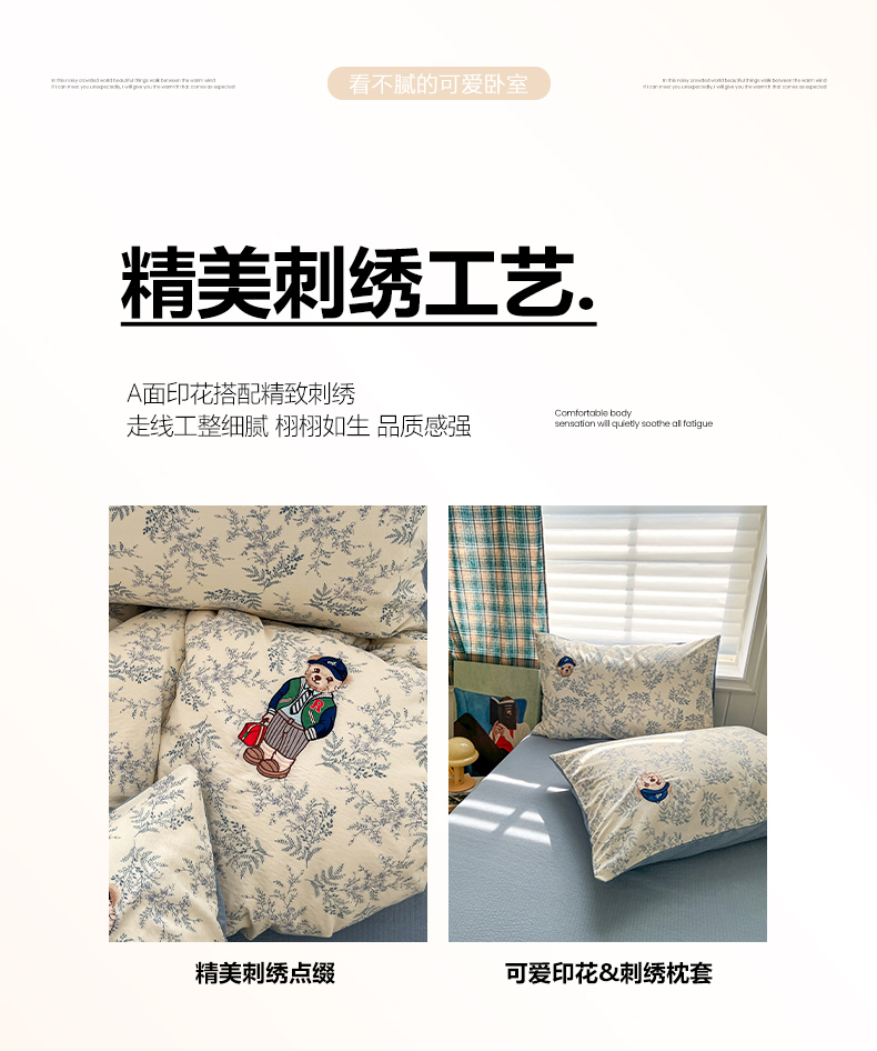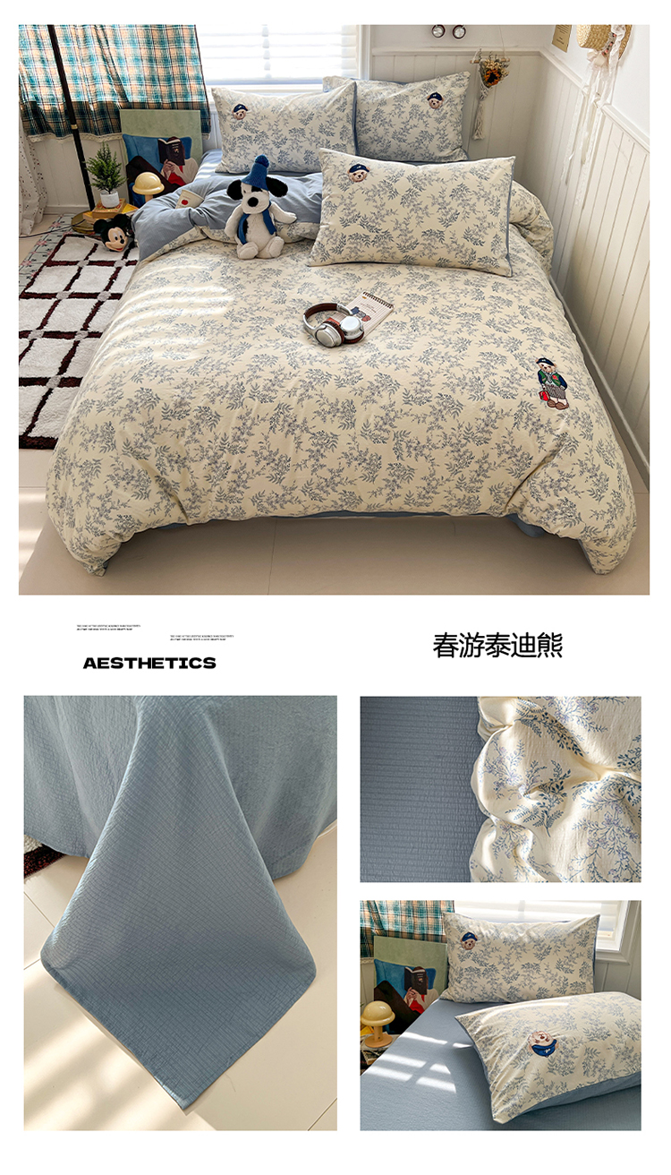 当前位置: 91家纺网 > 商品网购 > 床品套件 > 四件套 > 其它四件套 > 妖妖家纺 2026小清新软糯双层纱刺绣四件套 春游泰迪熊-刺绣