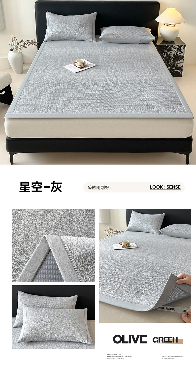 商品名称:雅居纺家纺 2026新款A类加厚三明治底星空提花凉感席床单款凉席席子 星空-灰
