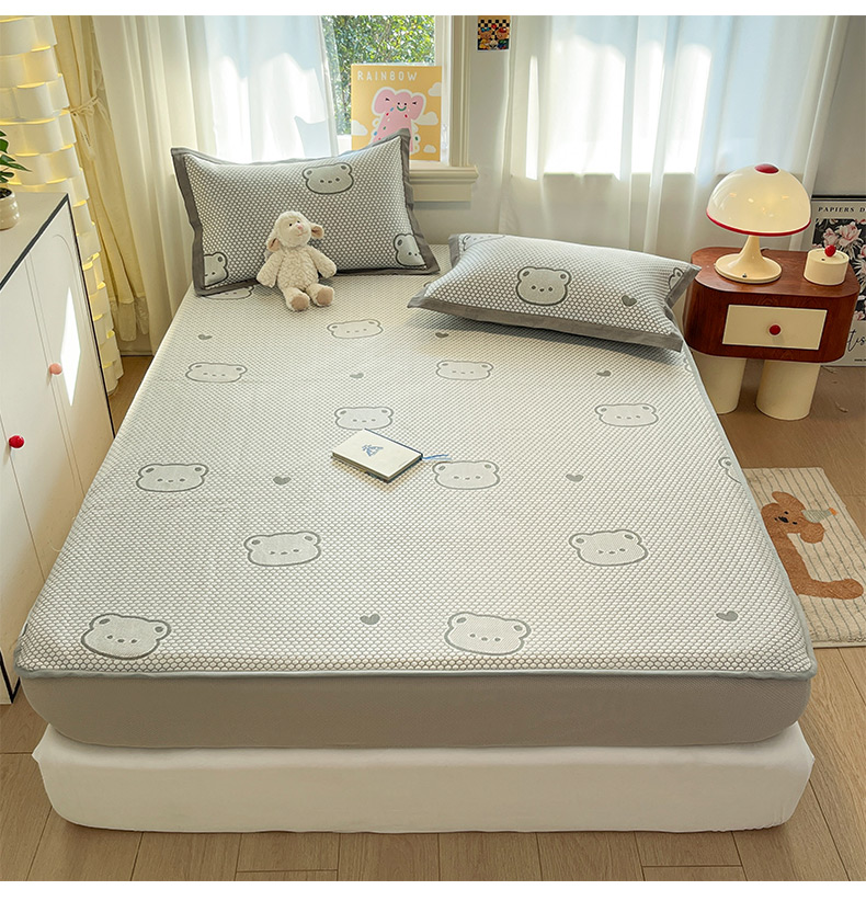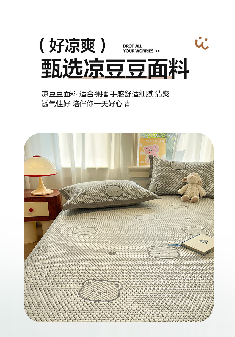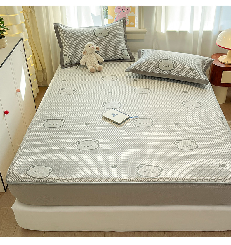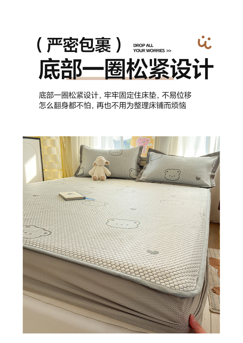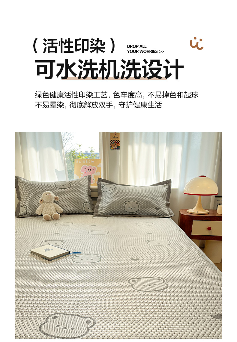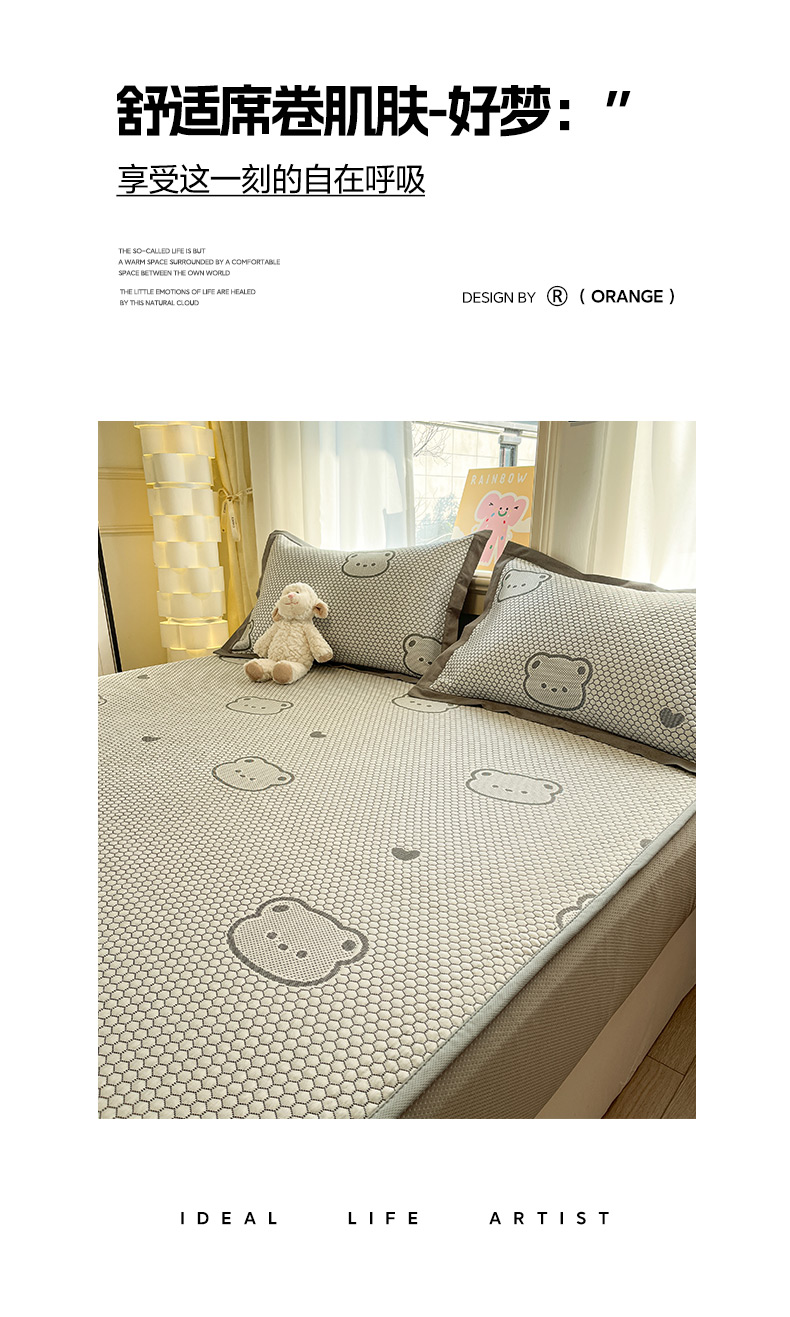 商品名称:雅居纺家纺 2026新款A类加厚三明治底提花小清新凉感席床笠款凉席席子 小熊熊