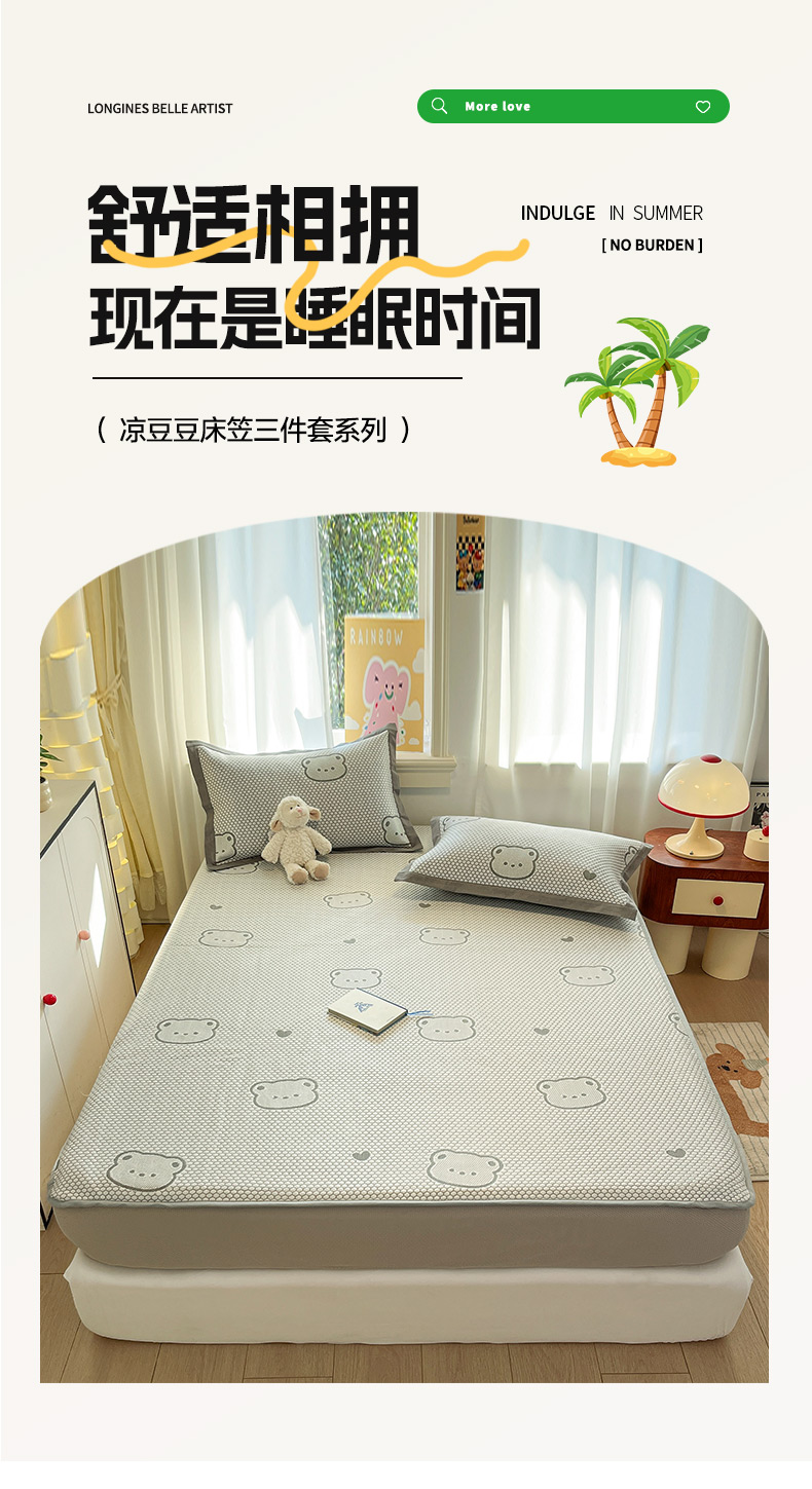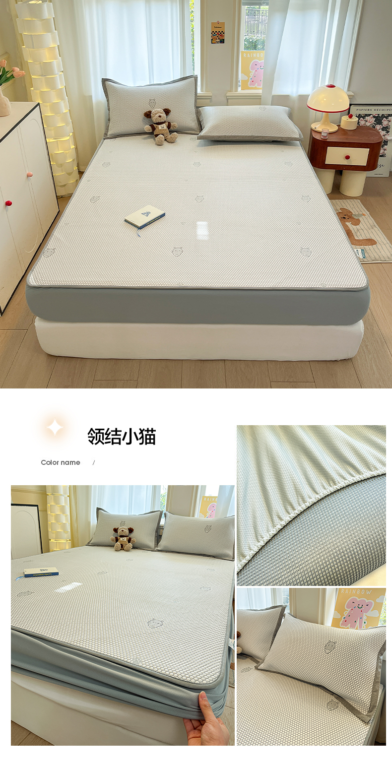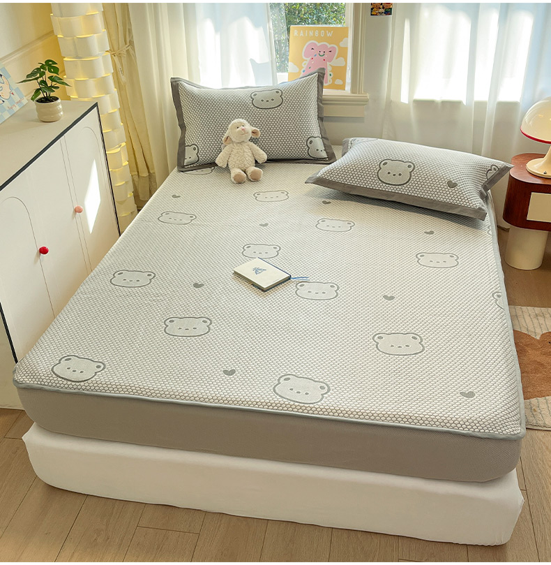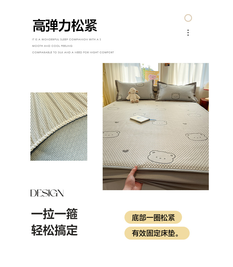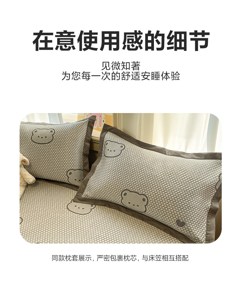 商品名称:雅居纺家纺 2026新款A类加厚三明治底提花小清新凉感席床笠款凉席席子 小熊熊