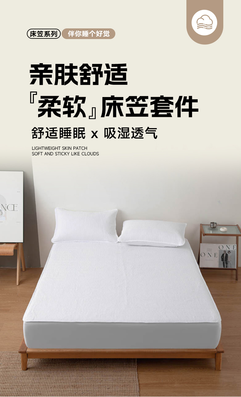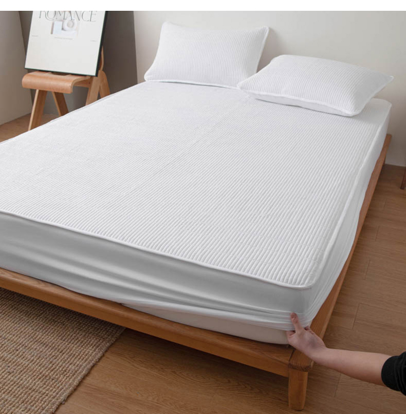宇淳国际 2026新款美人条A类水洗棉夹棉床笠三件套 白色